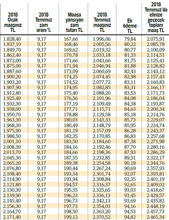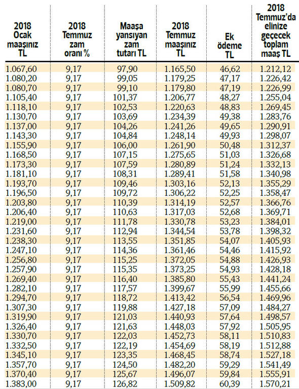 Temmuz ayında elinize geçecek tutar ise yüzde 9.17’lik enflasyon zammı ile birlikte vergi iadesi eklenerek hesaplanmış maaştır.