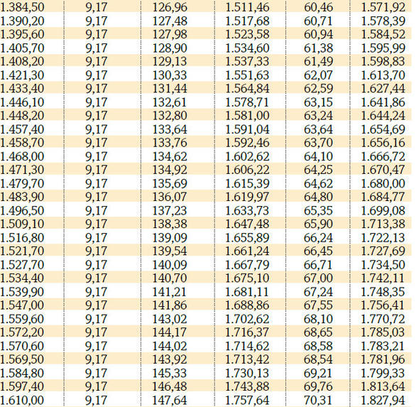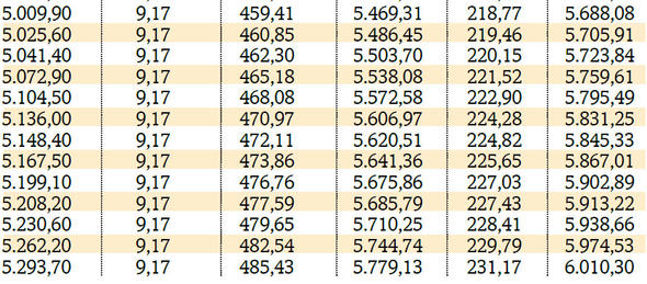 Tablodaki zamlı maaşlar en düşük SSK ve Bağ-Kur tarım emeklisinden başlamaktadır.