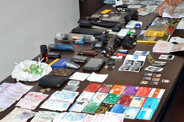 Seri katil Atalay Filiz'in üzerinden ve çantasından kendi adına düzenlenmiş, eski bir pasaport, gerçek kimliği, 4 adet kendi fotoğrafı olan başkaları adına sahte kimlik, kendi fotoğrafı ve değişik vatandaşların fotoğrafı olan 3 adet sahte ehliyet, farklı isimler adına 14 adet açık, aktif kredi kartları, 2 adet avcı, komando bıçağı, biber gazı, yaklaşık 10 bin Lira, 3bin 500 euro, bir Fransız vatandaşının vatandaşlık belgesi ve yaşam malzemeleri çıktı.