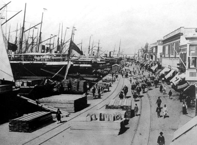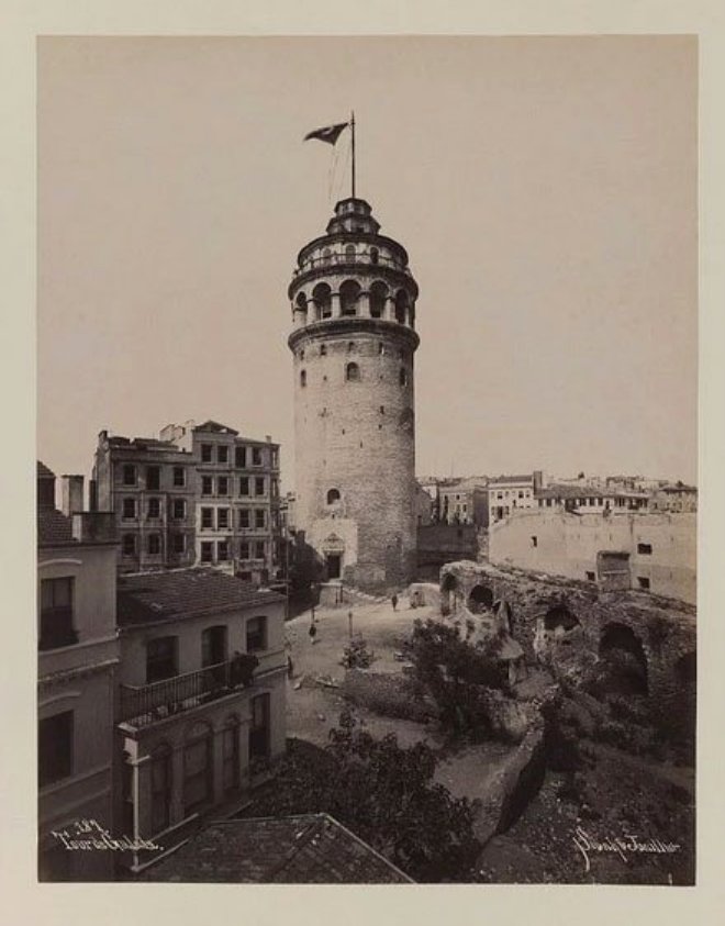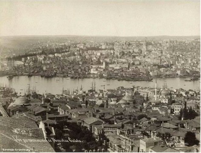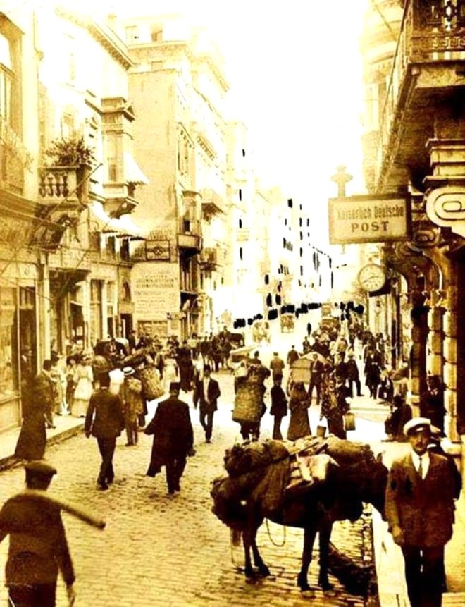 1910 yılından bir kare. İstanbul'un Beyoğlu ilçesi 16. yüzyılın sonuna kadar genelde bağlık bahçelik bir alandı. Fakat 17. yüzyıldan itibaren Fransa ve Venedik elçiliklerinin açılması ilçeyi canlandırmıştır. 19. yüzyılda ise Beyoğlu bir ticaret merkezi haline gelmiştir.