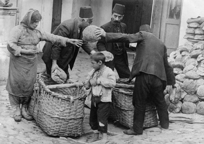 1918, İstanbul'da Ekmek Dağıtan Bir Hayırsever. Dünya Savaşı'nın bittiği yıl, halk perişan halde...