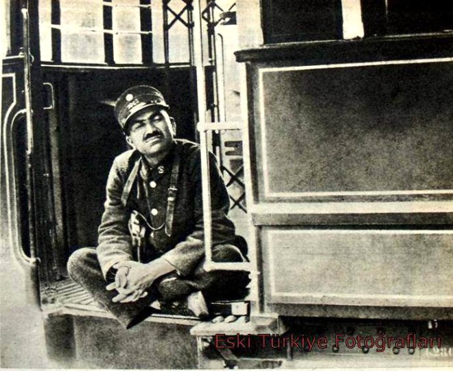 1931, Tramvay BiletçisiElektrikler kesildiği için hareket edemeyen tramvayın biletçisi, elektriklerin gelmesini beklerken