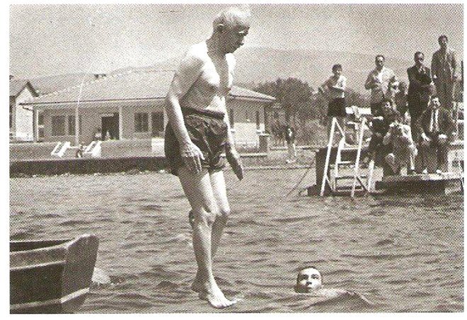 1967, İsmet İnönü Maltepe Sahili'nde 2. Cumhurbaşkanı ve dönemin CHP Genel Başkanı İsmet İnönü, İstanbul Maltepe'de denize çivileme atlarken.