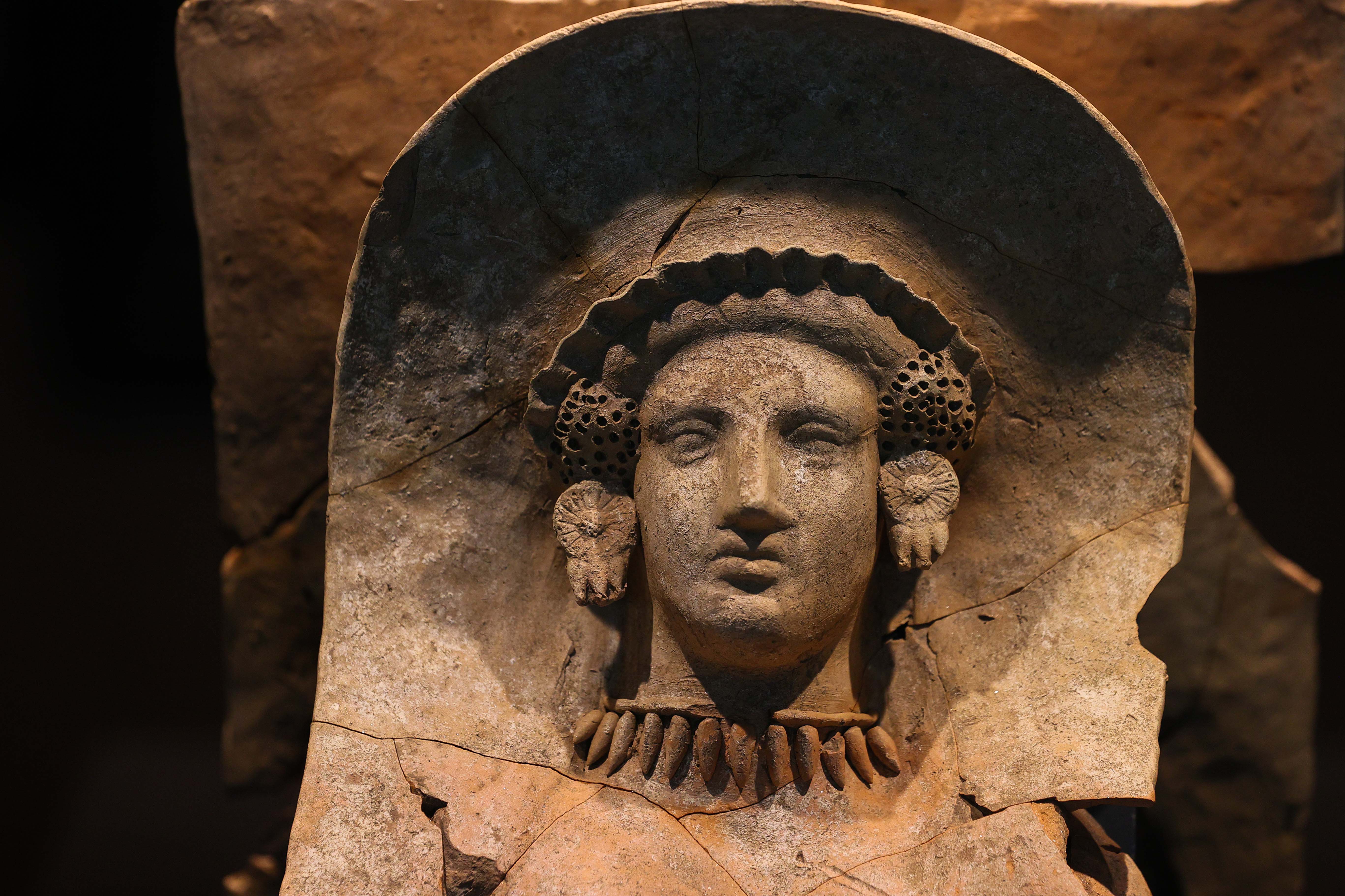Kadın masklarının gerdanlık ve küpelerle süslendiğini kaydeden Keser, İonya bölgesindeki isyan ve savaşlardaki matem havasının heykeltıraşlığa da yansıdığını aktardı.