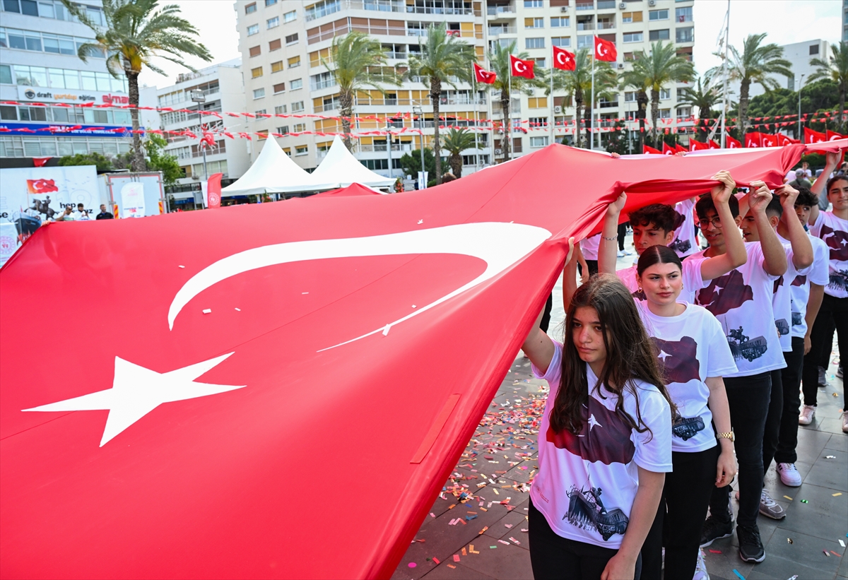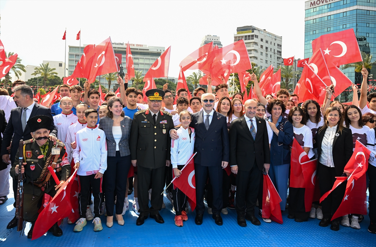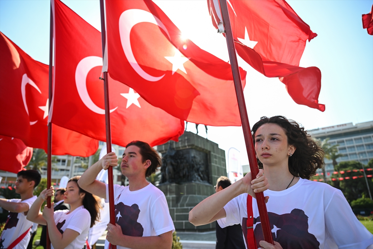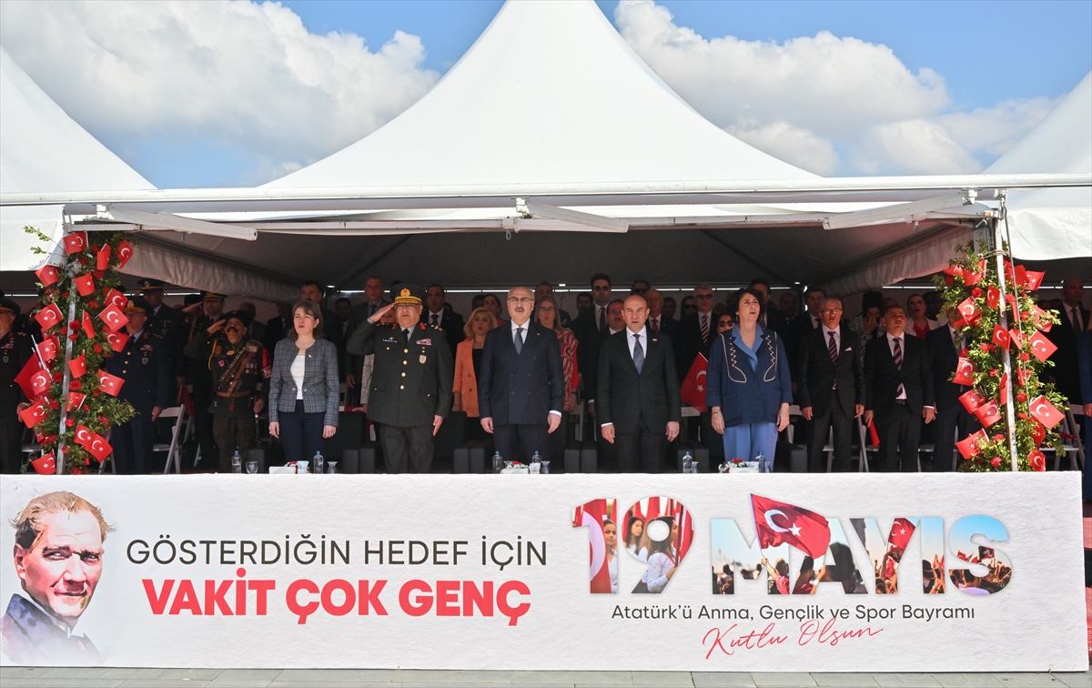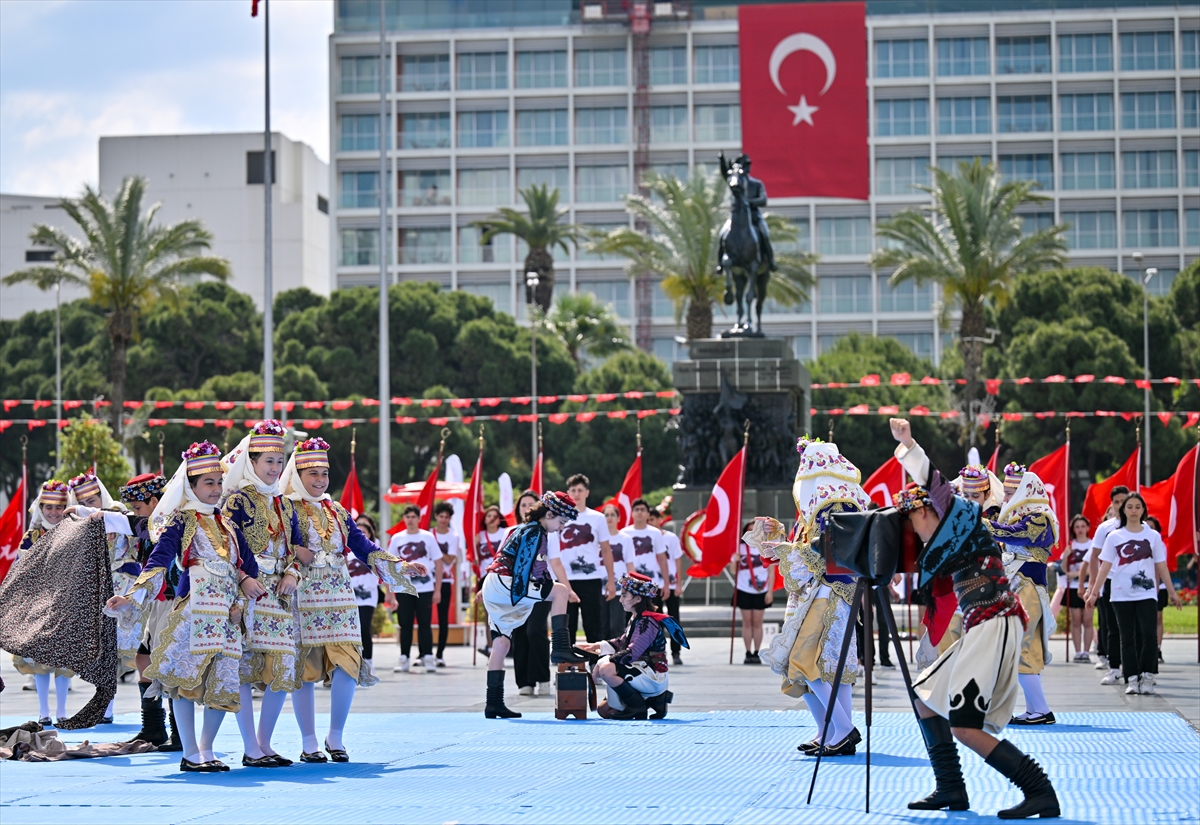 19 Mayıs Atatürk'ü Anma, Gençlik ve Spor Bayramı, İzmir Cumhuriyet Meydanı'nda düzenlenen tören ve etkinliklerle kutlandı. Çeşitli halk oyunlarının oynandığı törende, farklı dallardaki sporcular da gösteri sundu.