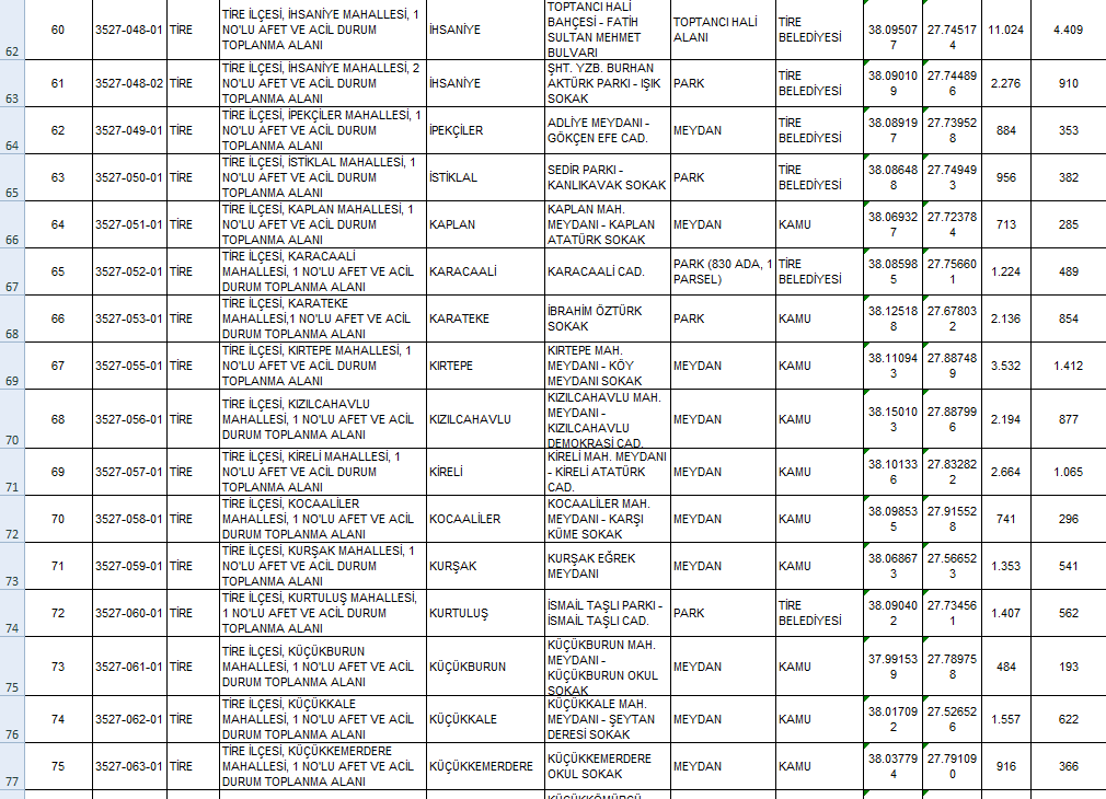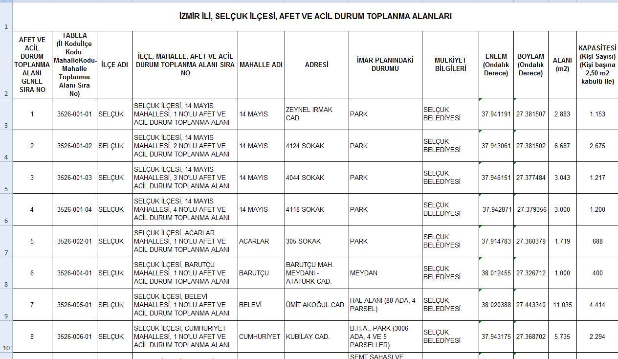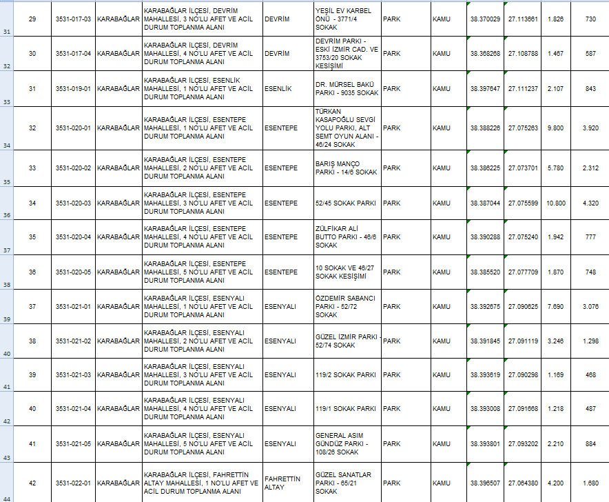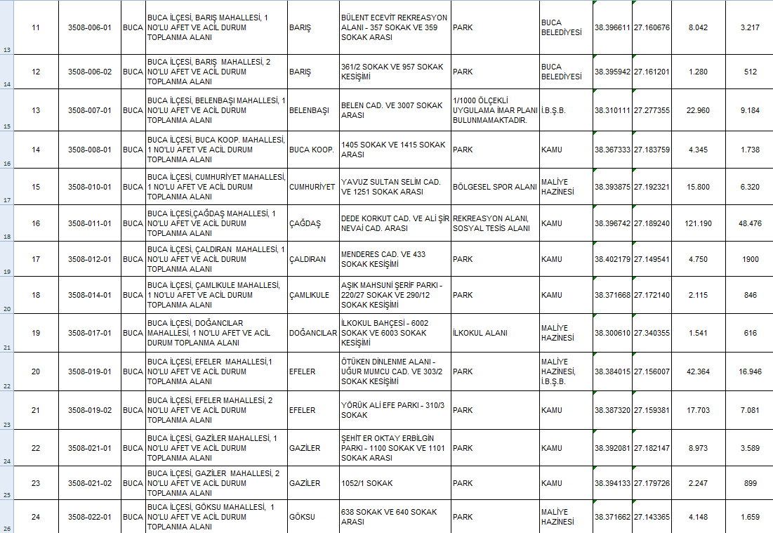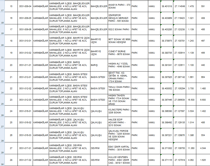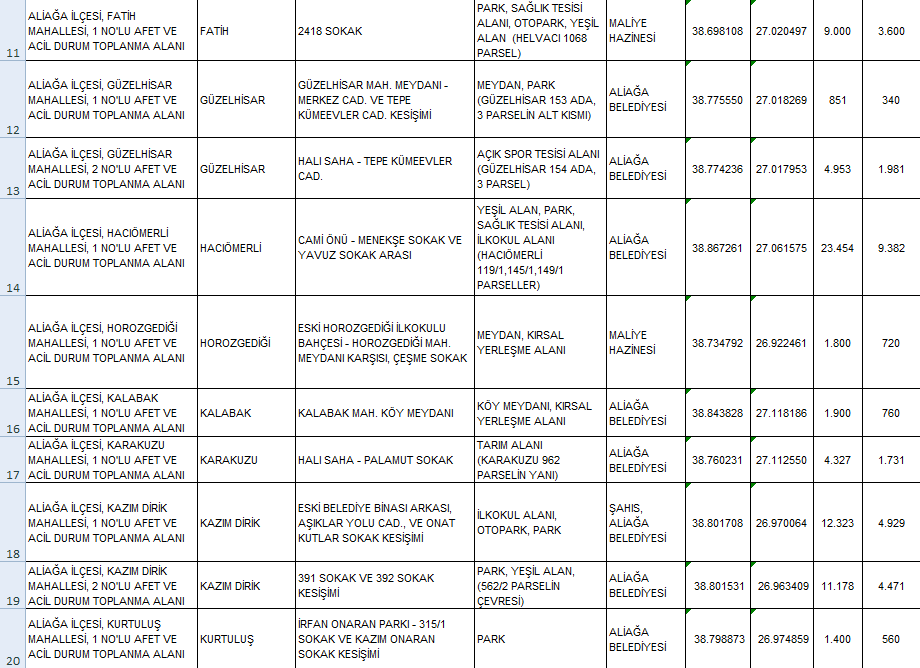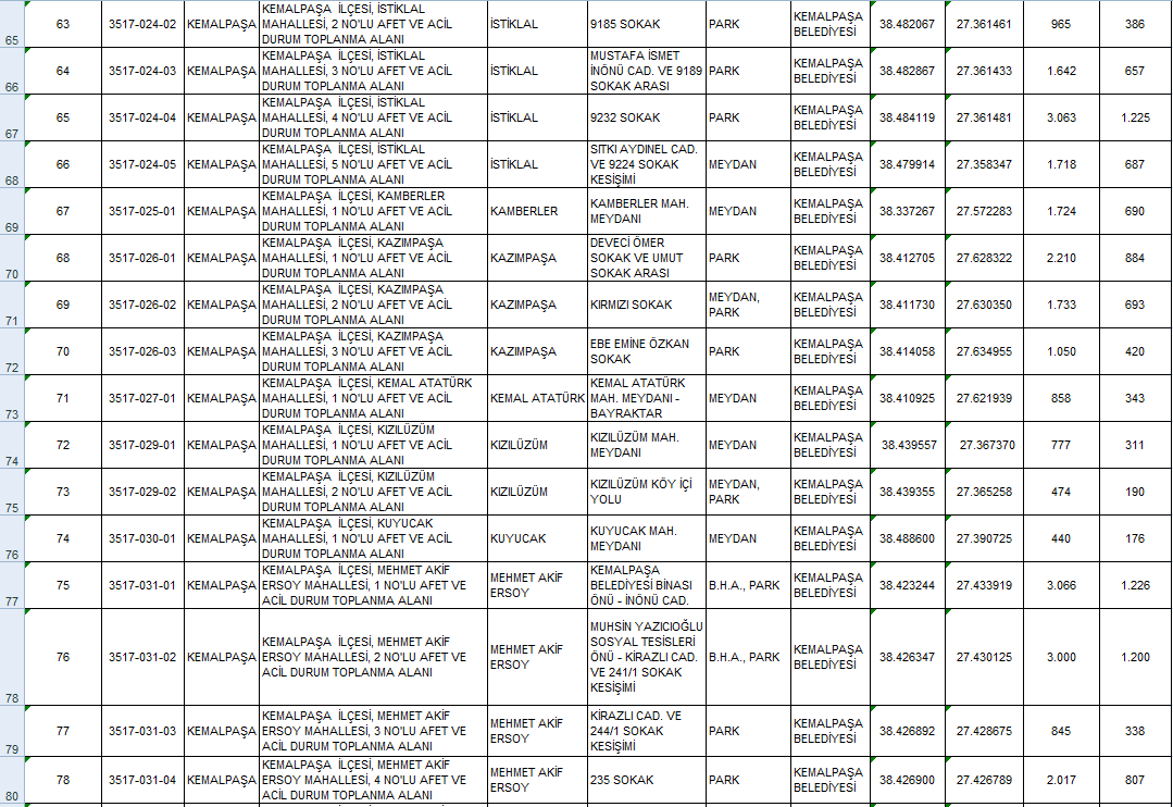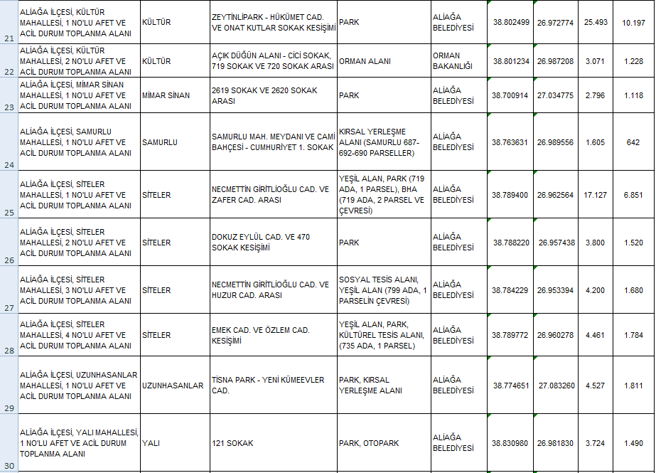 İzmir'de olası bir afet sonrası toplanma alanlarının (korunaklı alanlar) ilçe ilçe, mahalle mahalle listesi...