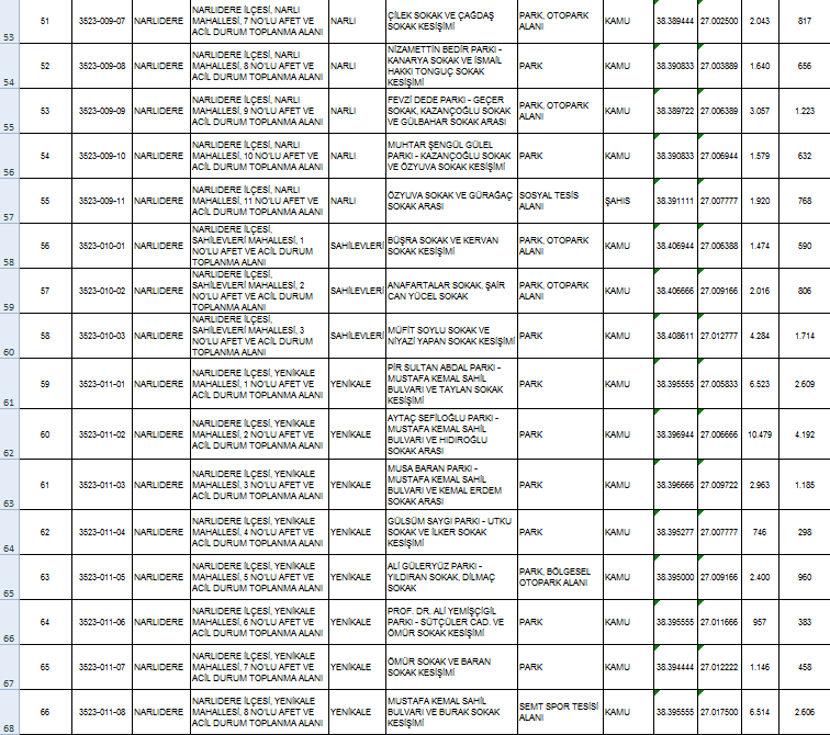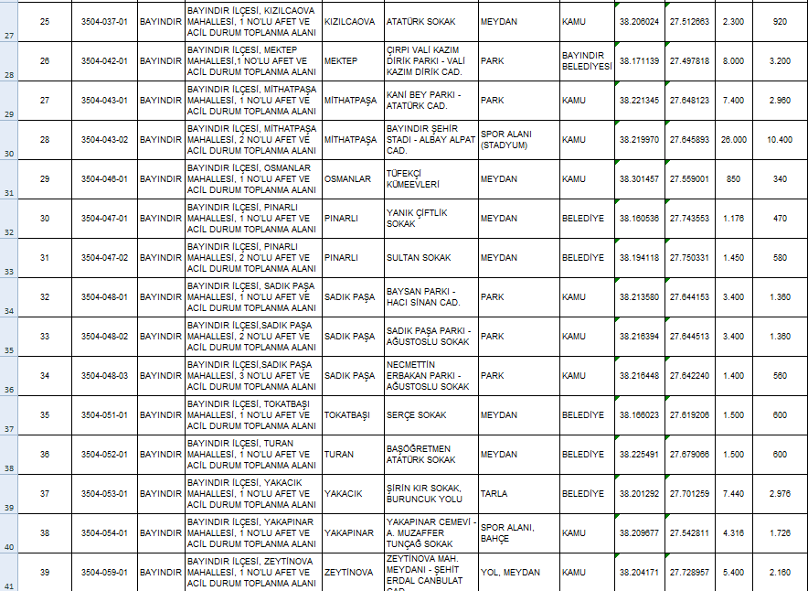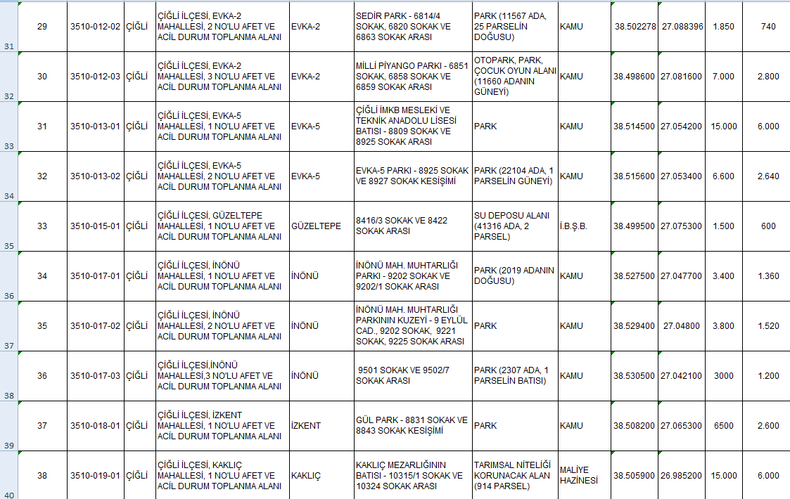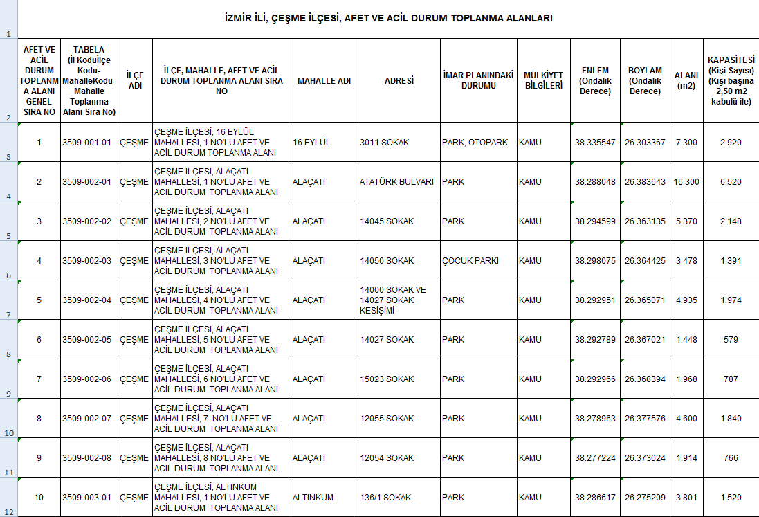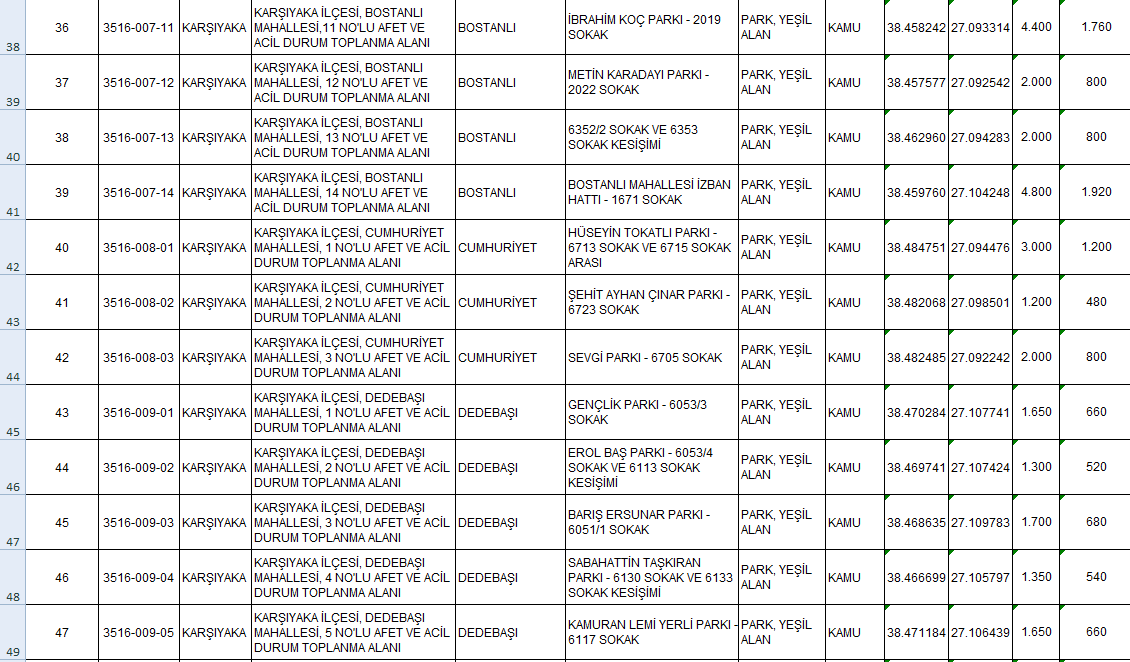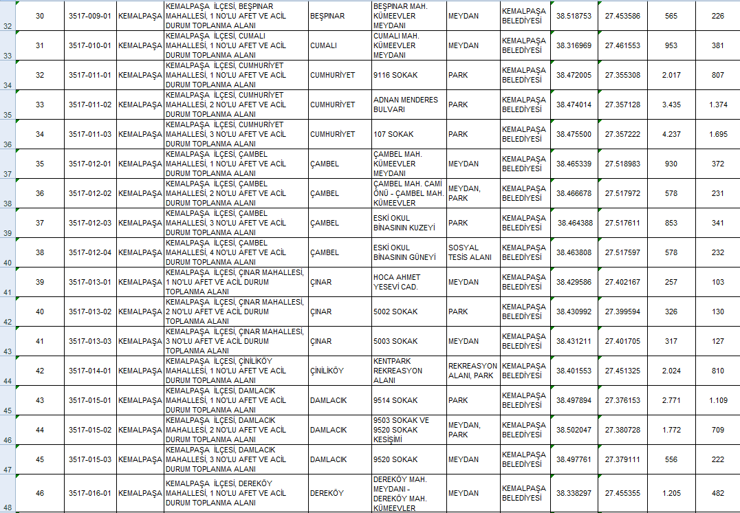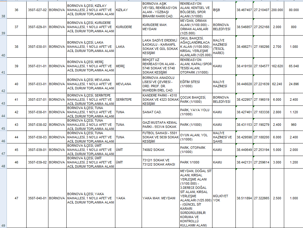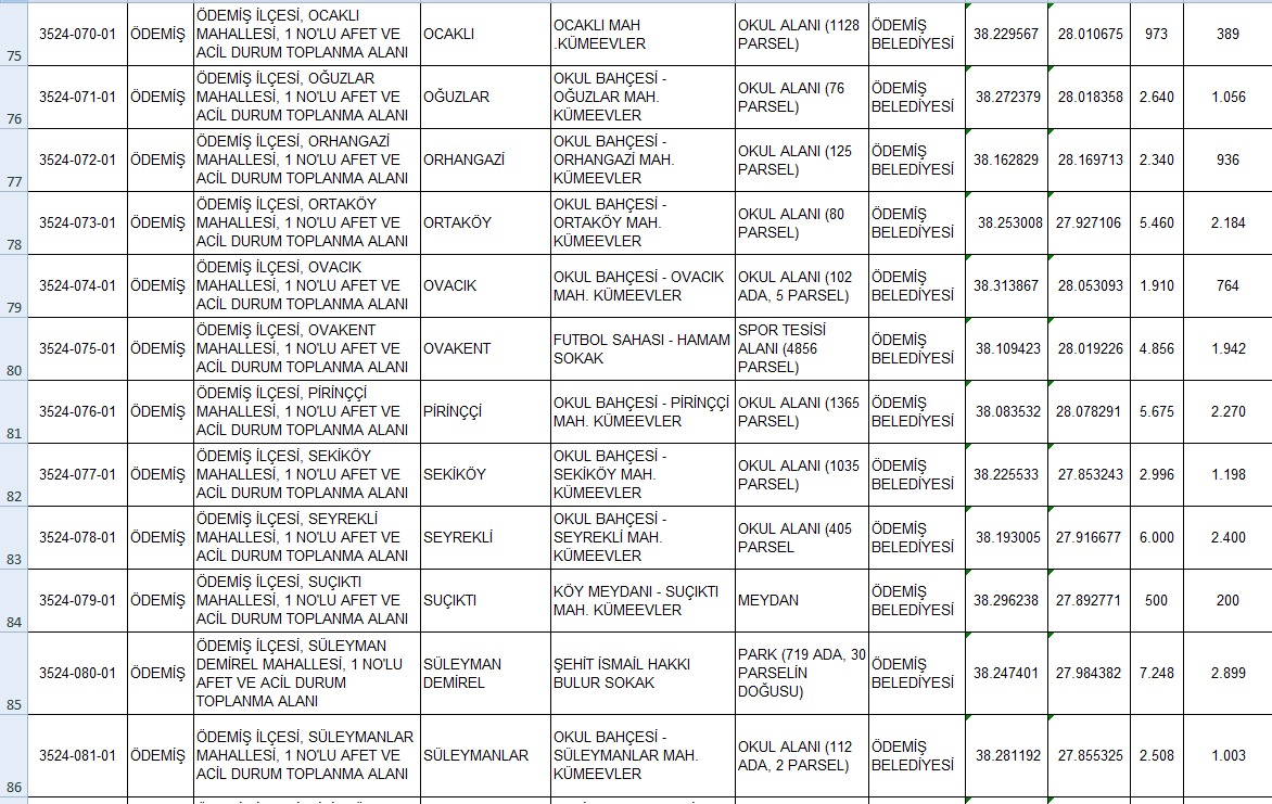 İzmir'de olası bir afet sonrası toplanma alanlarının (korunaklı alanlar) ilçe ilçe, mahalle mahalle listesi...