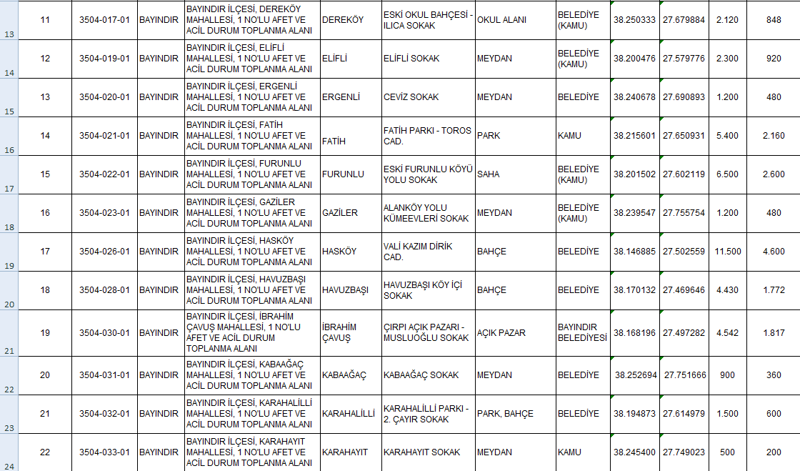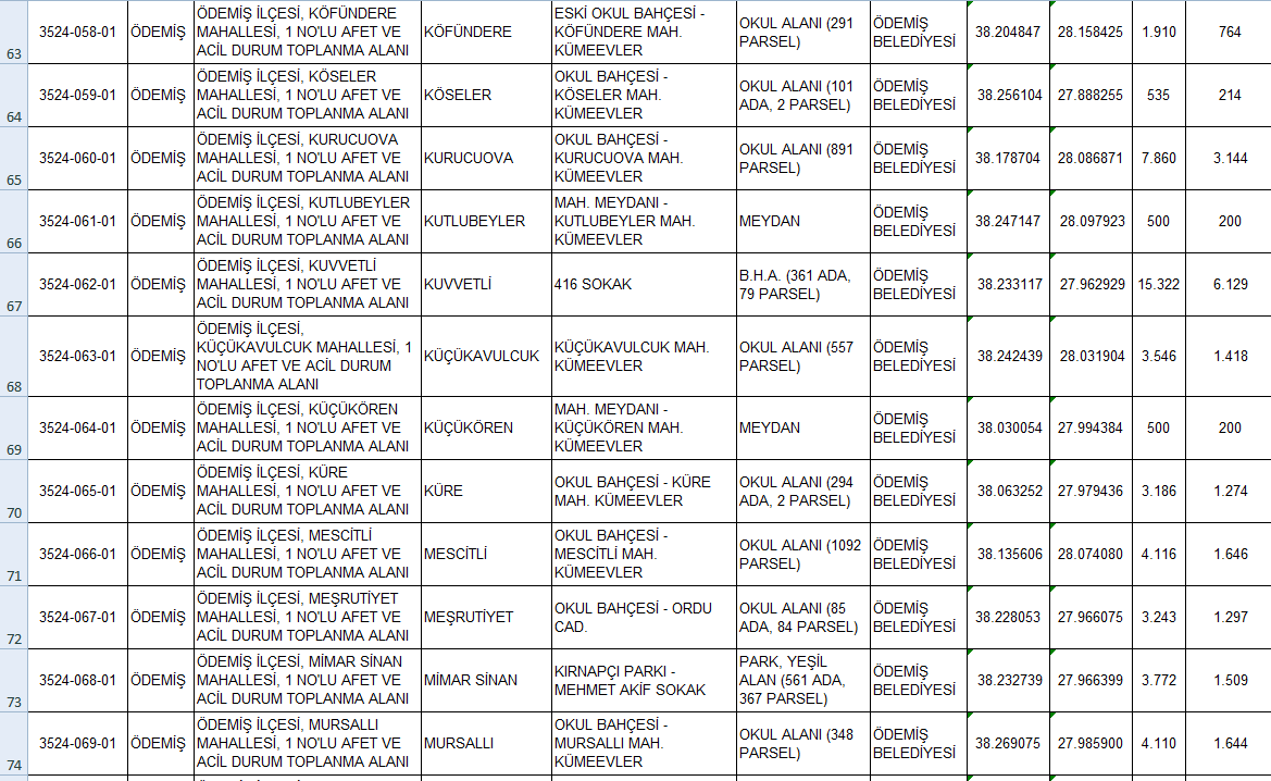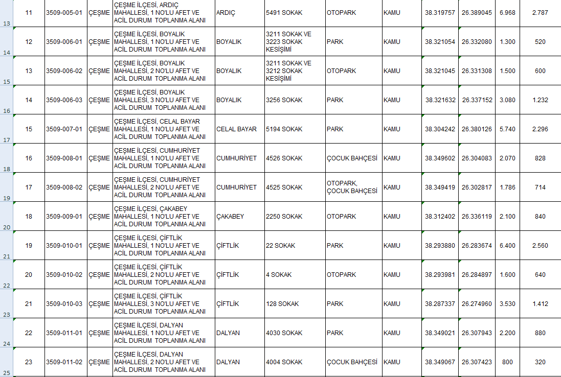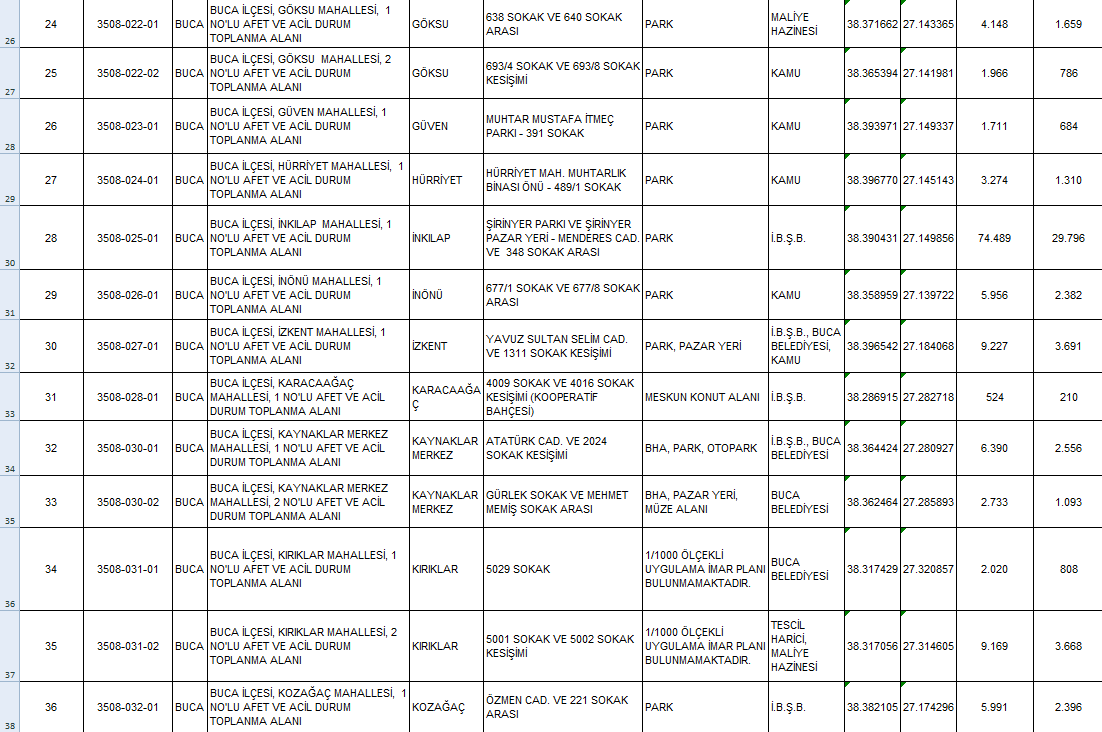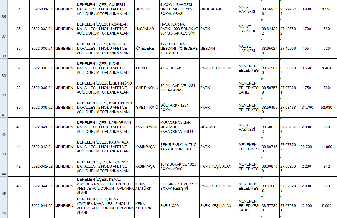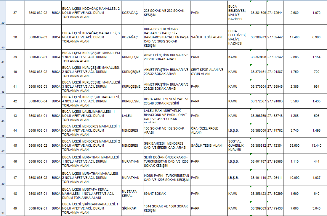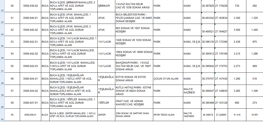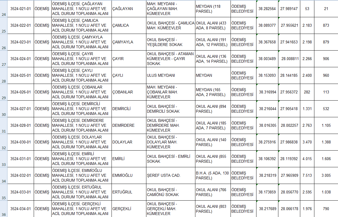 İzmir'de olası bir afet sonrası toplanma alanlarının (korunaklı alanlar) ilçe ilçe, mahalle mahalle listesi...
