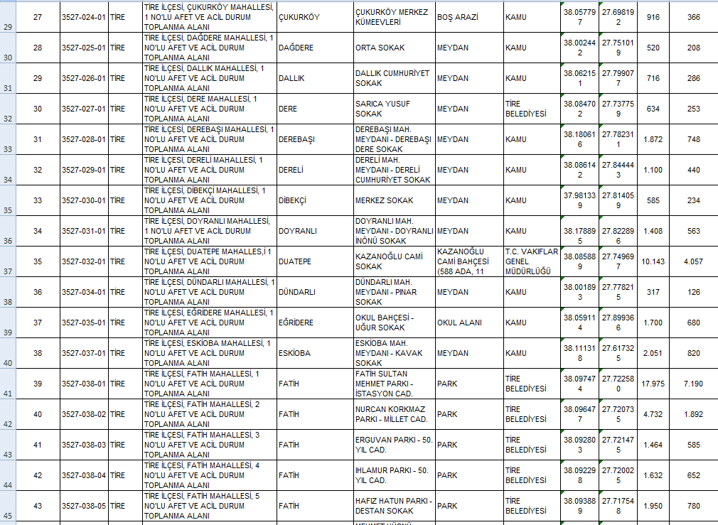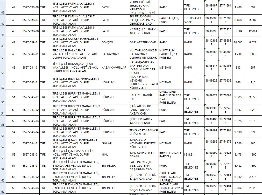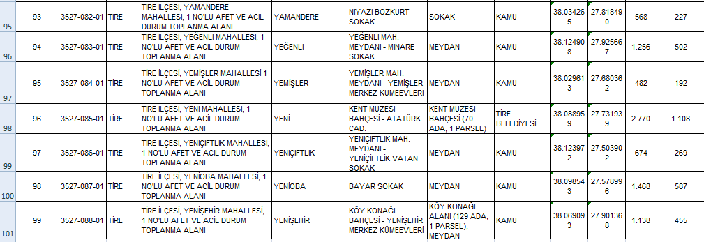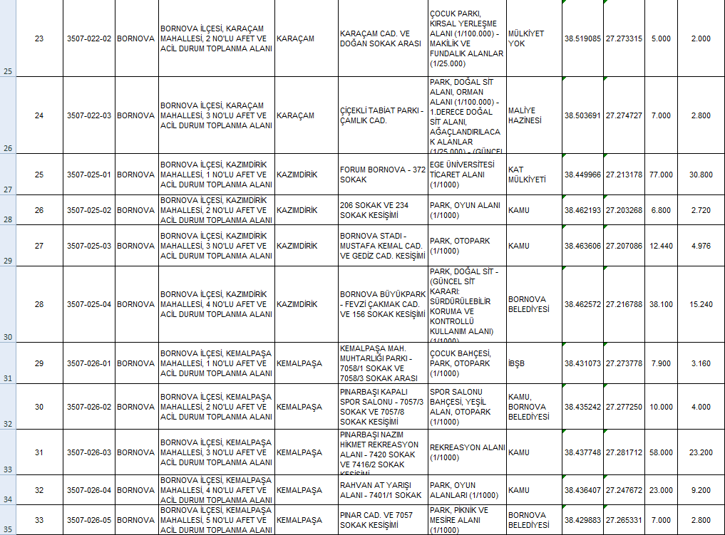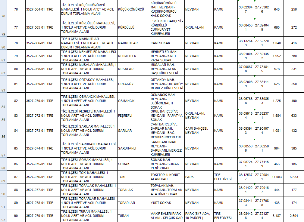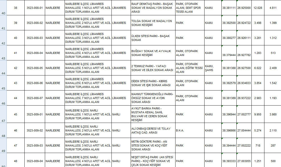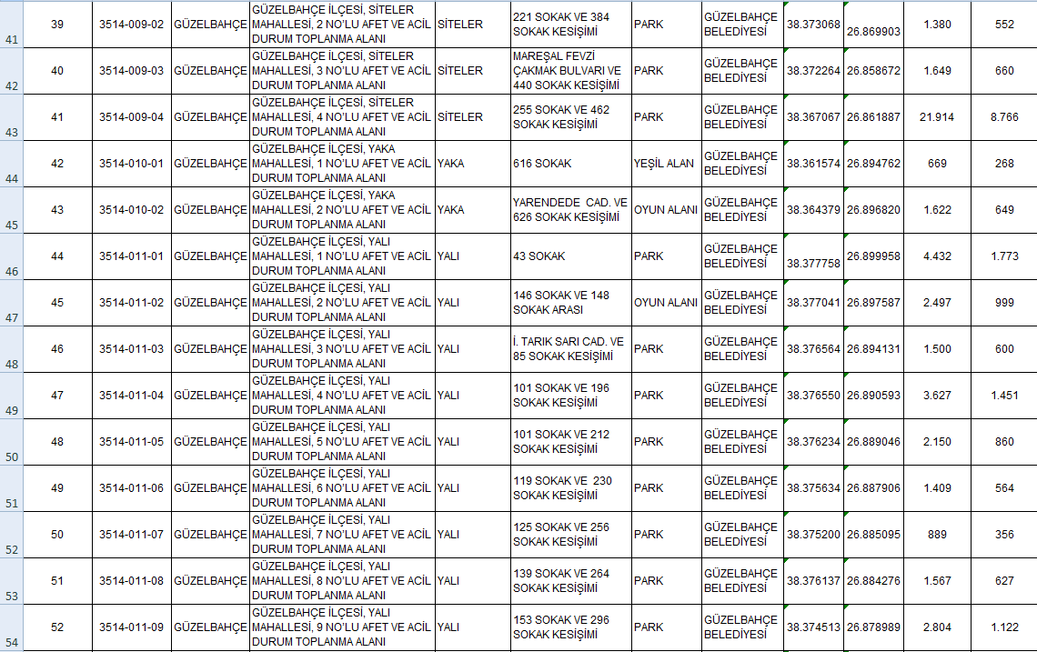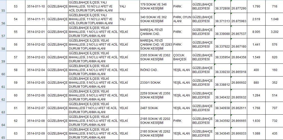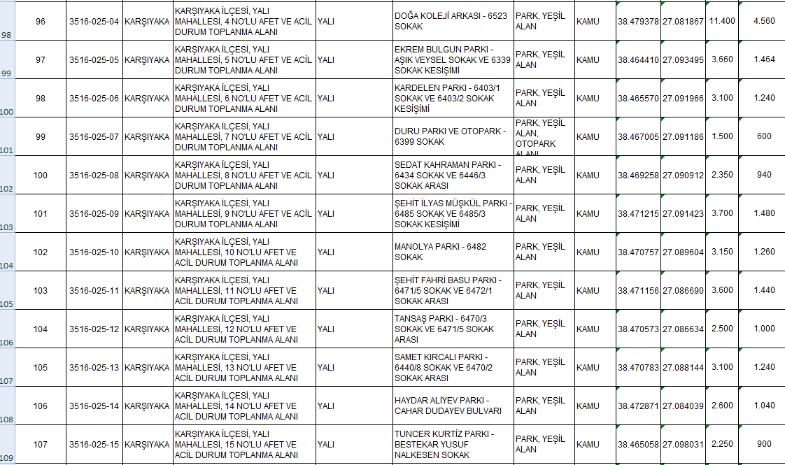 İzmir'de olası bir afet sonrası toplanma alanlarının (korunaklı alanlar) ilçe ilçe, mahalle mahalle listesi...