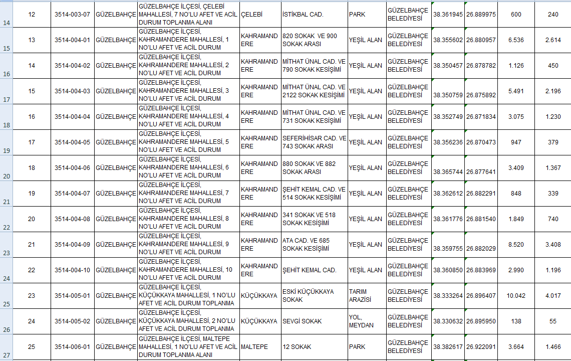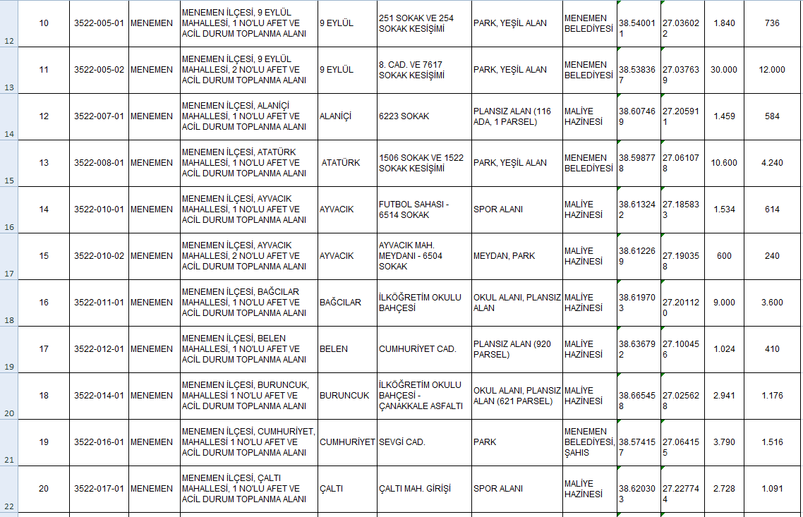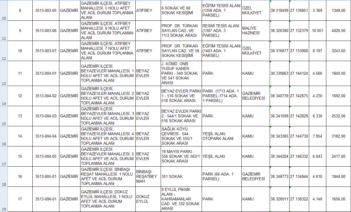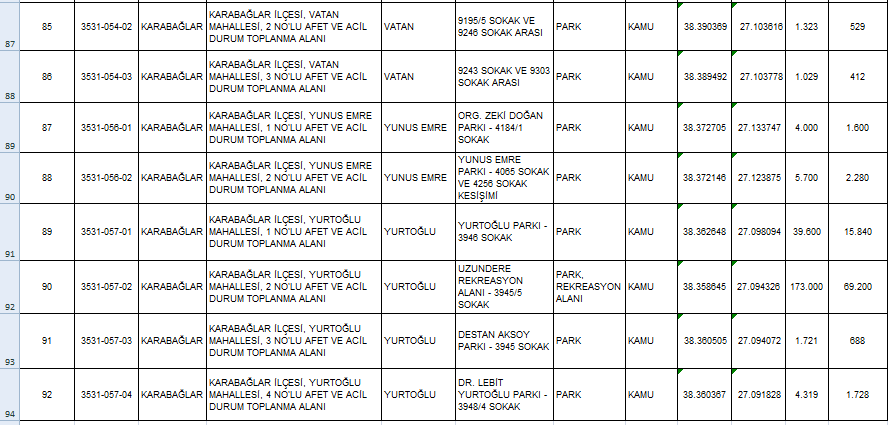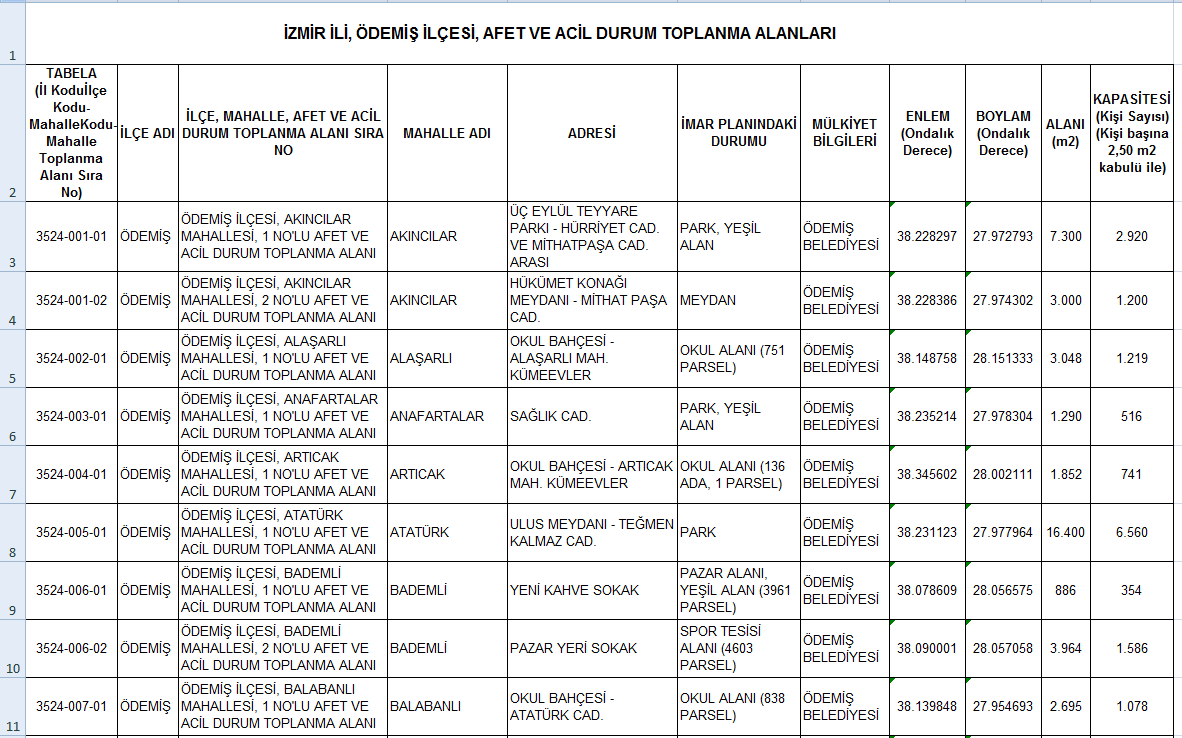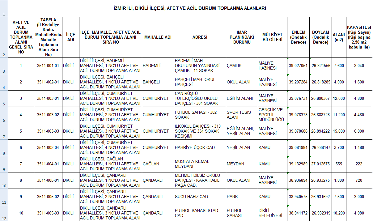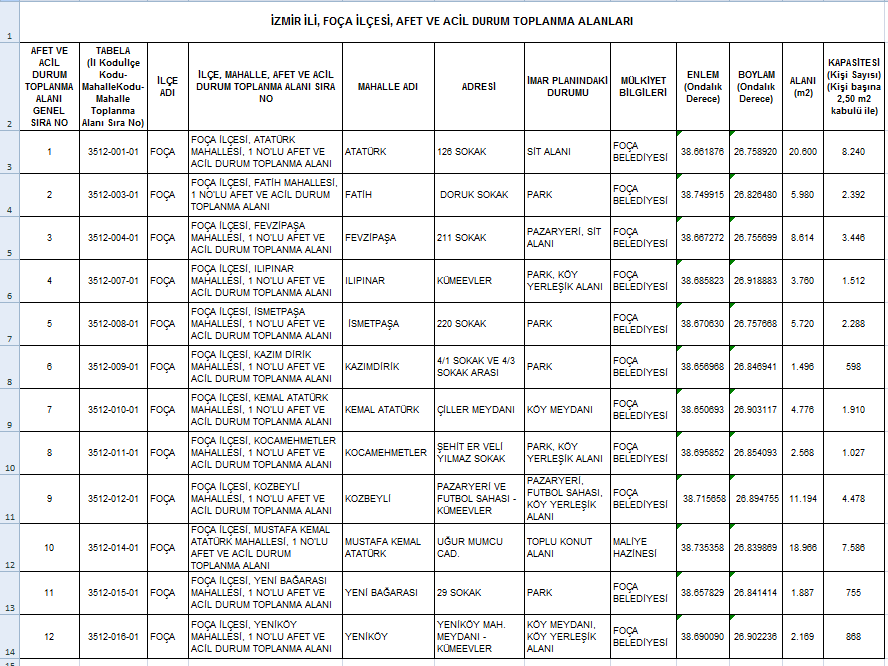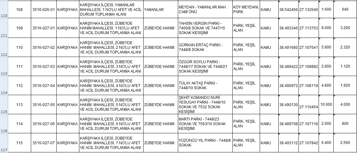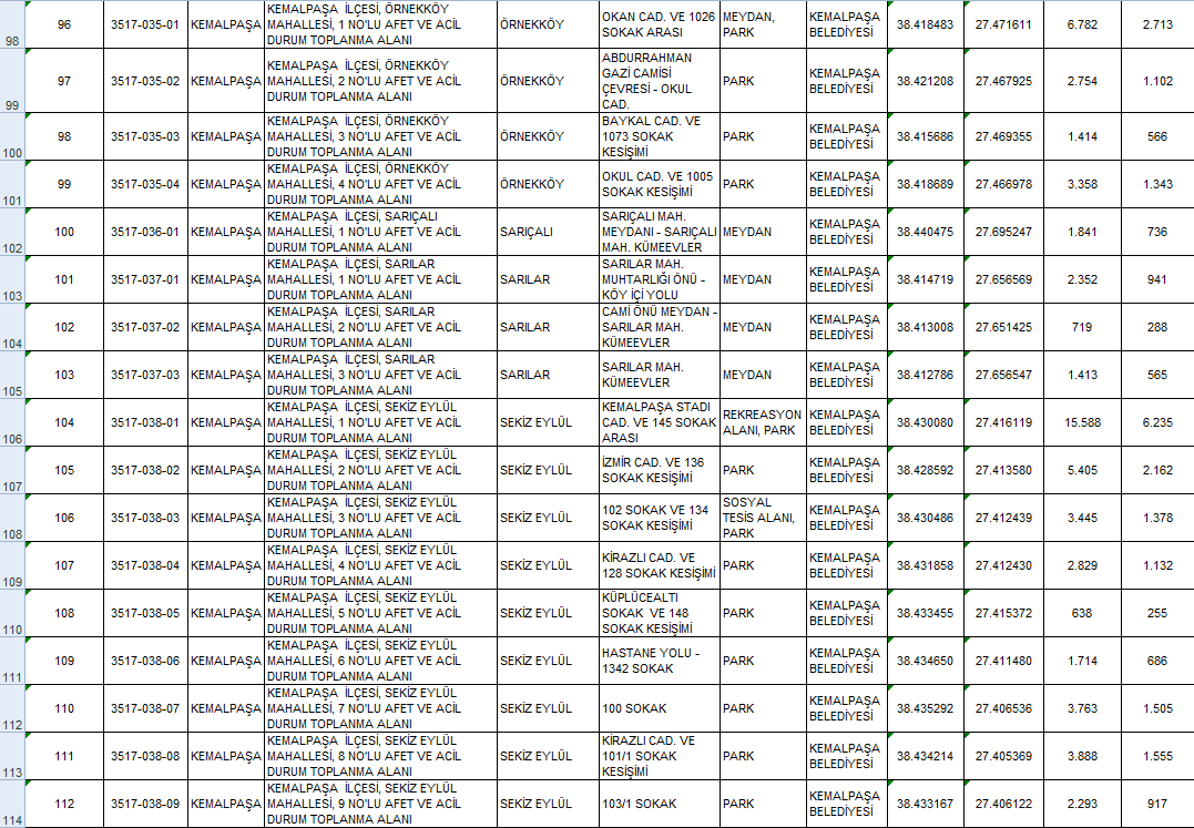 İzmir'de olası bir afet sonrası toplanma alanlarının (korunaklı alanlar) ilçe ilçe, mahalle mahalle listesi...