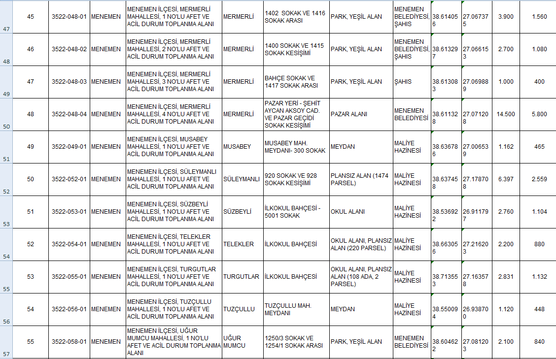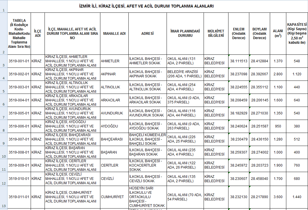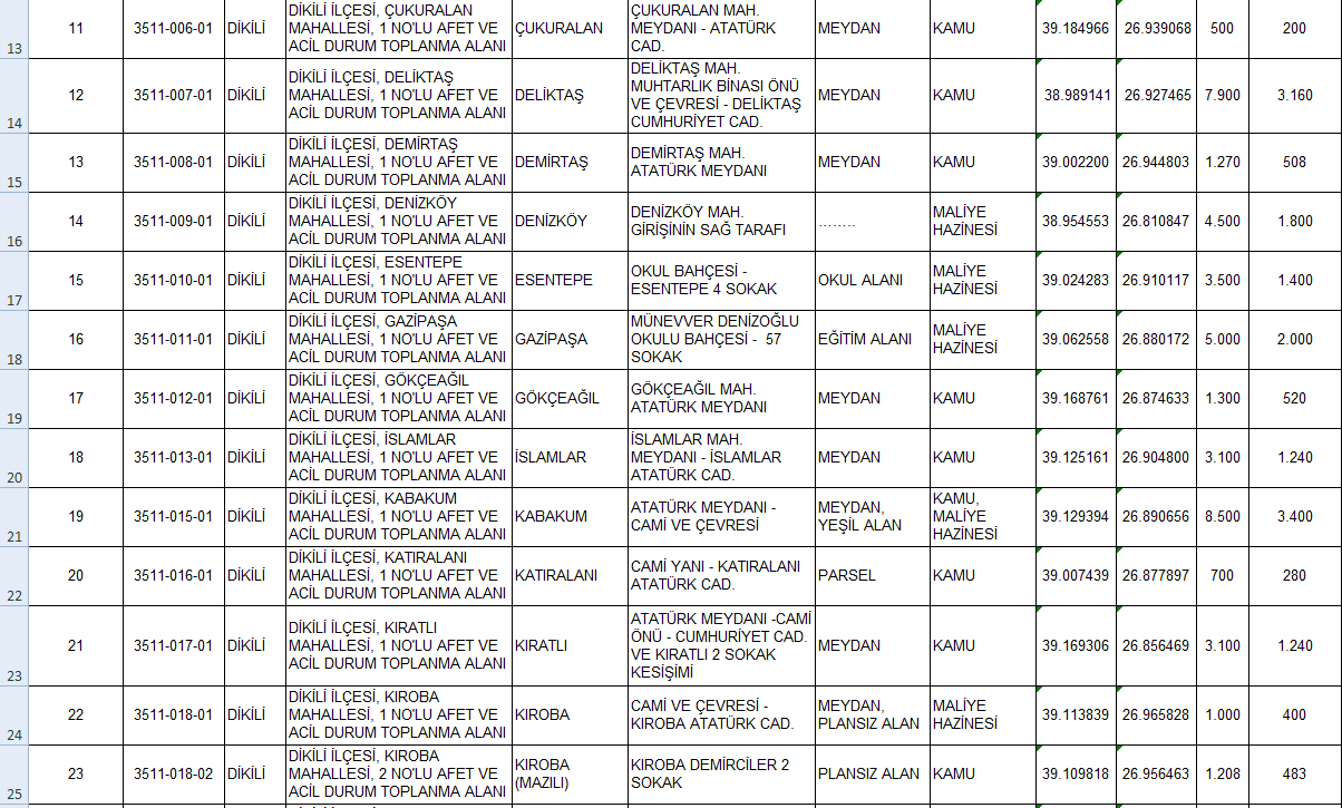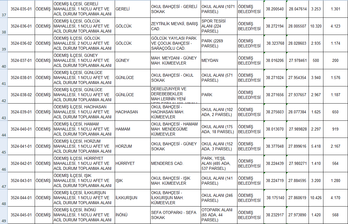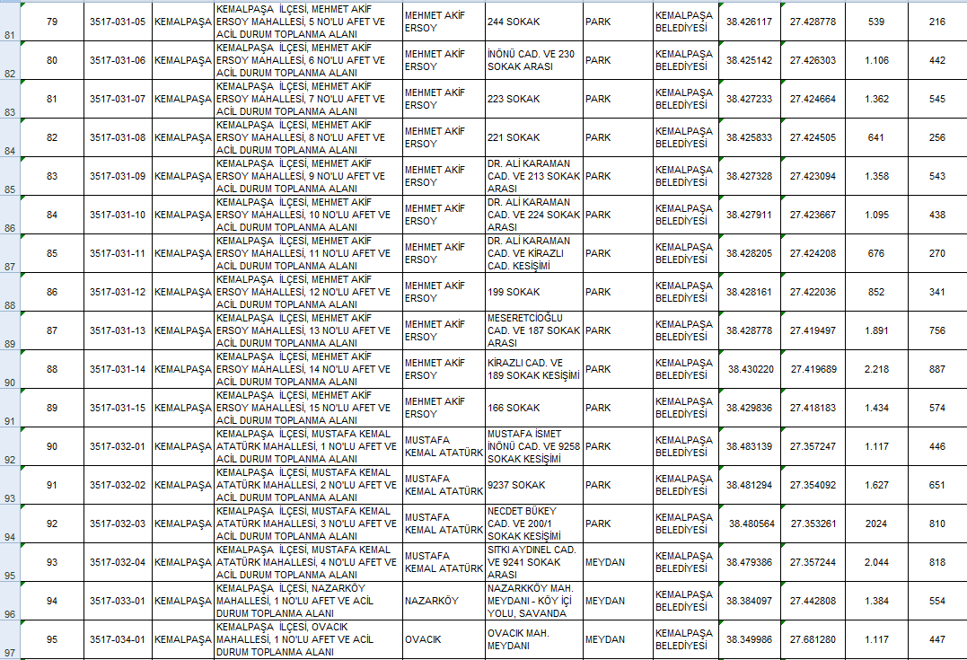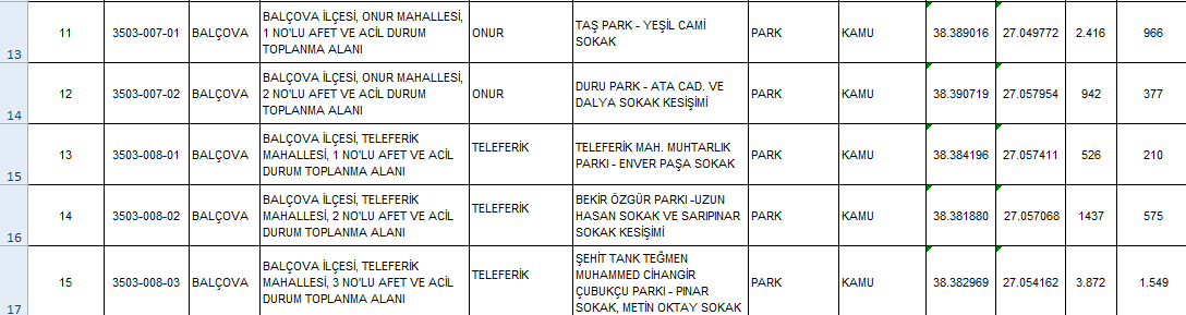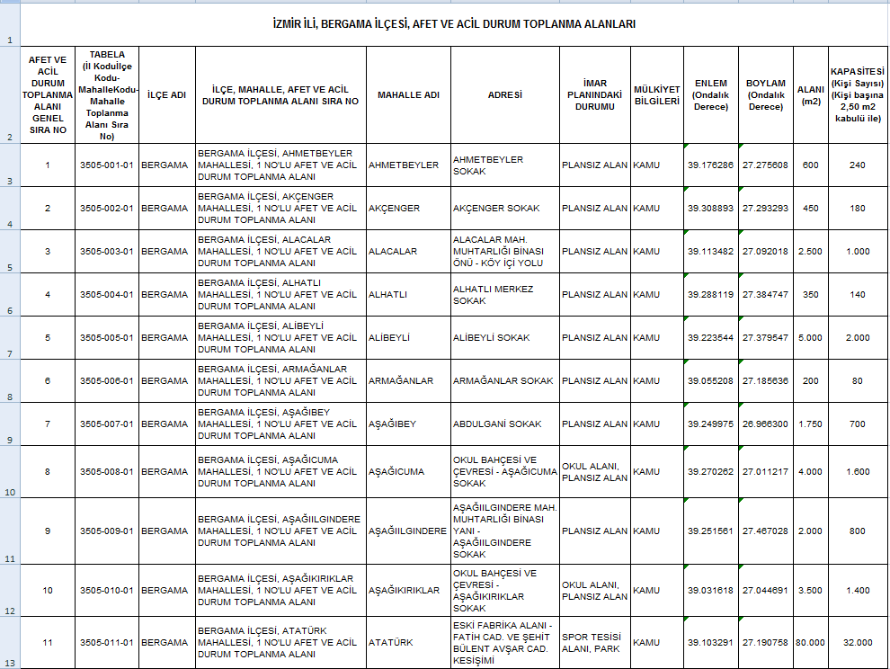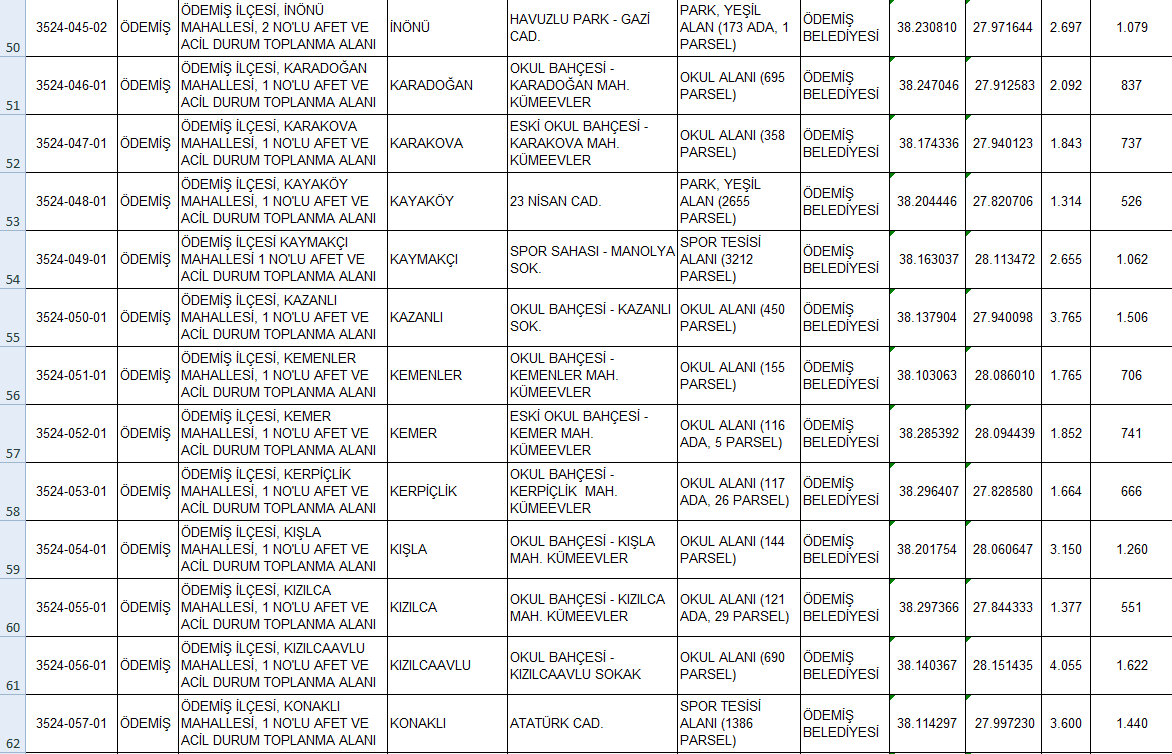 İzmir'de olası bir afet sonrası toplanma alanlarının (korunaklı alanlar) ilçe ilçe, mahalle mahalle listesi...