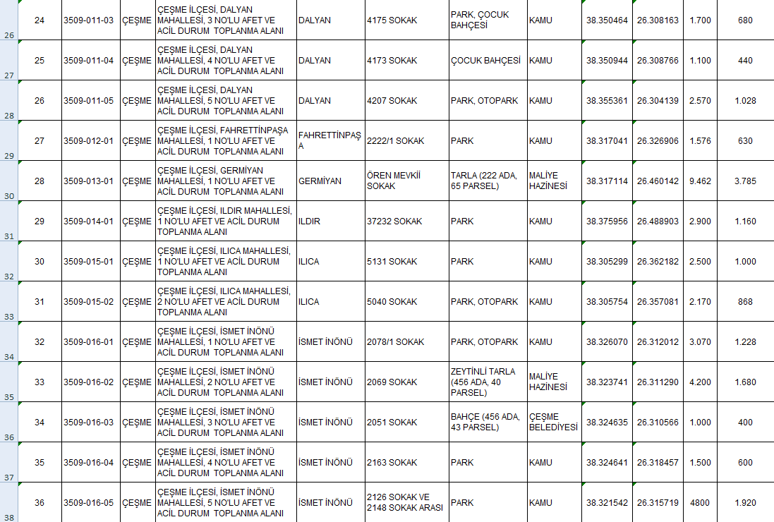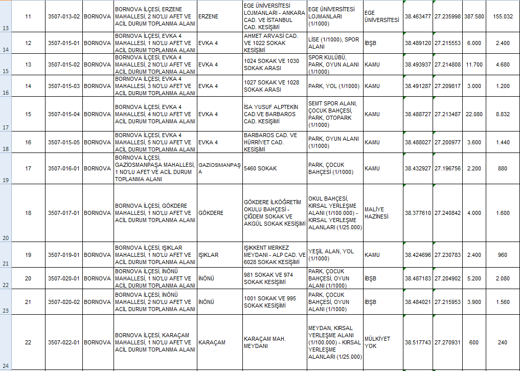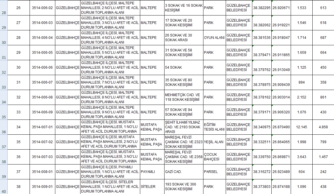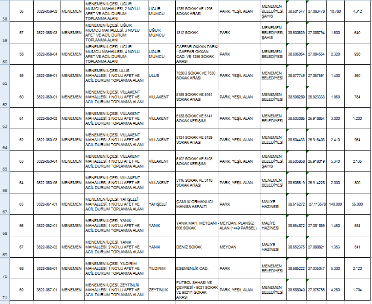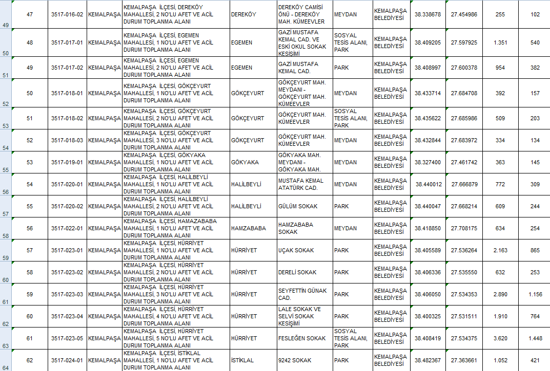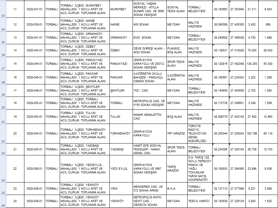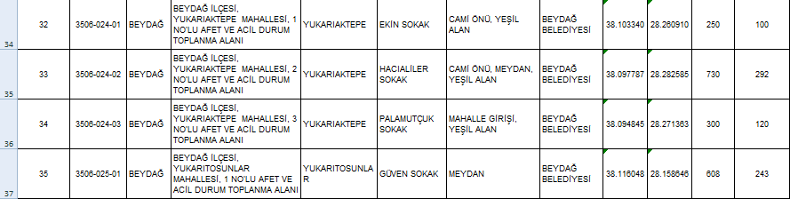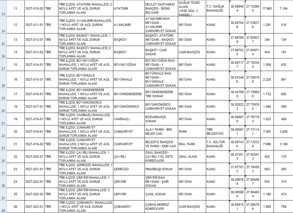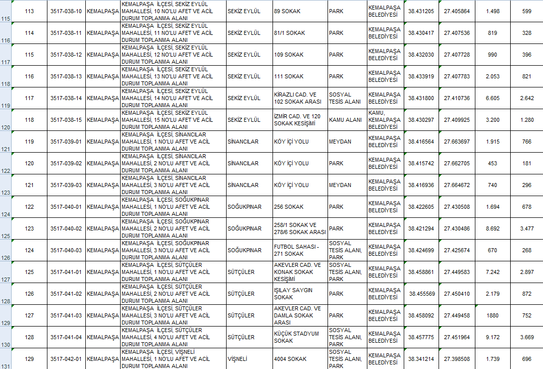İzmir'de olası bir afet sonrası toplanma alanlarının (korunaklı alanlar) ilçe ilçe, mahalle mahalle listesi...