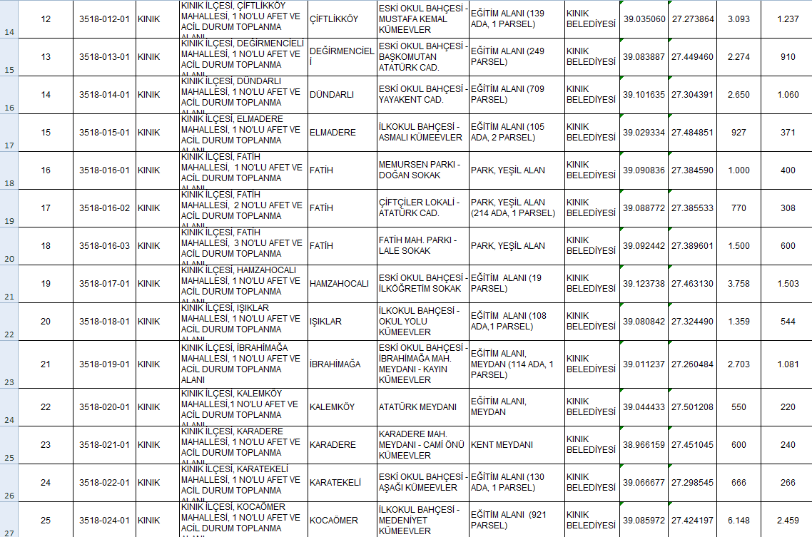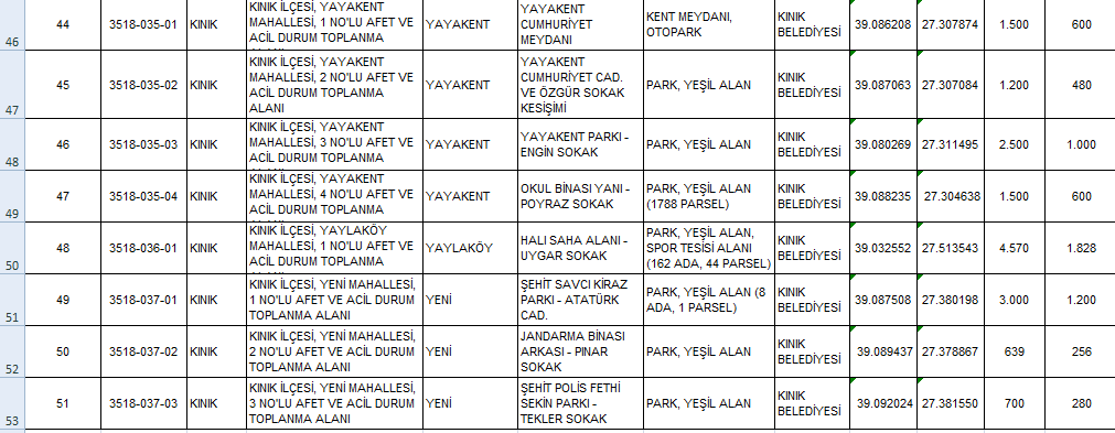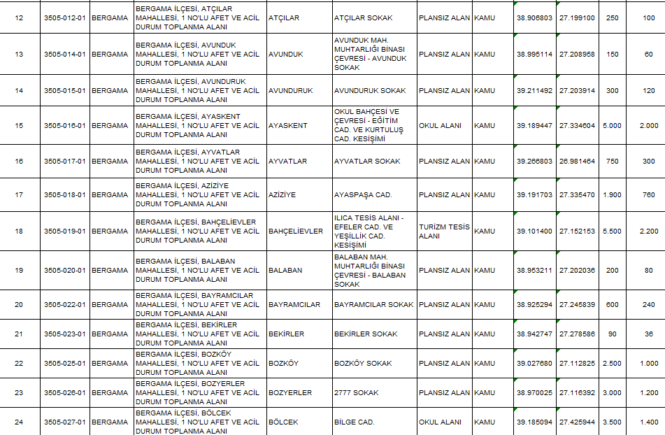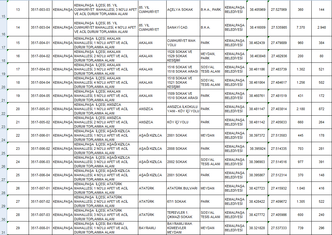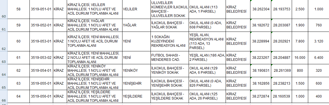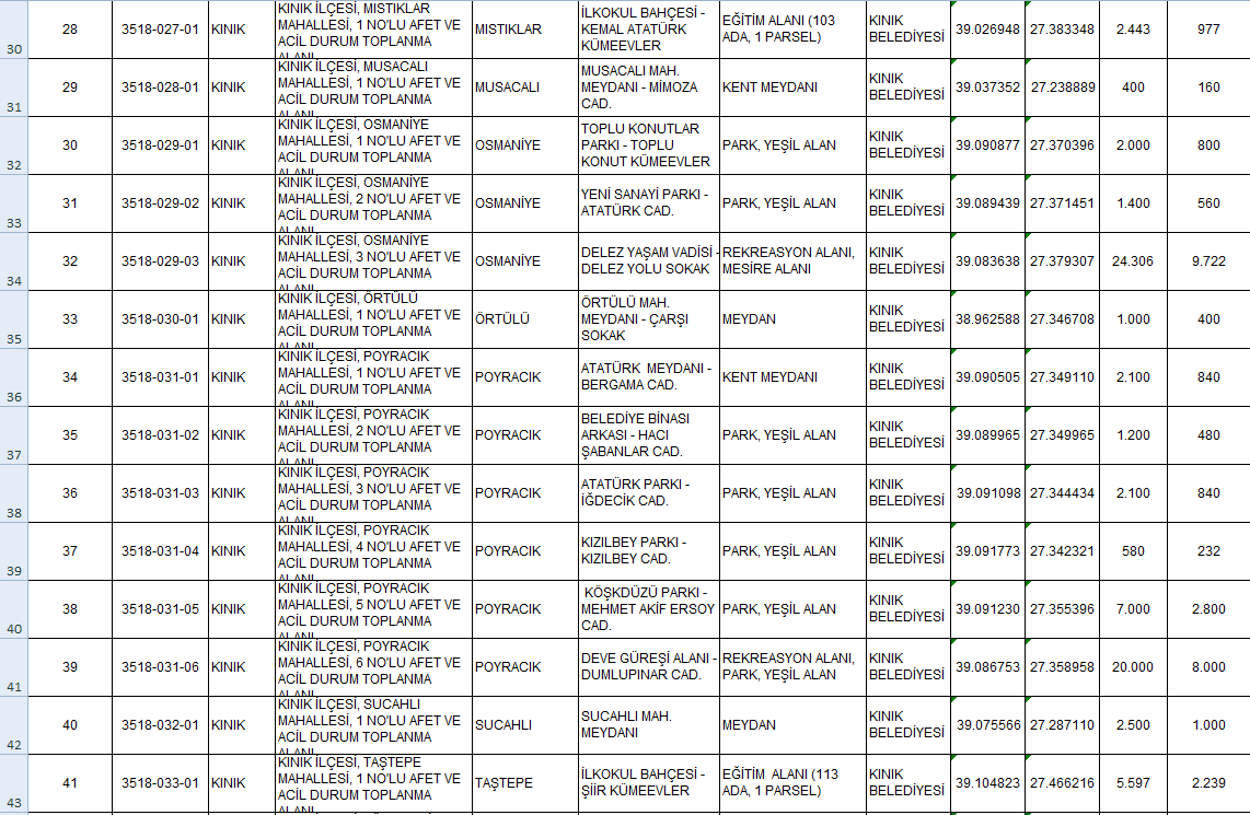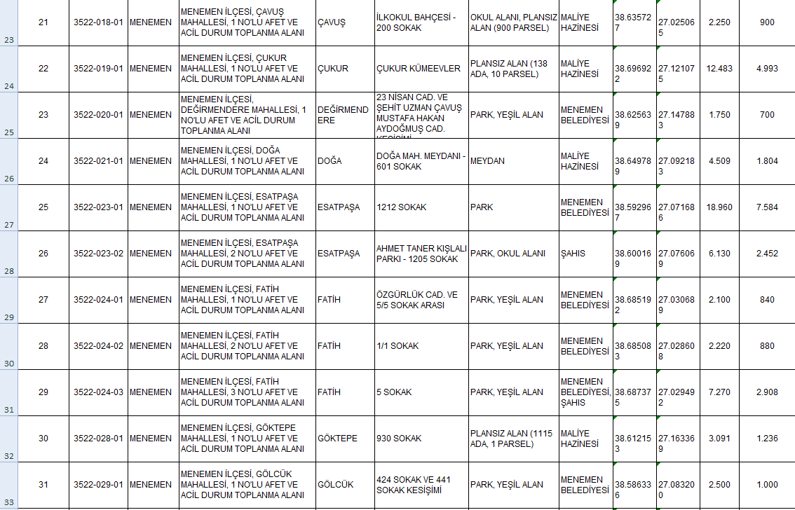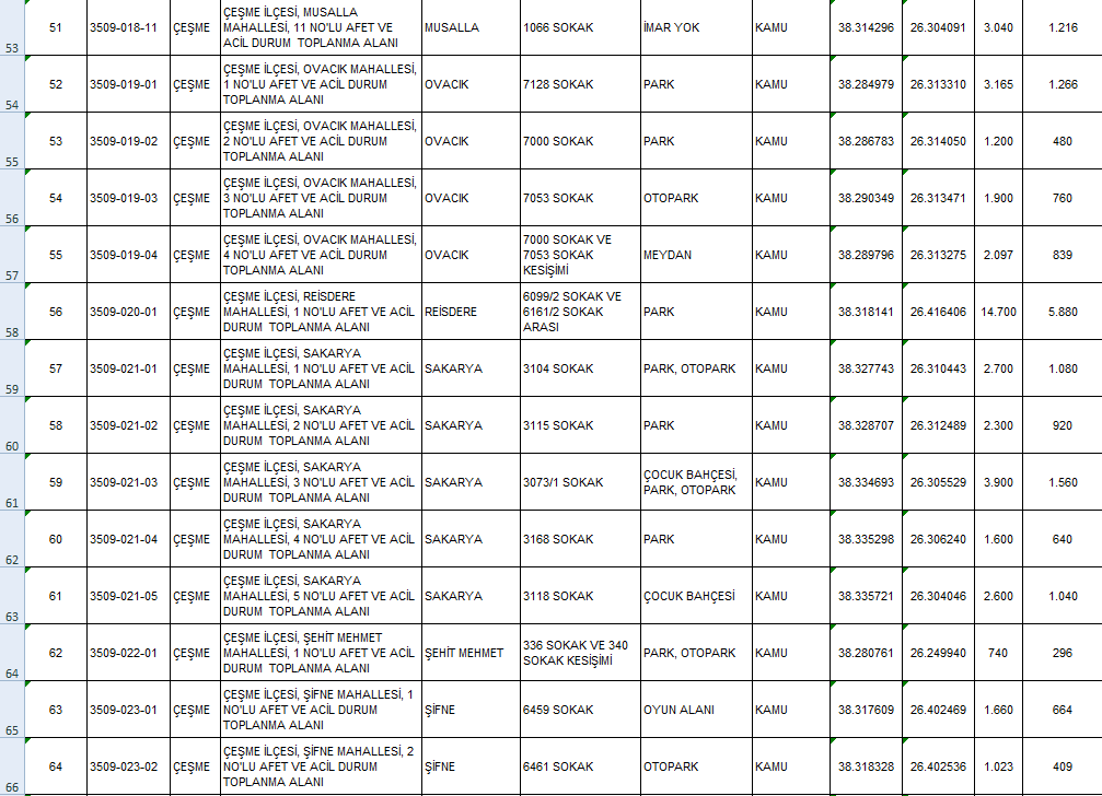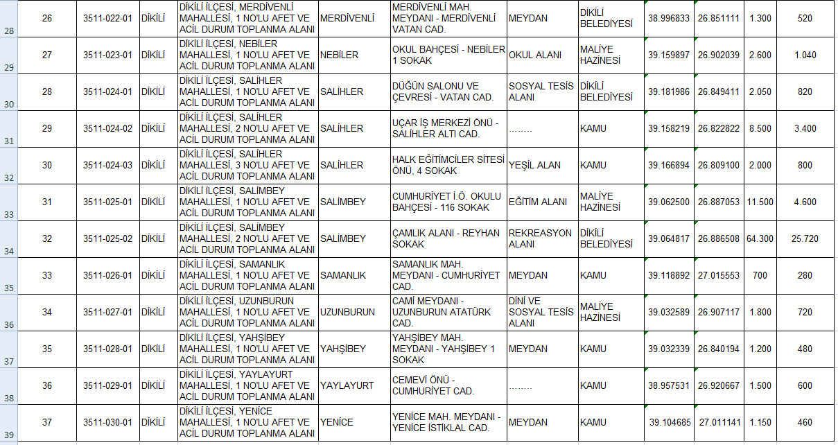 İzmir'de olası bir afet sonrası toplanma alanlarının (korunaklı alanlar) ilçe ilçe, mahalle mahalle listesi...