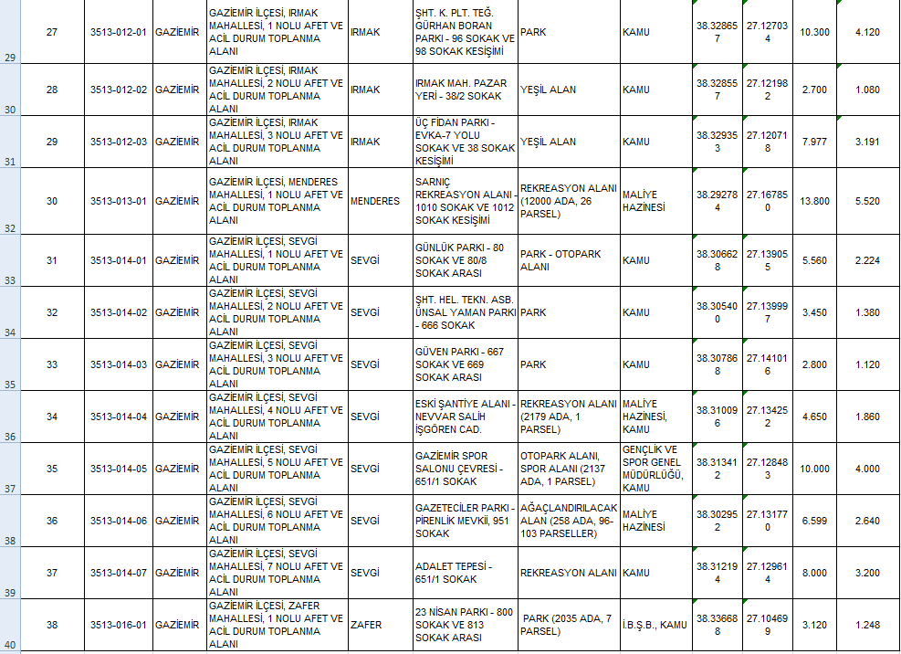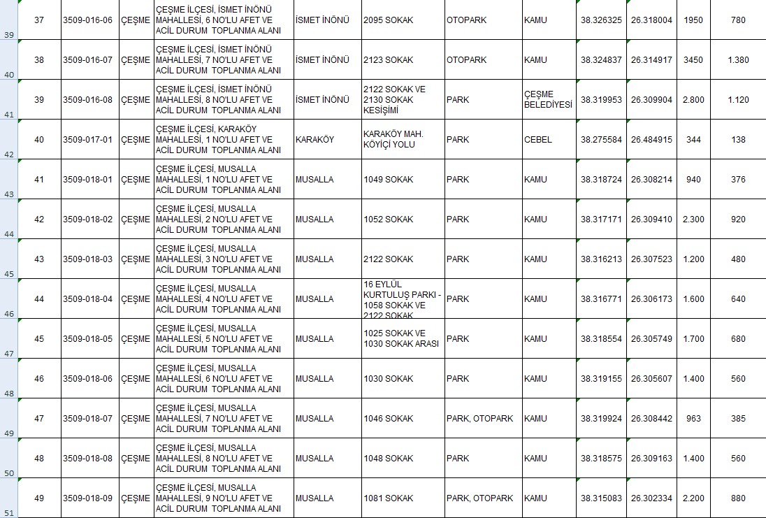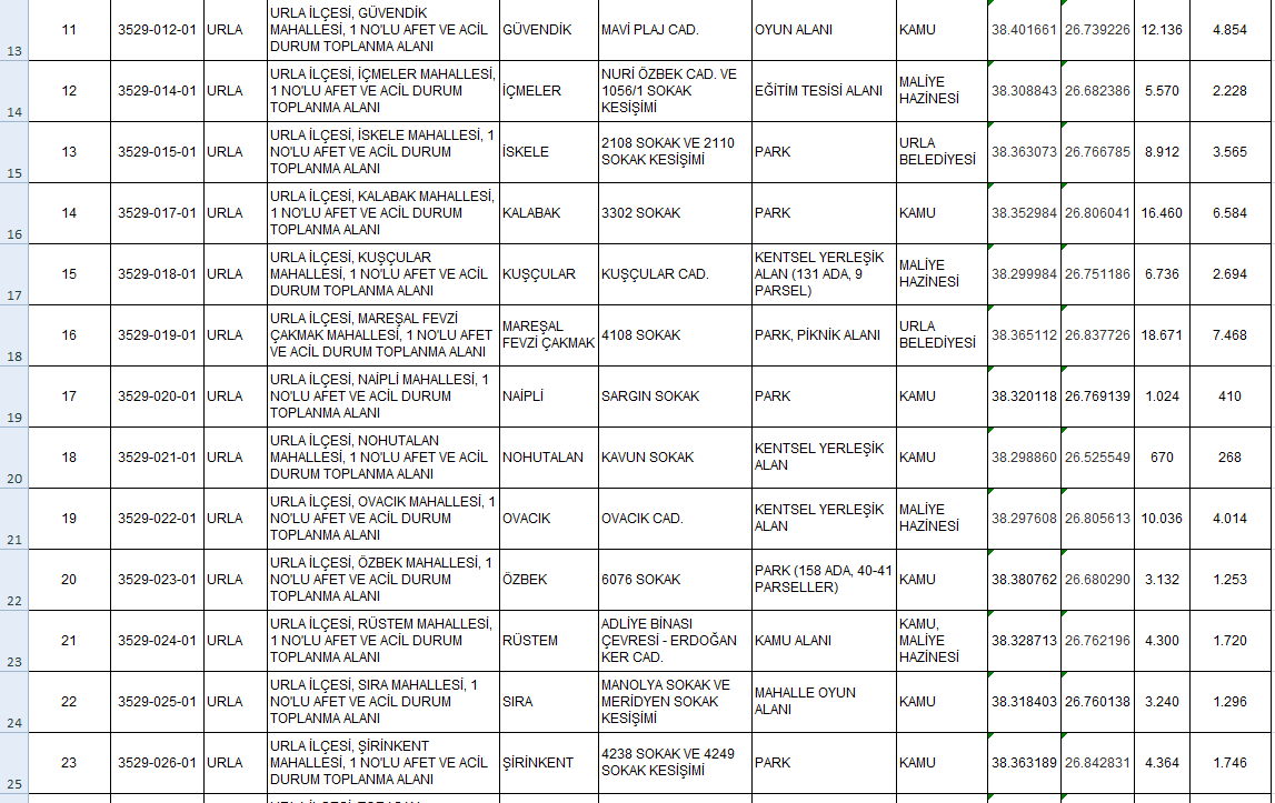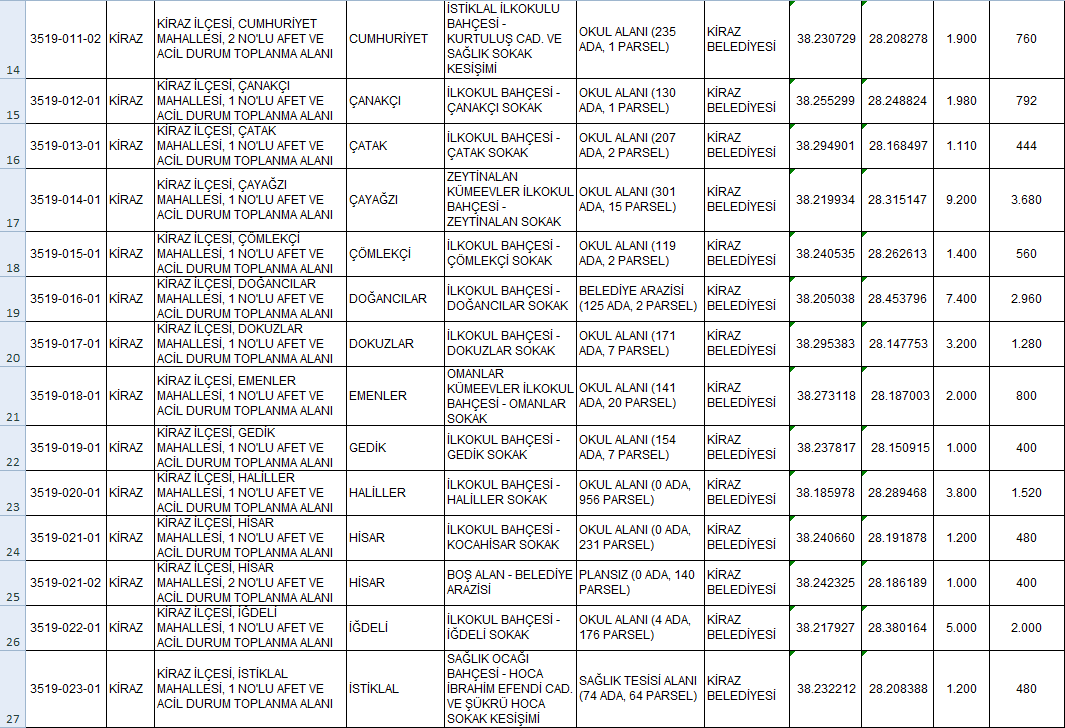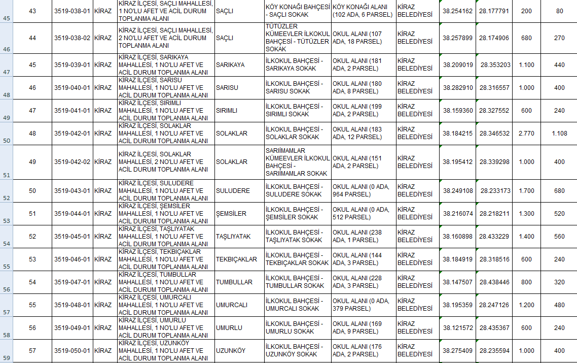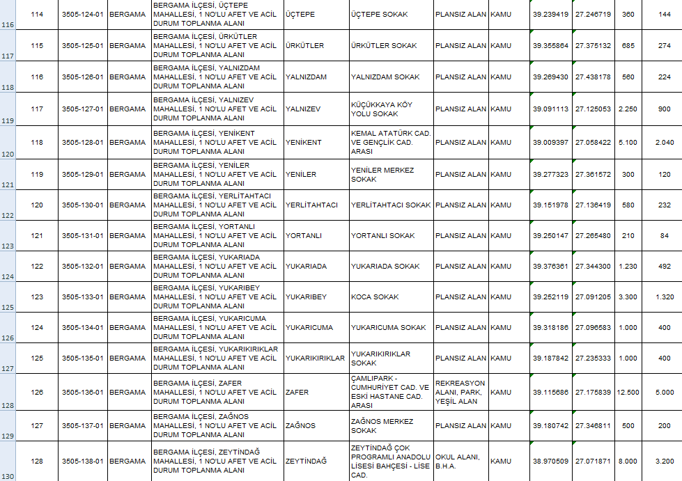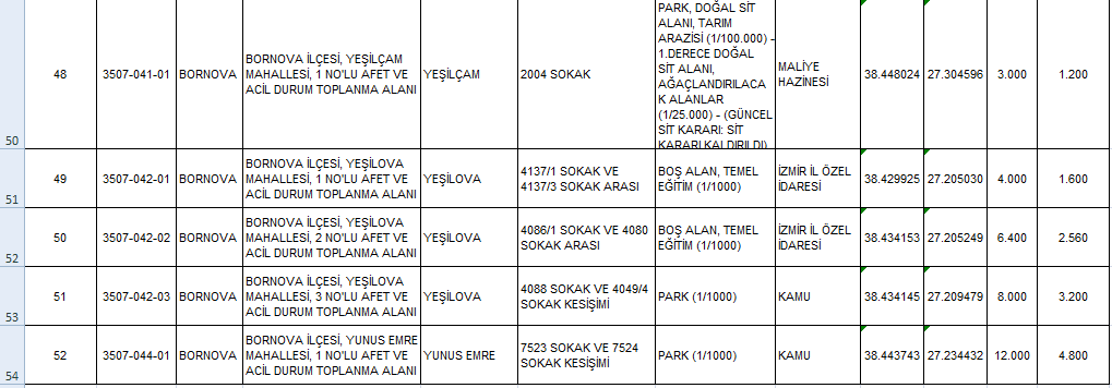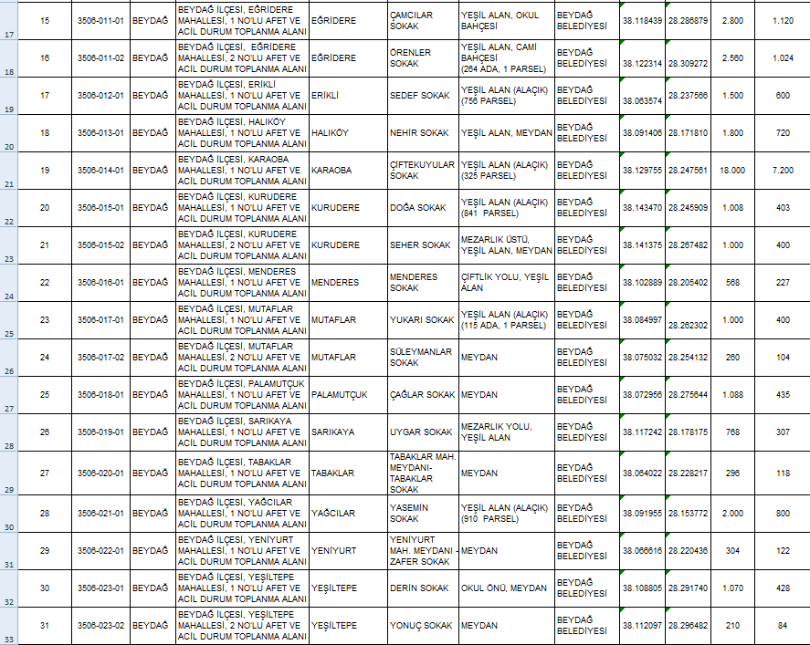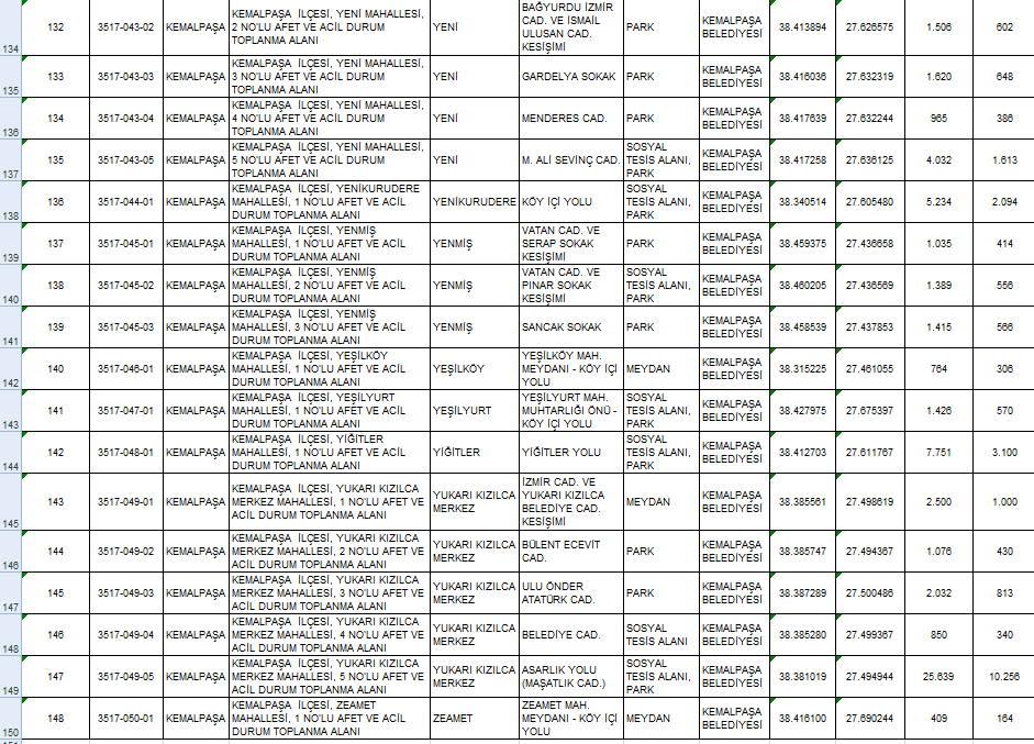 İzmir'de olası bir afet sonrası toplanma alanlarının (korunaklı alanlar) ilçe ilçe, mahalle mahalle listesi...