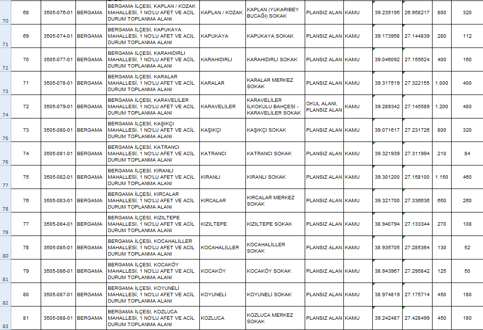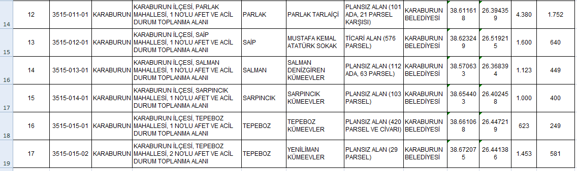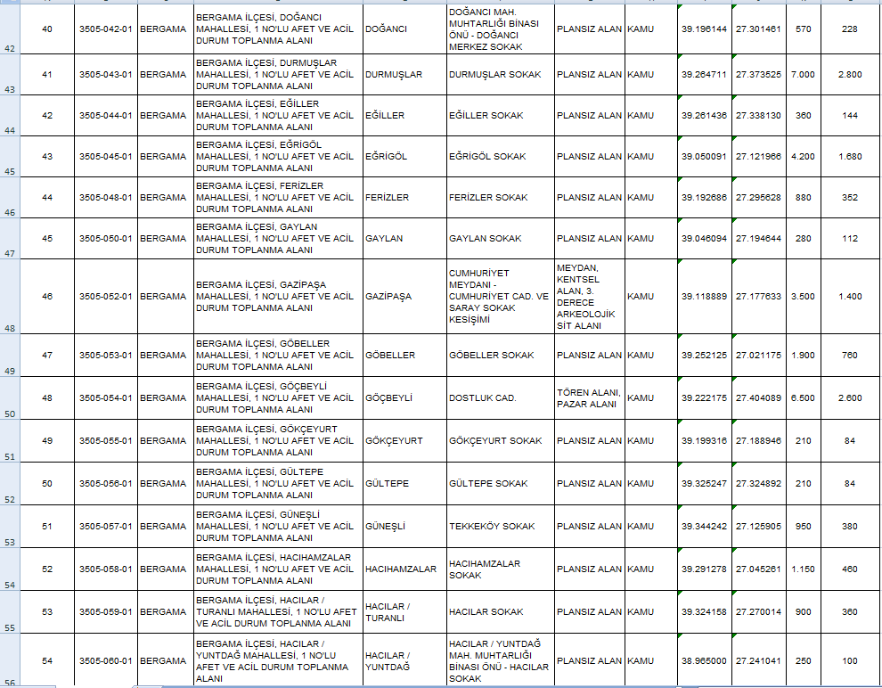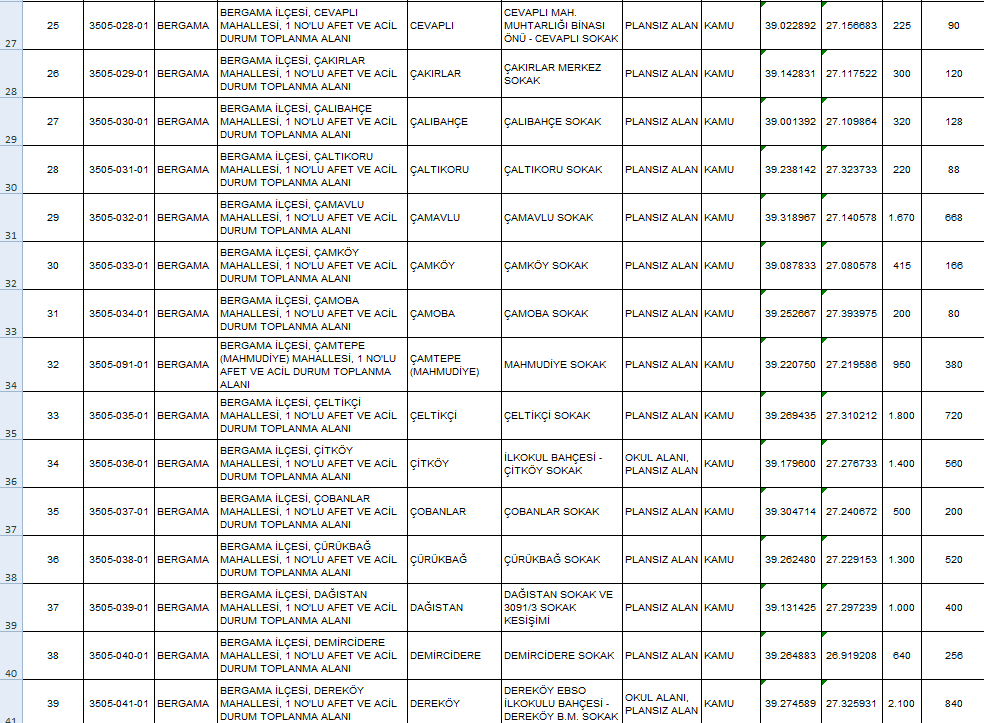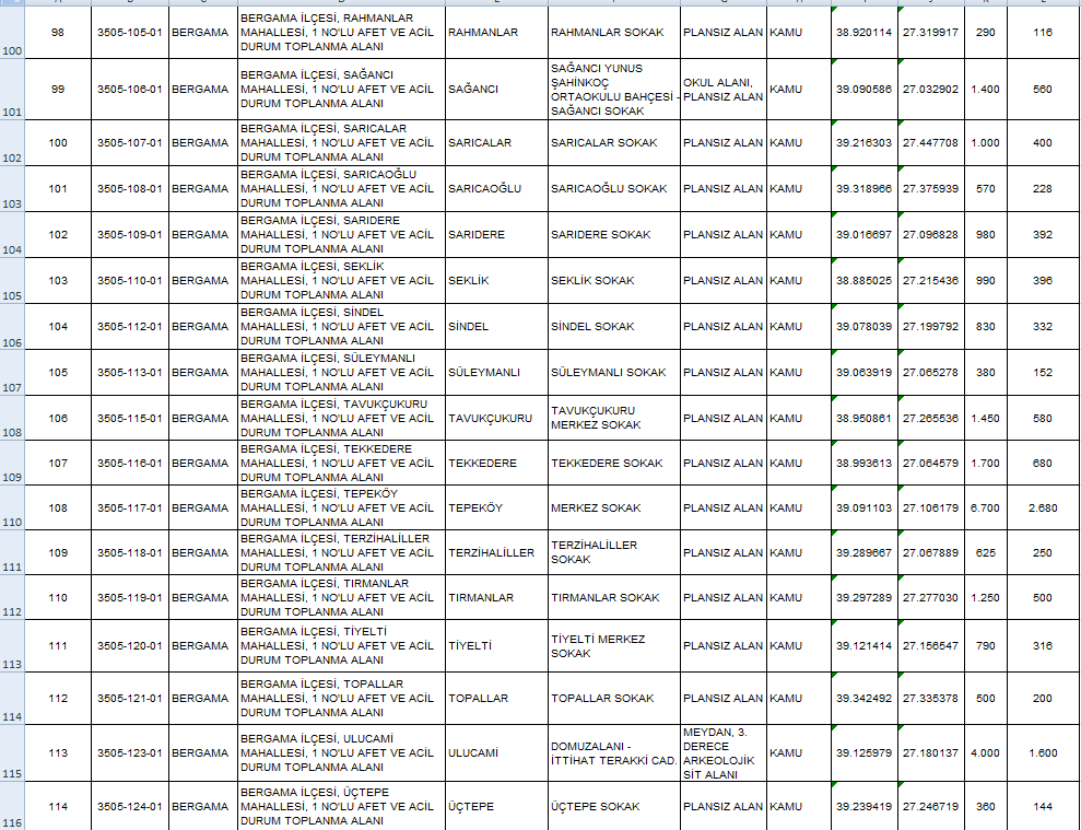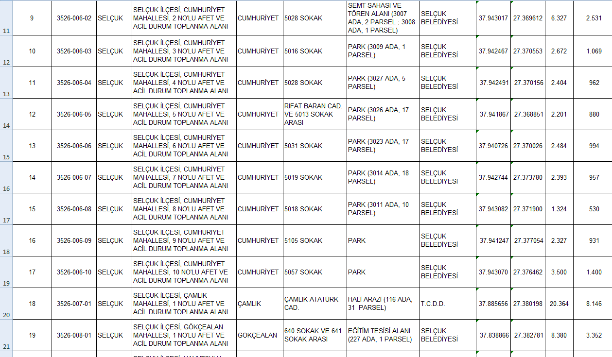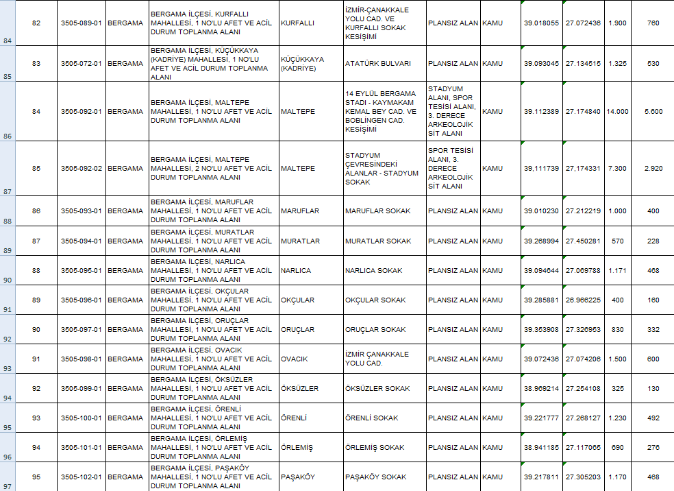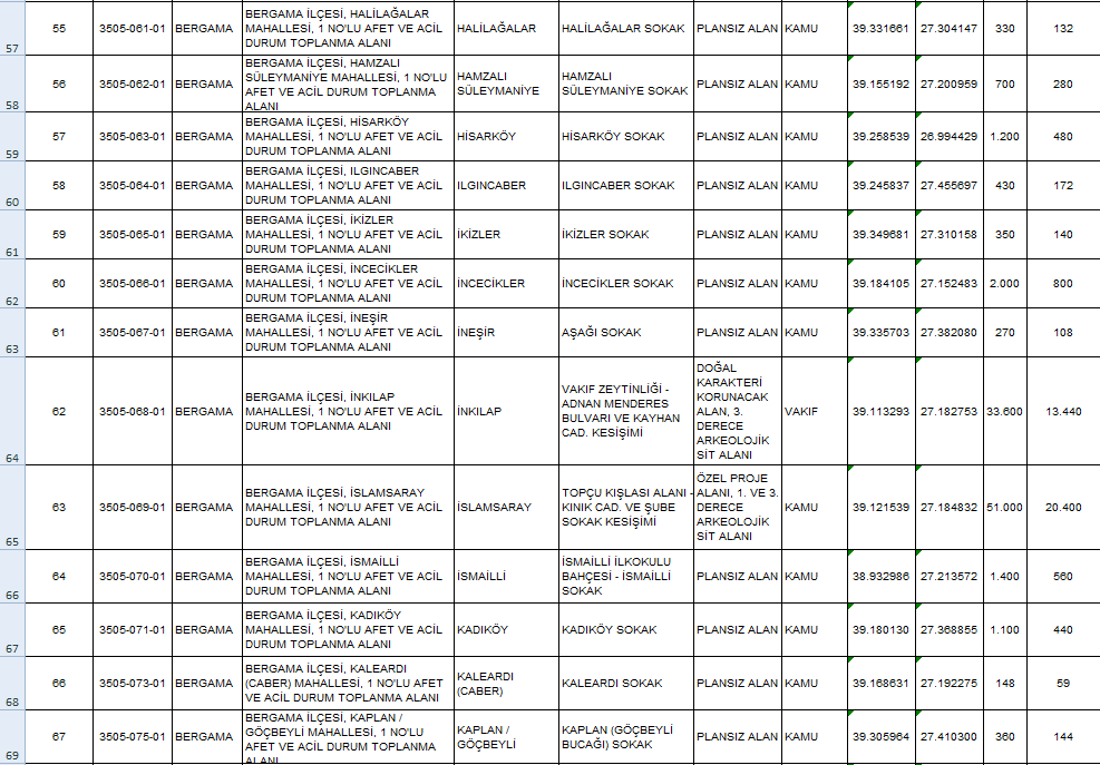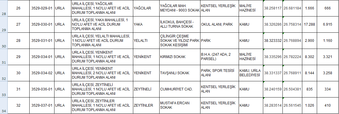 İzmir'de olası bir afet sonrası toplanma alanlarının (korunaklı alanlar) ilçe ilçe, mahalle mahalle listesi...