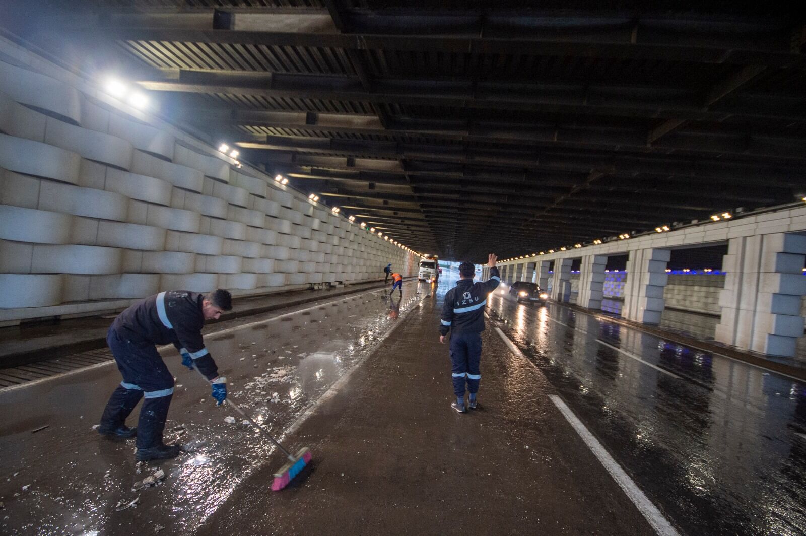 Ekipler gece boyunca yol süpürme ve yıkama araçlarıyla kentin pek çok meydan, bulvar, cadde ve sokağında temizlik yaptı. Altgeçitler temizlendi.