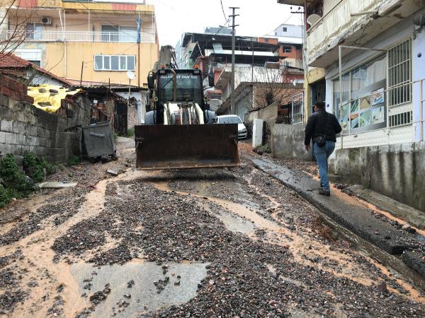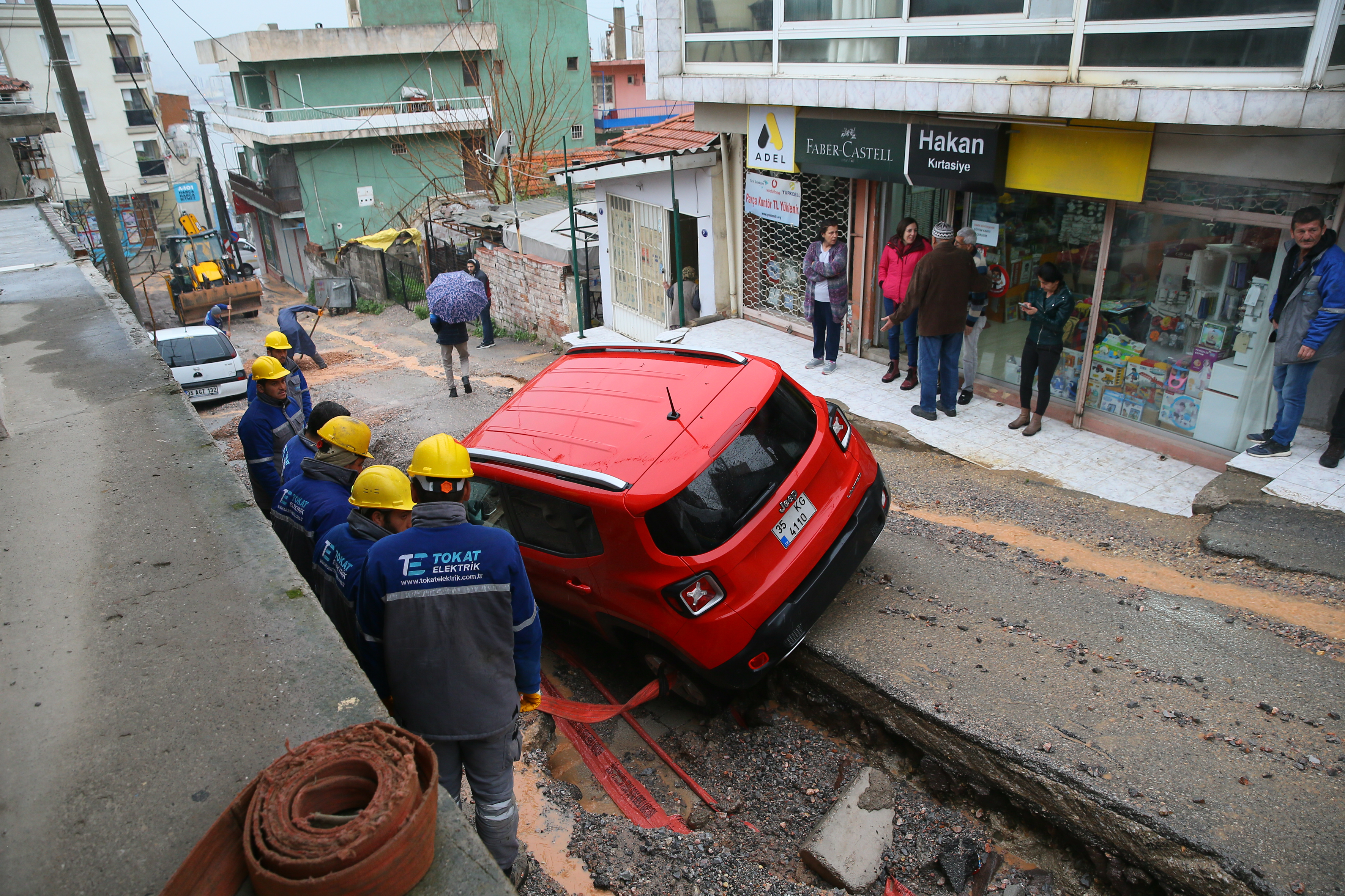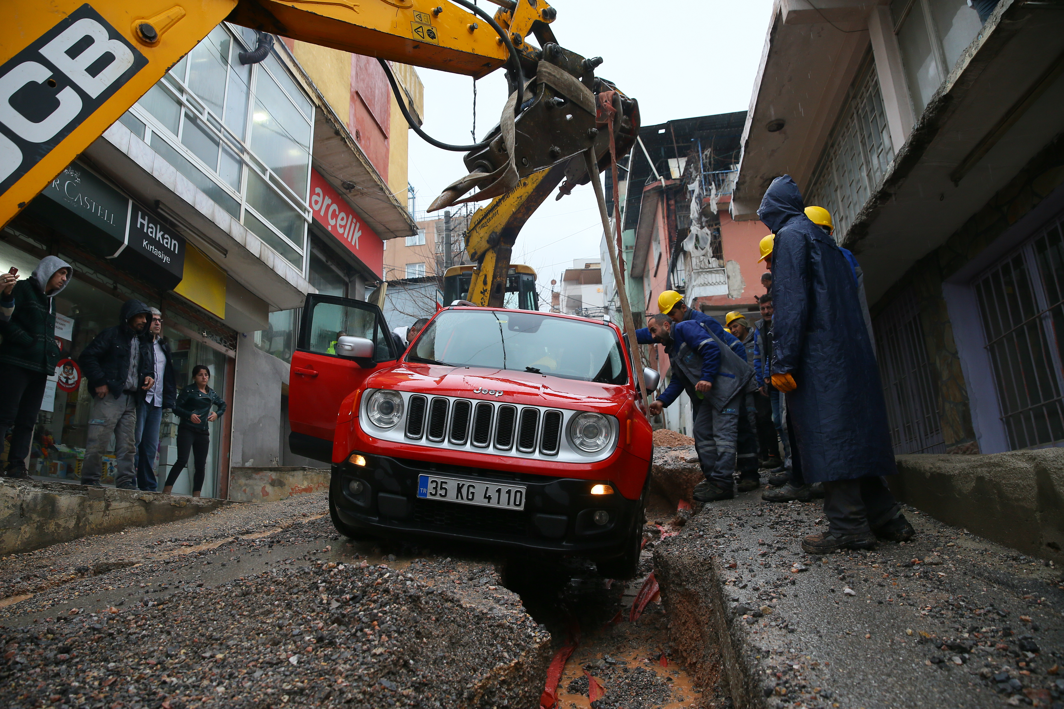 Alpaslan Mahallesi 1620/12 sokakta da yağış sebebiyle asfaltta çökmeler meydana geldi. Biriken sular halka zor anlar yaşatırken, iki otomobil oluşan çukurlara düştü. Maddi hasar meydana gelen araçlar çekici yardımıyla çıkarılırken, sokağa gelen ekipler hem temizlik hem de çöken bölgeyi doldurmak için çalışmalara başladı.