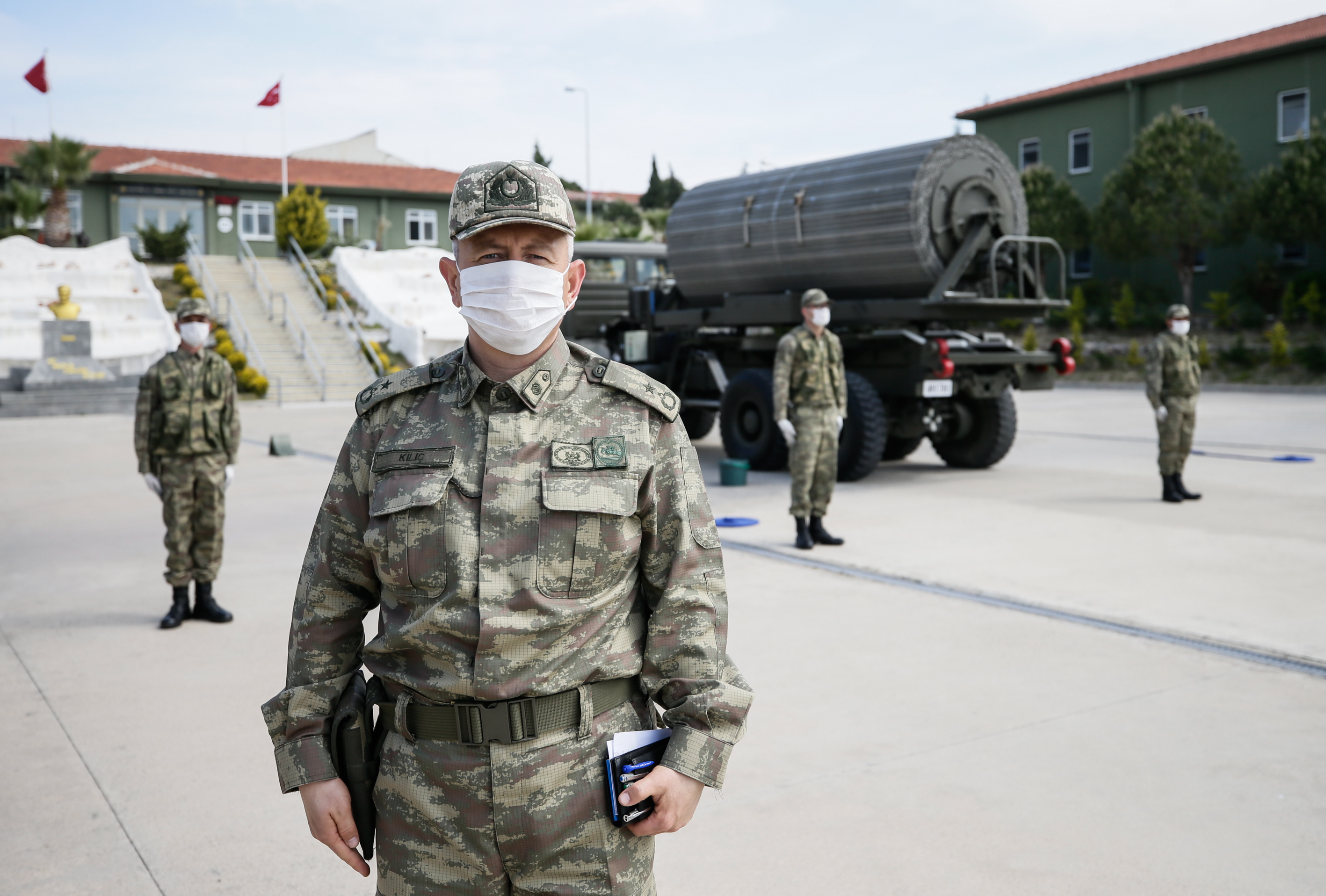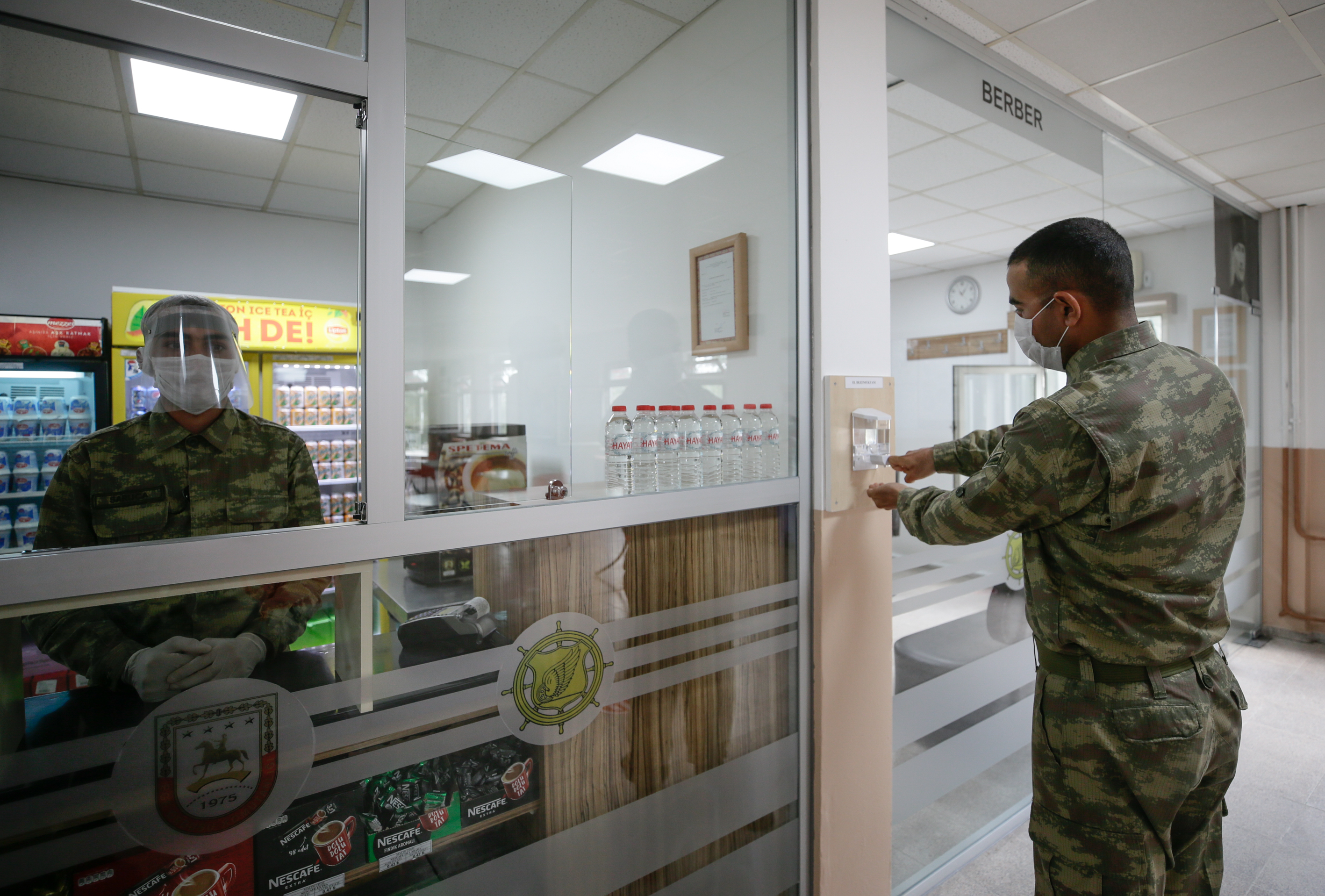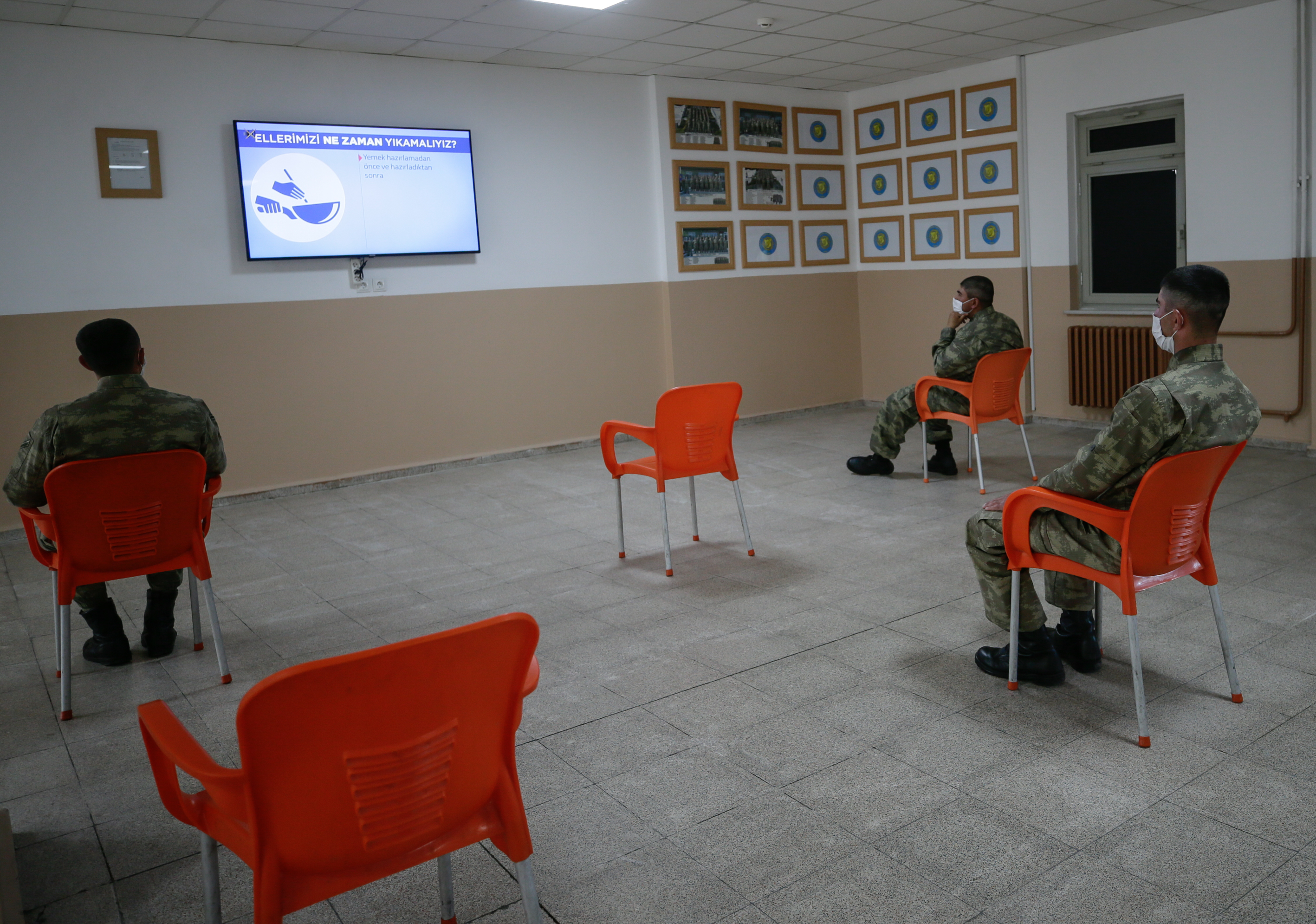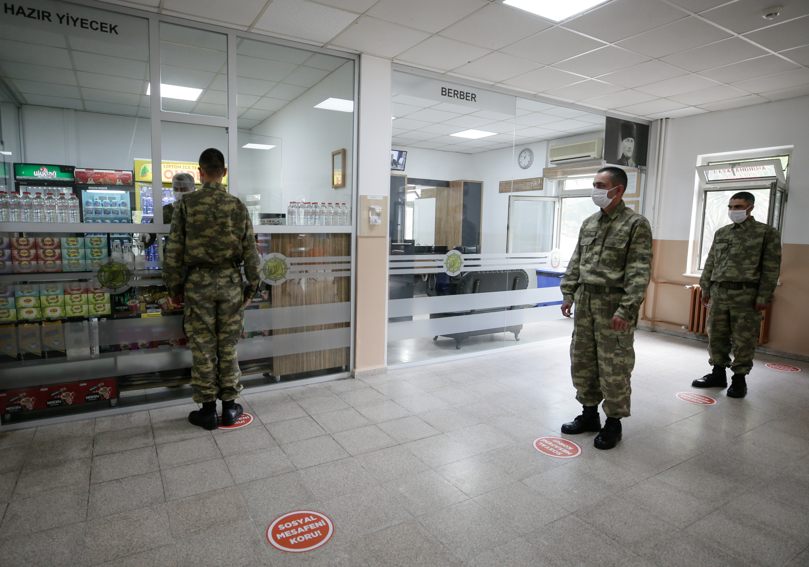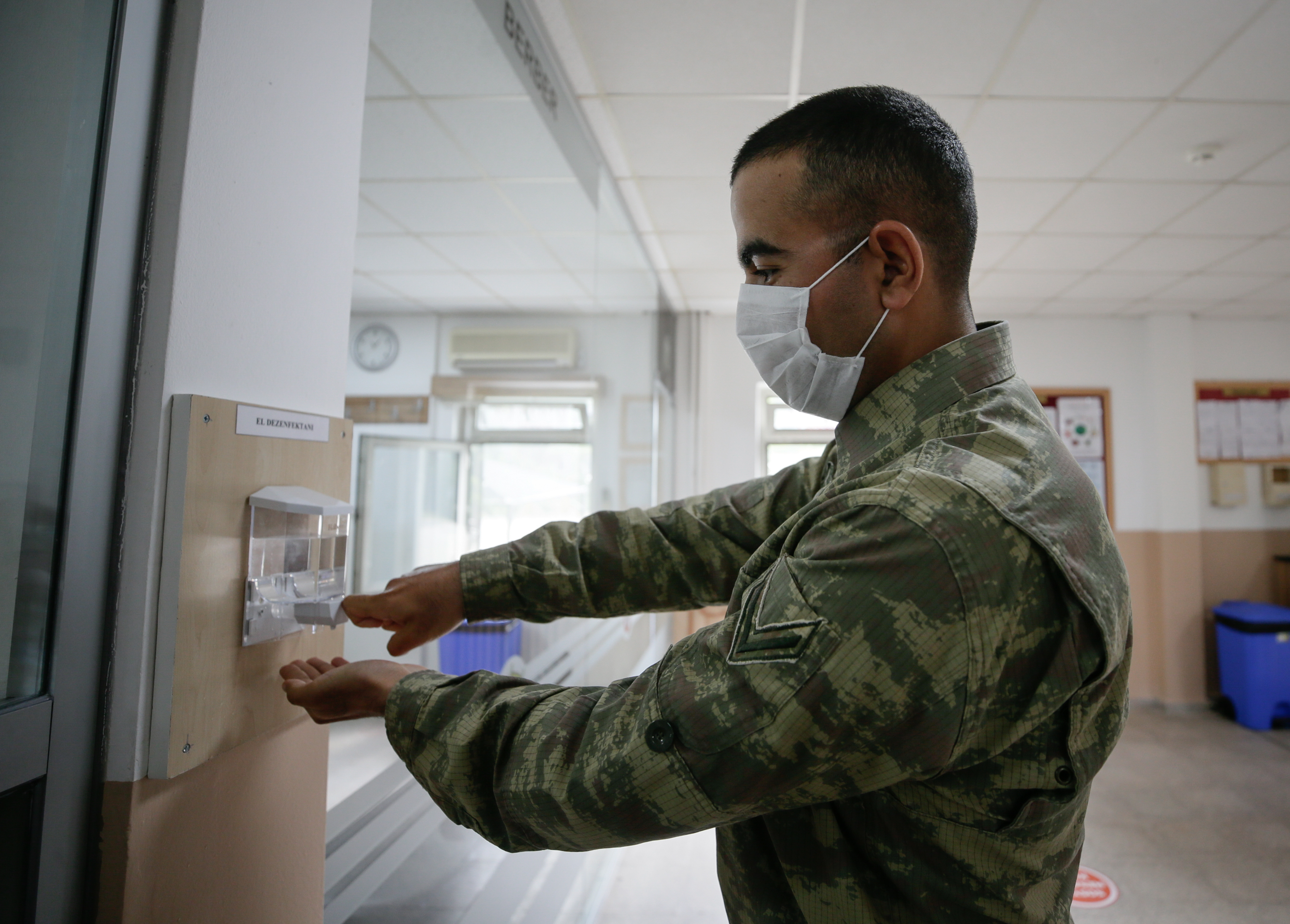"Koğuşlar bölgesinde erbaş ve erlerin salgından korunması maksadıyla sosyal mesafe kuralına uygun olarak koğuş yatma planlarımızı revize ettik. Personelin kullanmış olduğu yerleri sıklıkla temizliyoruz. Ayrıca Mehmetçiklerimizin kullandığı tesisleri giriş ve çıkışlarda hijyen tedbirlerini etkin olarak kullanıyoruz. TSK'de devam eden eğitim faaliyetlerinde küçük gruplar halinde, istasyon halinde uygulamalı olarak eğitimlerimizi aksatmadan icra ediyoruz."