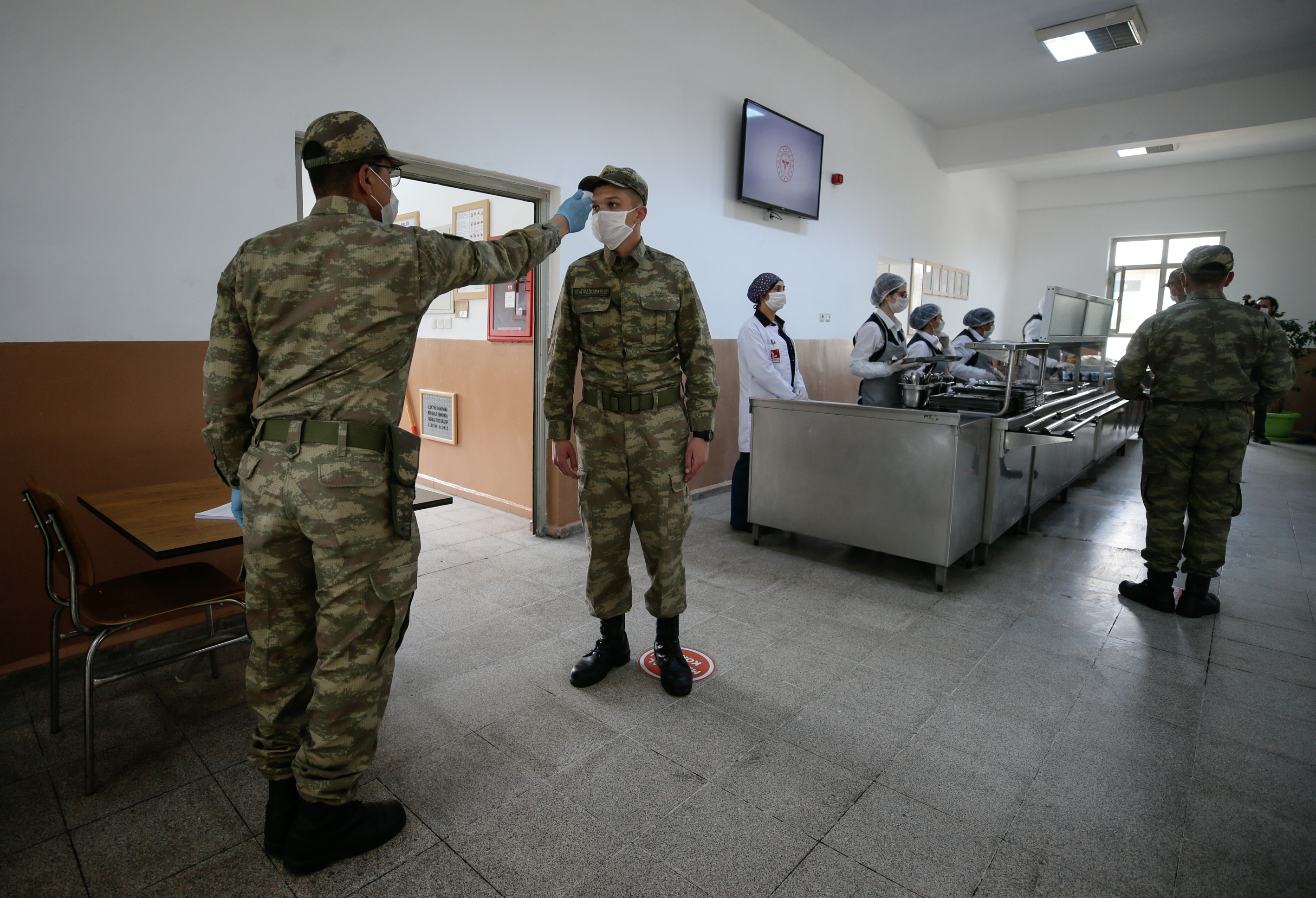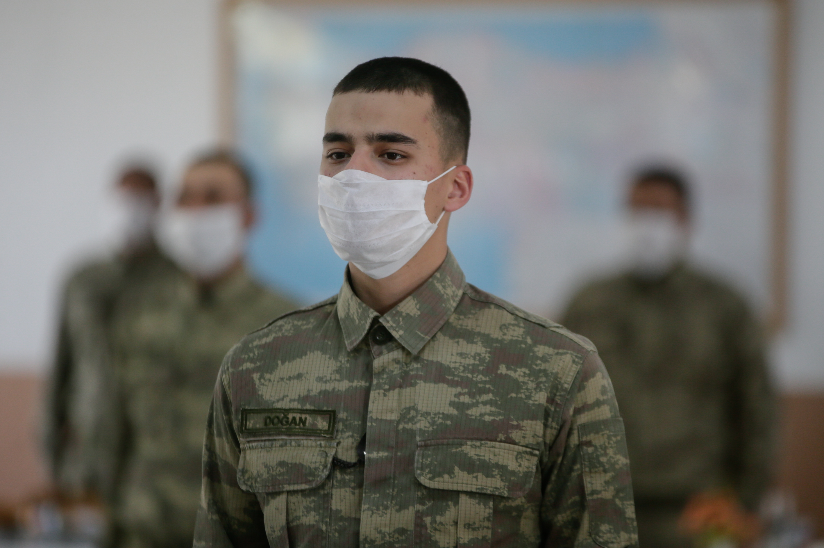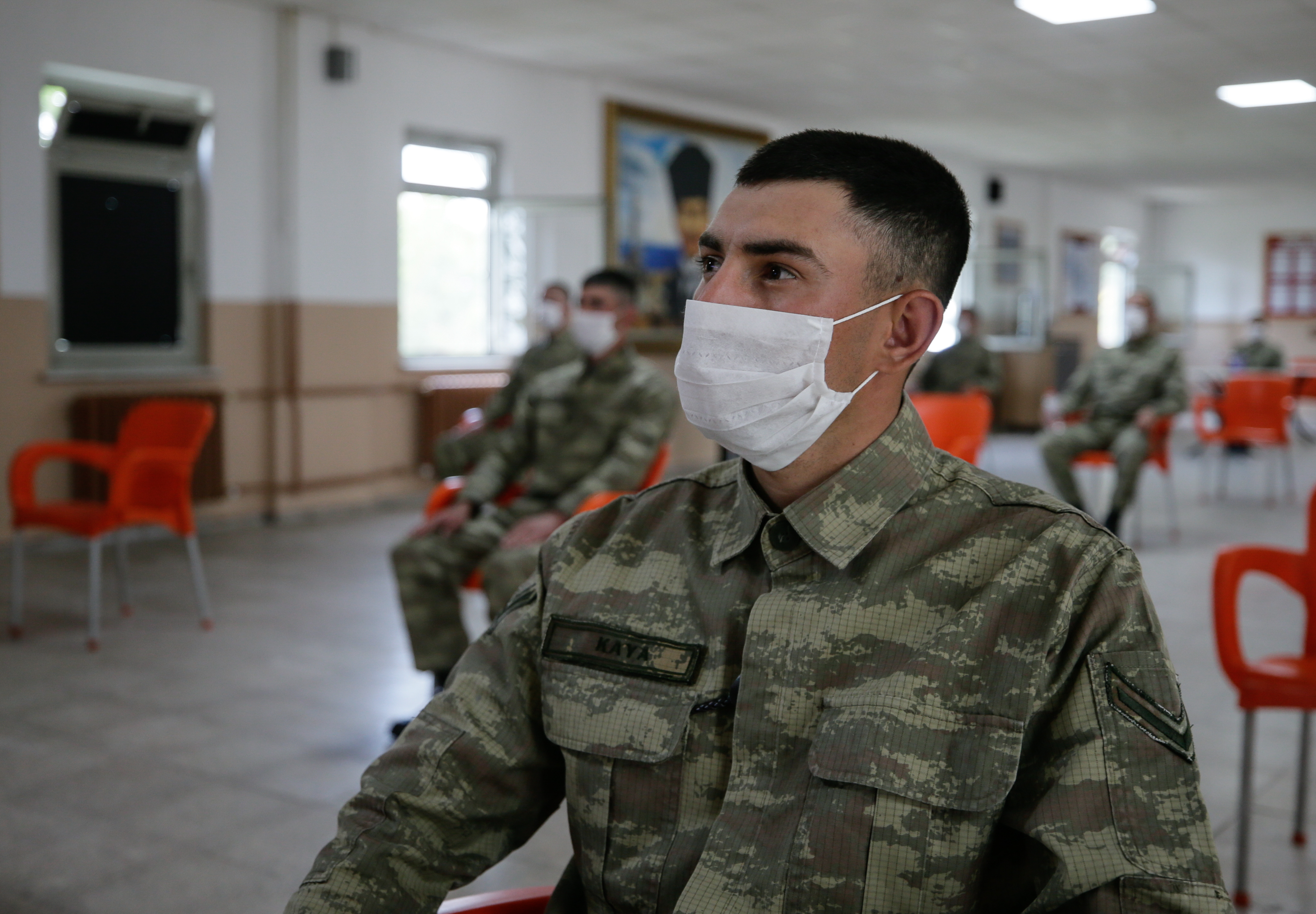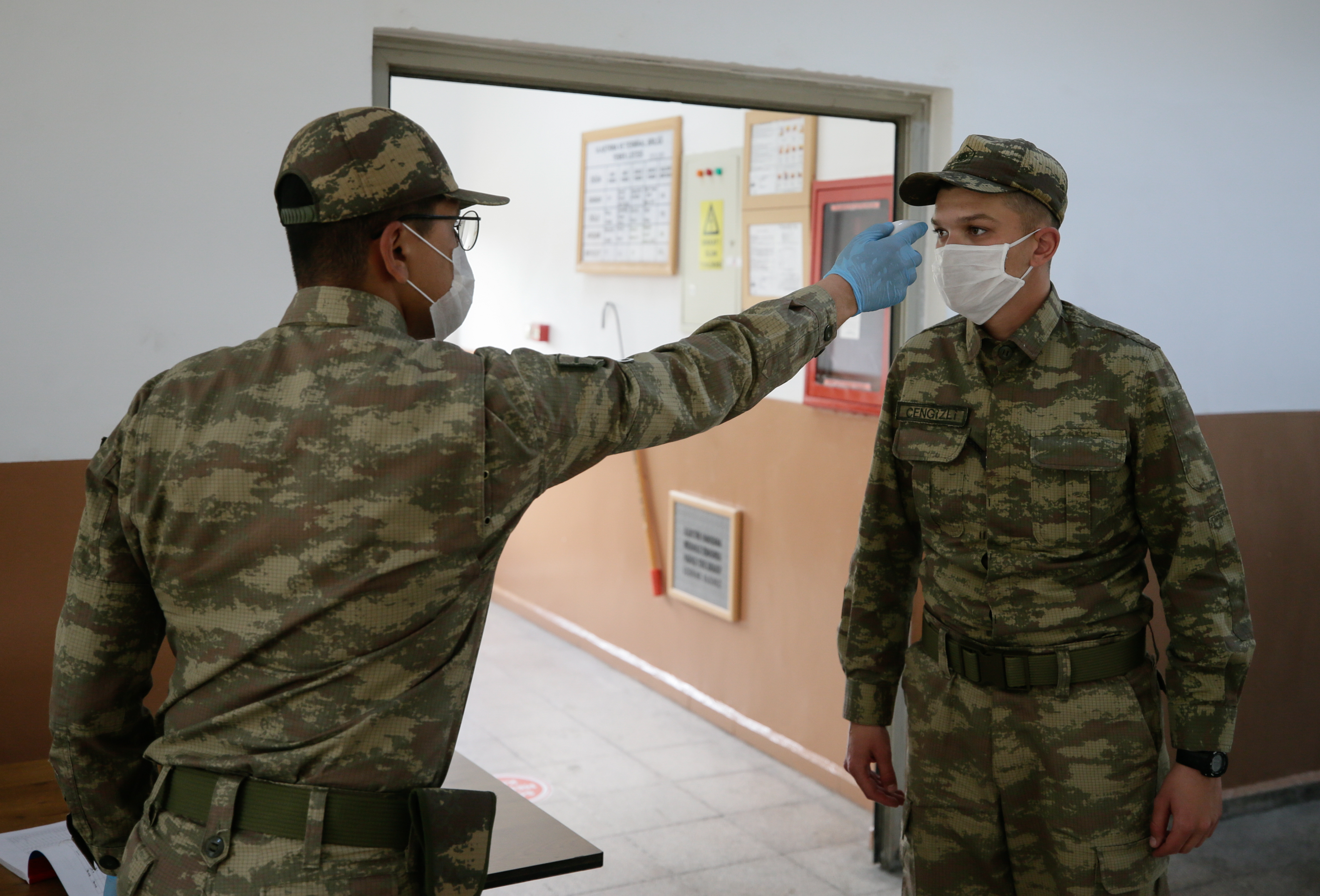 "Koğuşlar bölgesinde erbaş ve erlerin salgından korunması maksadıyla sosyal mesafe kuralına uygun olarak koğuş yatma planlarımızı revize ettik. Personelin kullanmış olduğu yerleri sıklıkla temizliyoruz. Ayrıca Mehmetçiklerimizin kullandığı tesisleri giriş ve çıkışlarda hijyen tedbirlerini etkin olarak kullanıyoruz. TSK'de devam eden eğitim faaliyetlerinde küçük gruplar halinde, istasyon halinde uygulamalı olarak eğitimlerimizi aksatmadan icra ediyoruz."