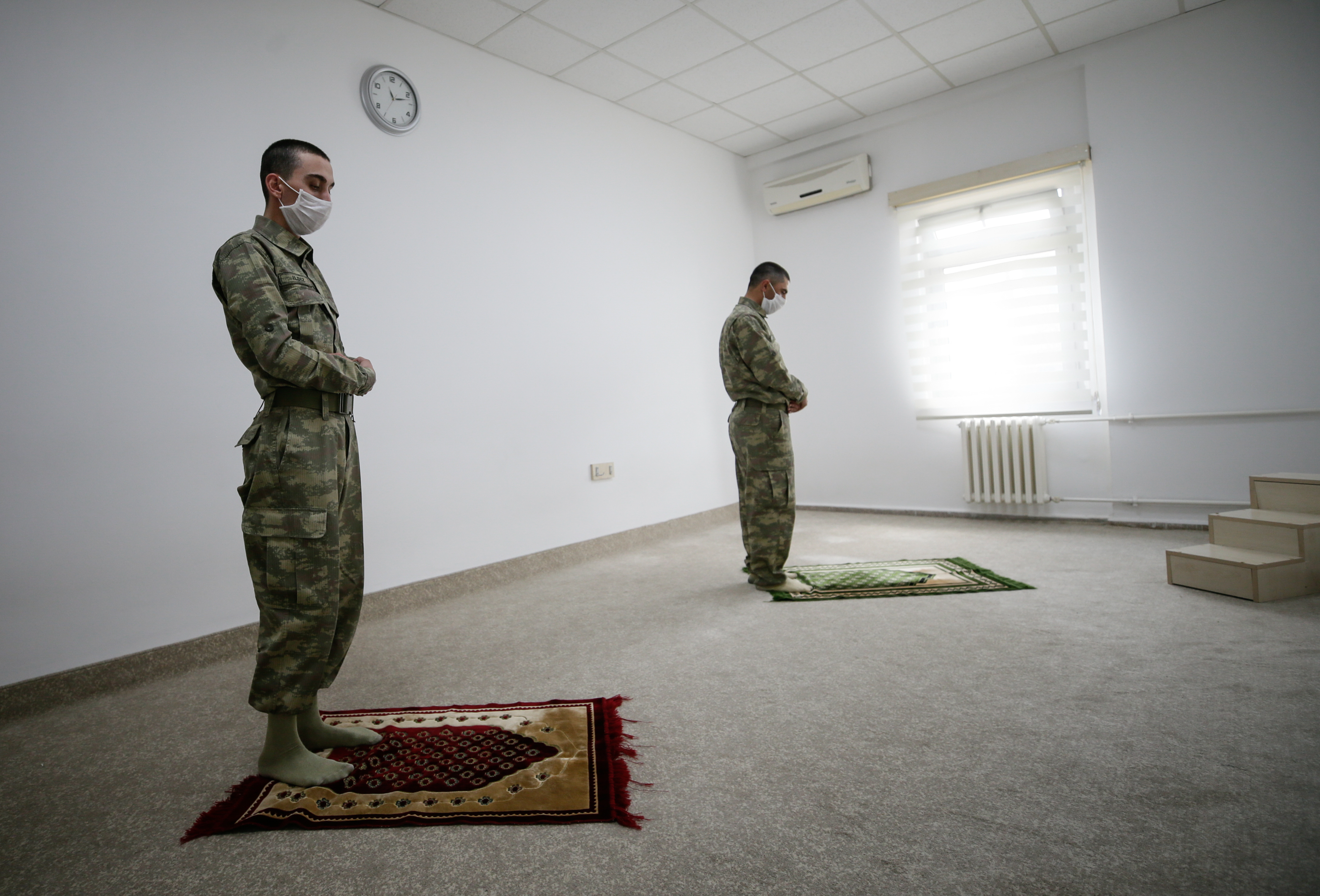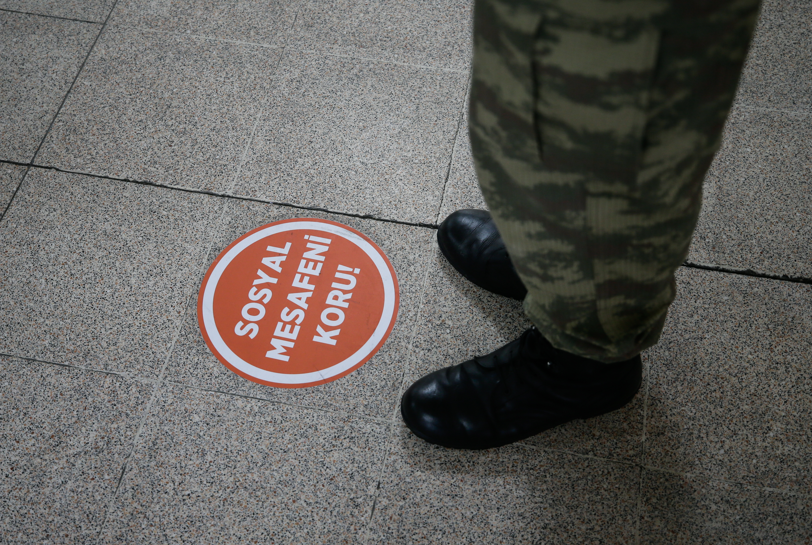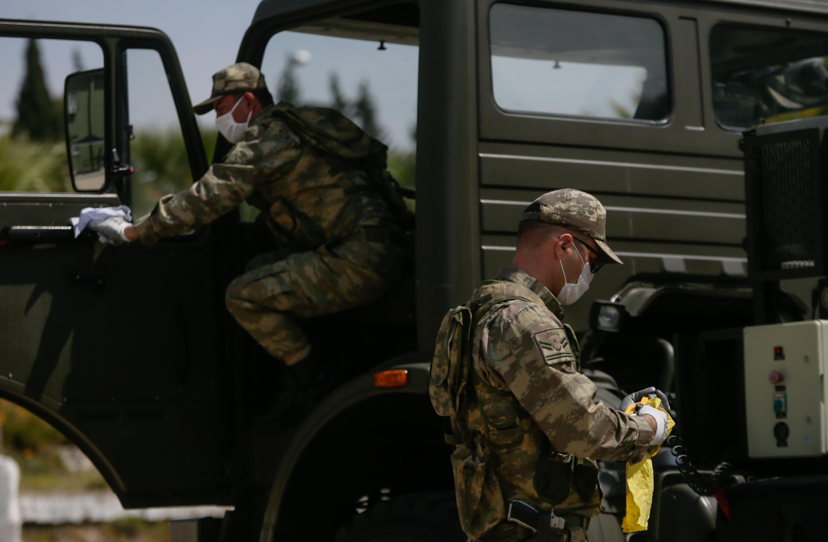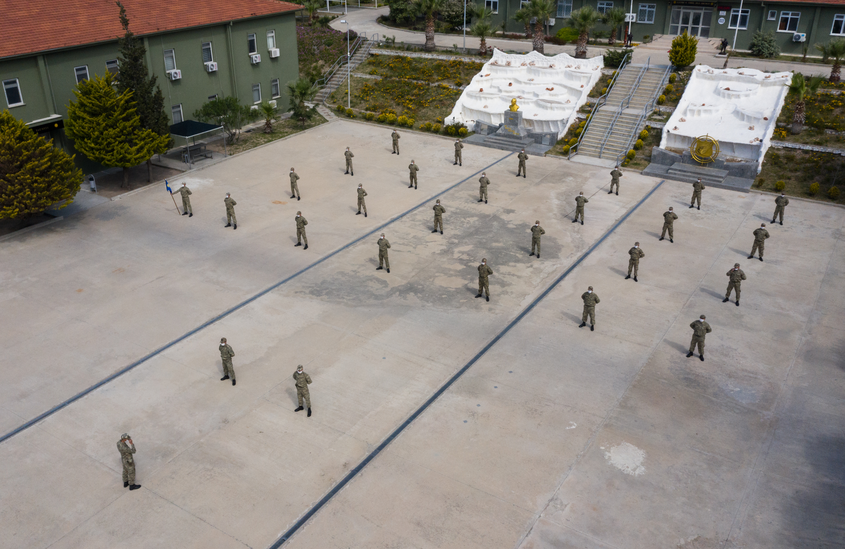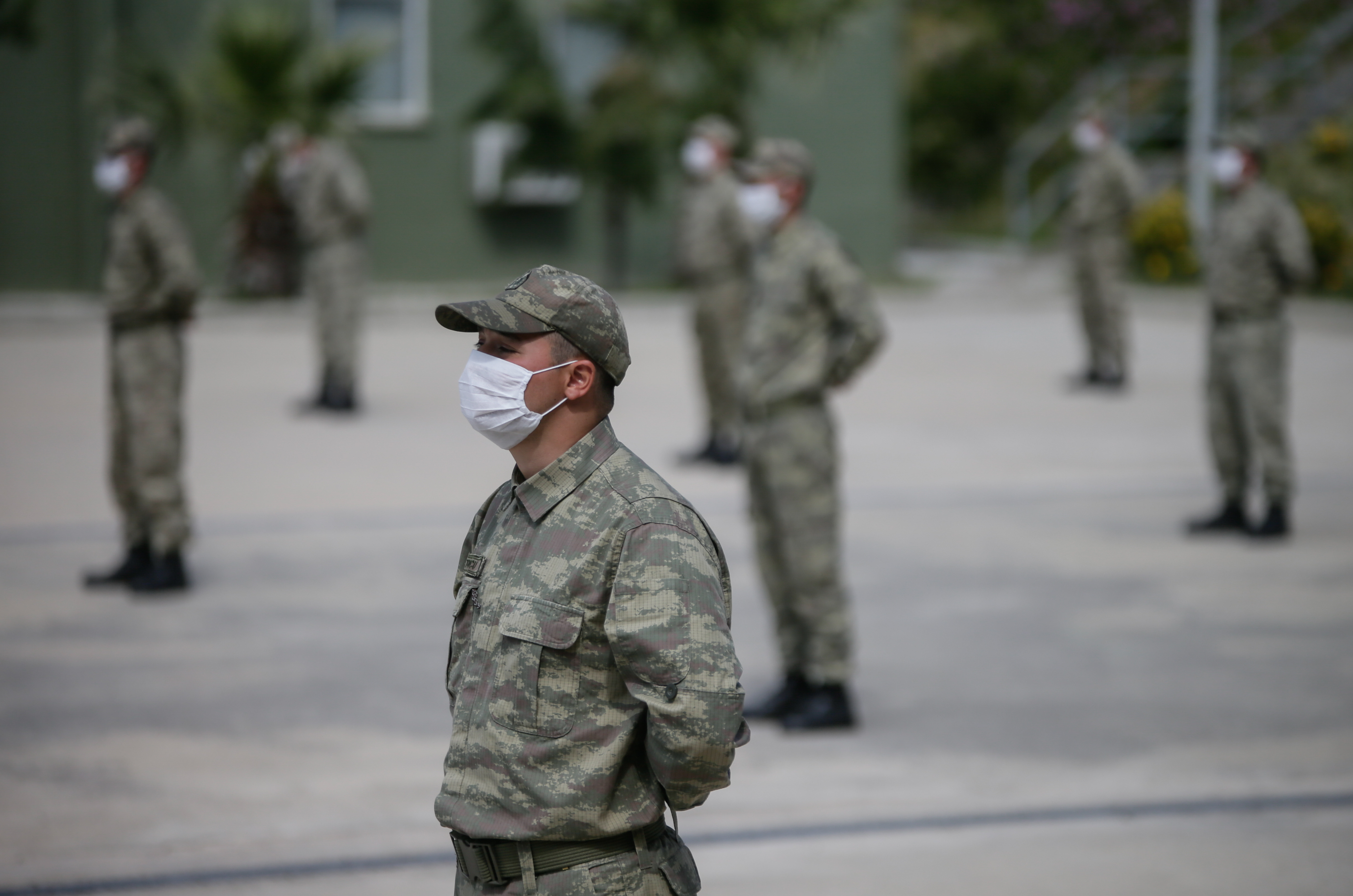 "Koğuşlar bölgesinde erbaş ve erlerin salgından korunması maksadıyla sosyal mesafe kuralına uygun olarak koğuş yatma planlarımızı revize ettik. Personelin kullanmış olduğu yerleri sıklıkla temizliyoruz. Ayrıca Mehmetçiklerimizin kullandığı tesisleri giriş ve çıkışlarda hijyen tedbirlerini etkin olarak kullanıyoruz. TSK'de devam eden eğitim faaliyetlerinde küçük gruplar halinde, istasyon halinde uygulamalı olarak eğitimlerimizi aksatmadan icra ediyoruz."
