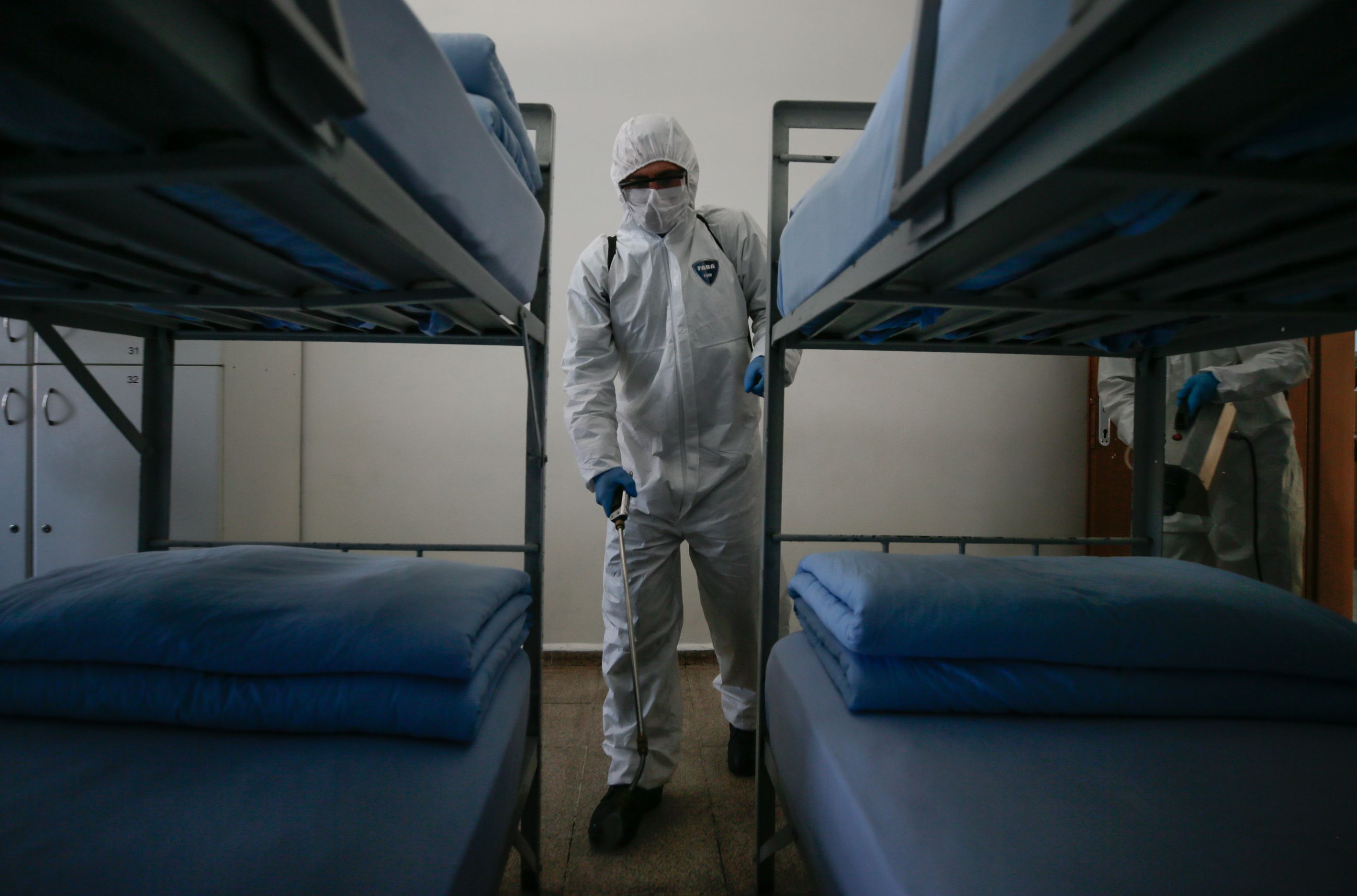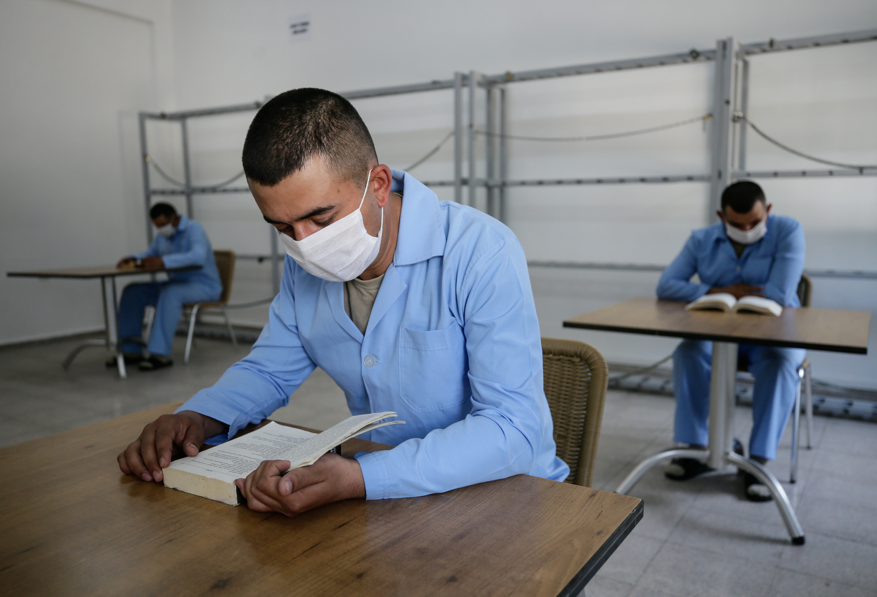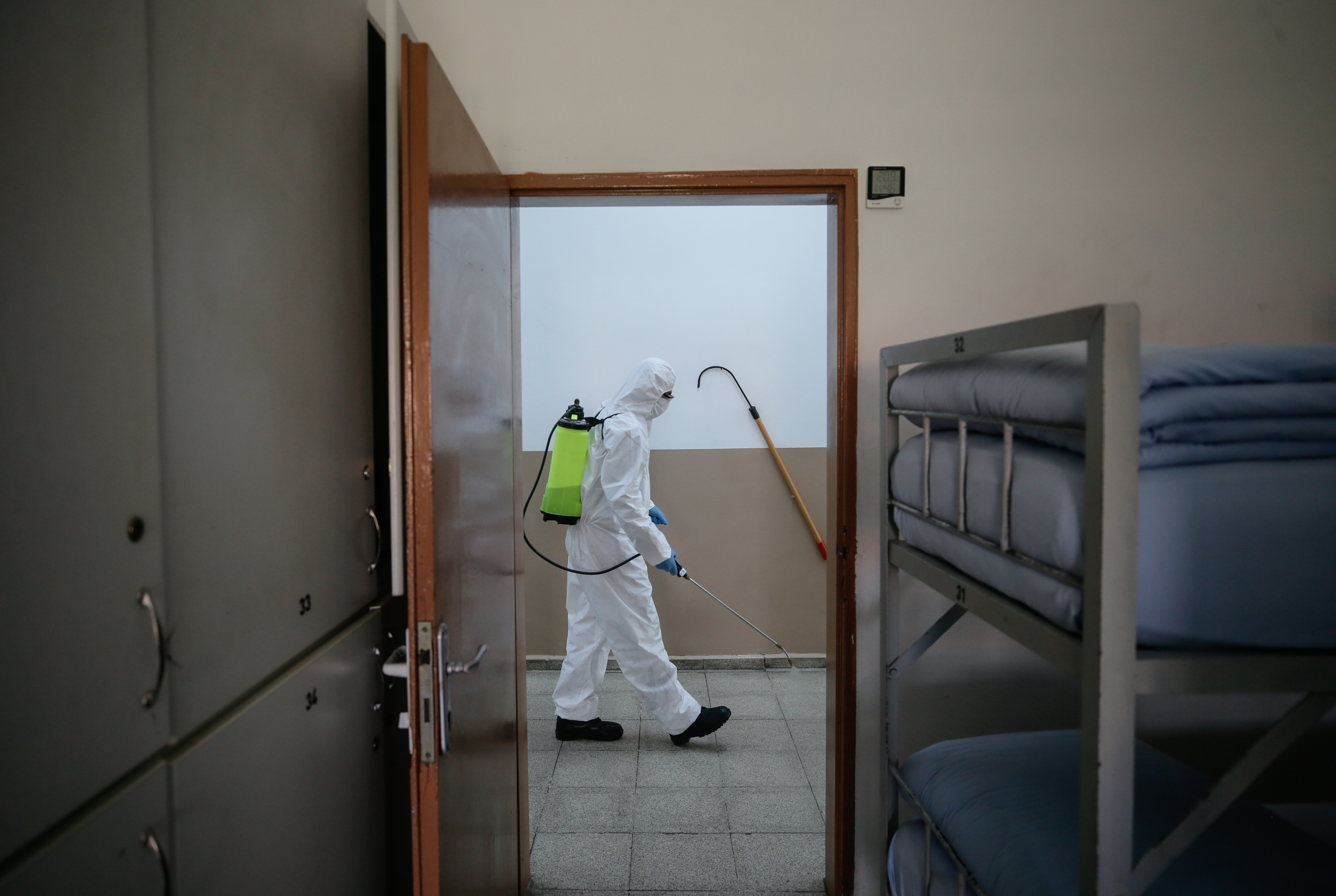 Koğuşlarda ranzalar arasındaki mesafe düzenlenip ilaçlama ve dezenfeksiyon işlemleri gerçekleştirilirken, lavabo ve tuvaletler de sosyal mesafe gözetilerek birer boşluk bırakılarak kullanılıyor.