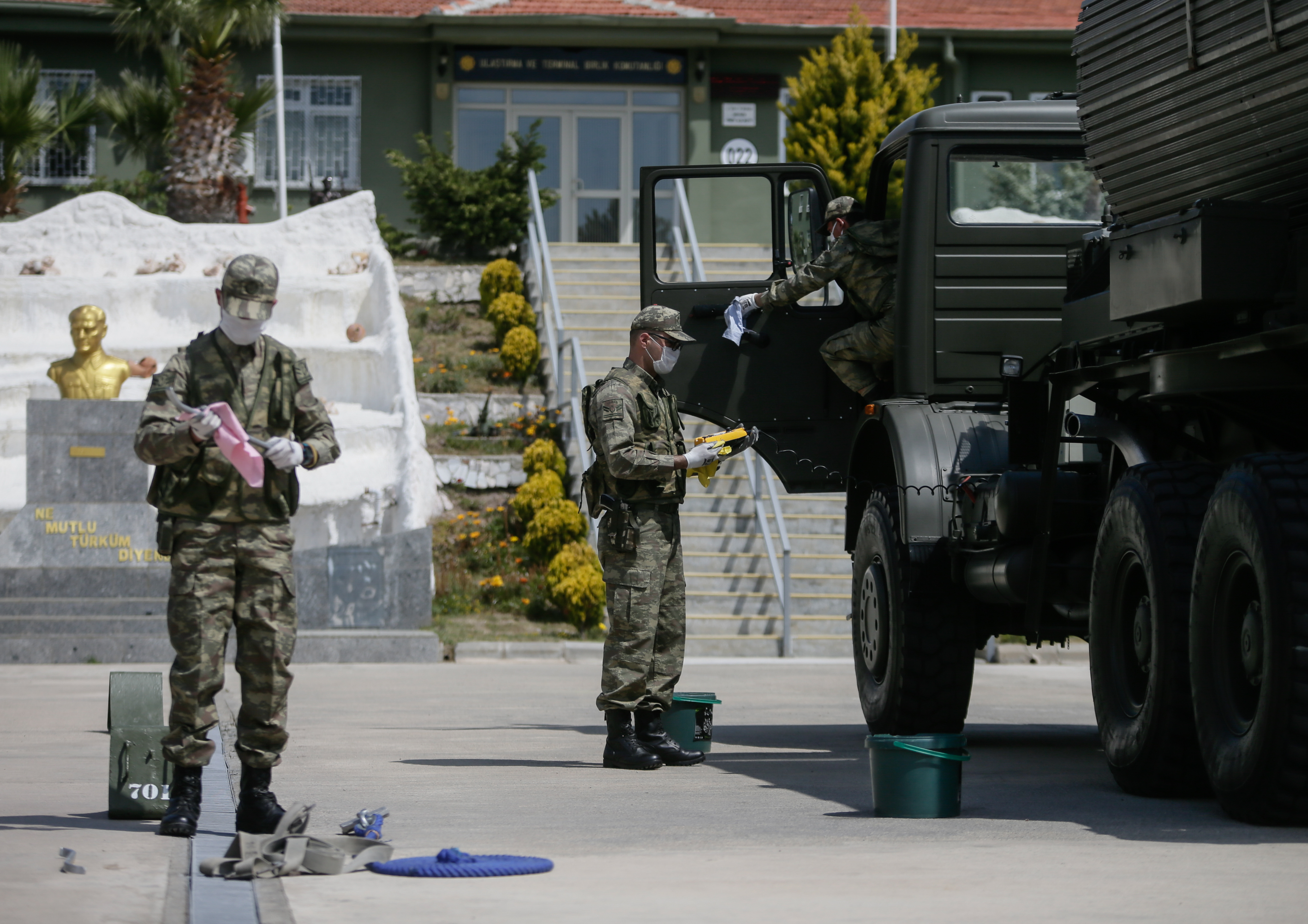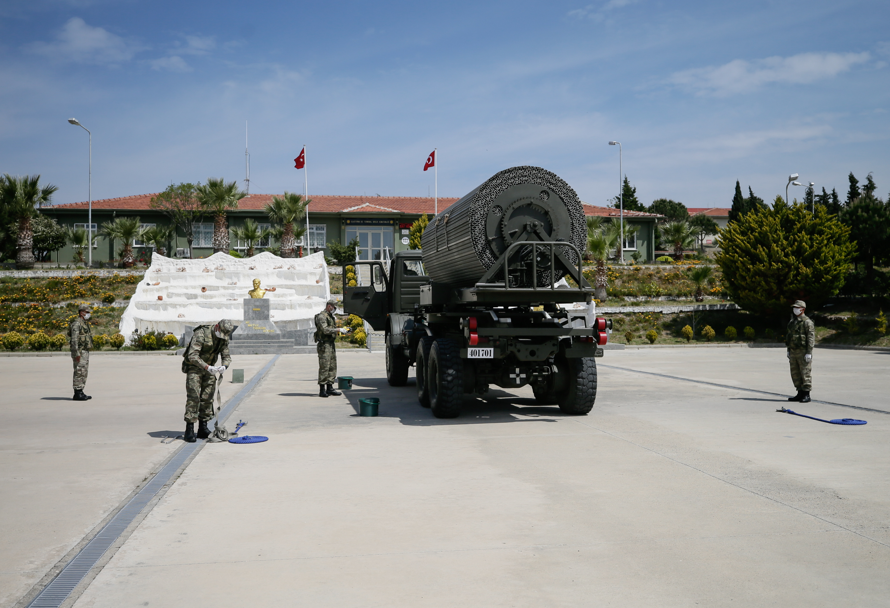 Ege Ordusu Komutanlığının İzmir'in Foça ilçesinde bulunan Ulaştırma ve Terminal Birlik Komutanlığında, yeni tip koronavirüse (Kovid-19) karşı alınan tedbirler titizlikle uygulanıyor.