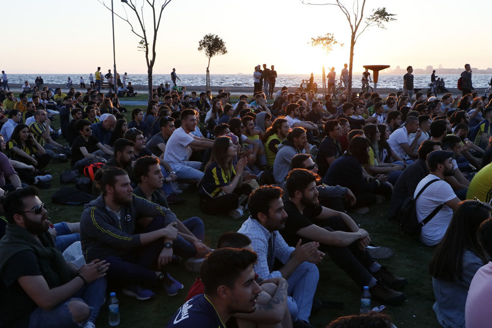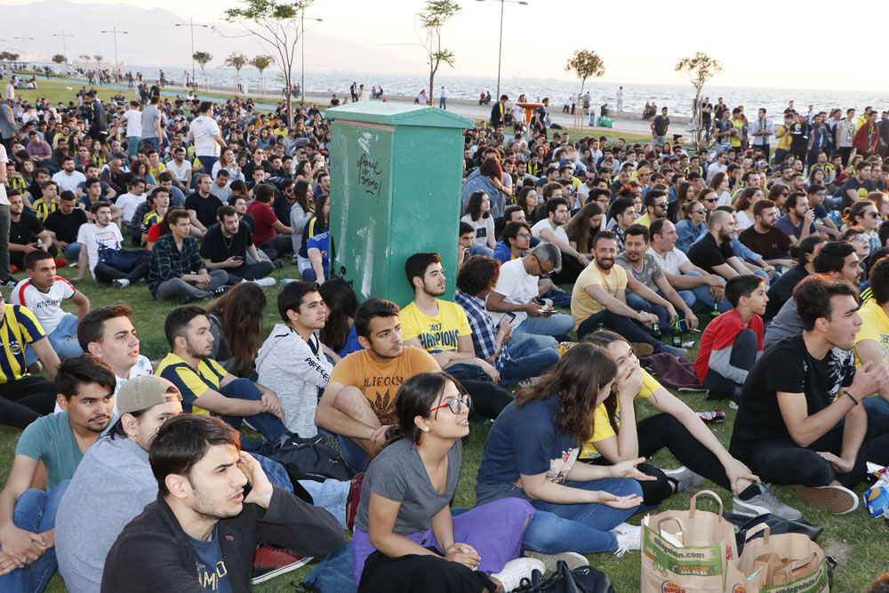 İzmirli sporseverler iki Türk takımının İspanya'daki mücadelesini kordonda oluşturulan dev ekranda izledi