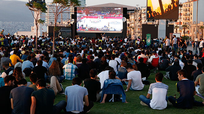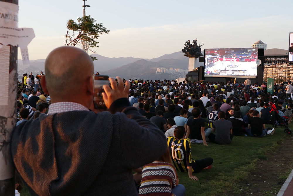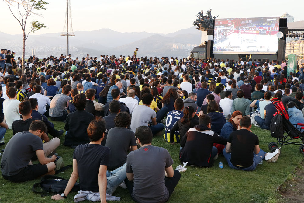 İzmir'de sporseverler Basketbol THY Avrupa Ligi Dörtlü Finali'ndeki Fenerbahçe Beko-Anadolu Efes karşılaşmasını kordonda izledi.