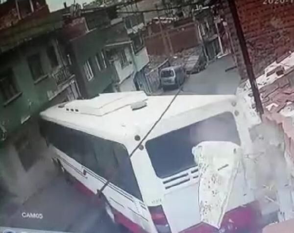 Otobüsün çarptığı iki evde hasar oluştu.