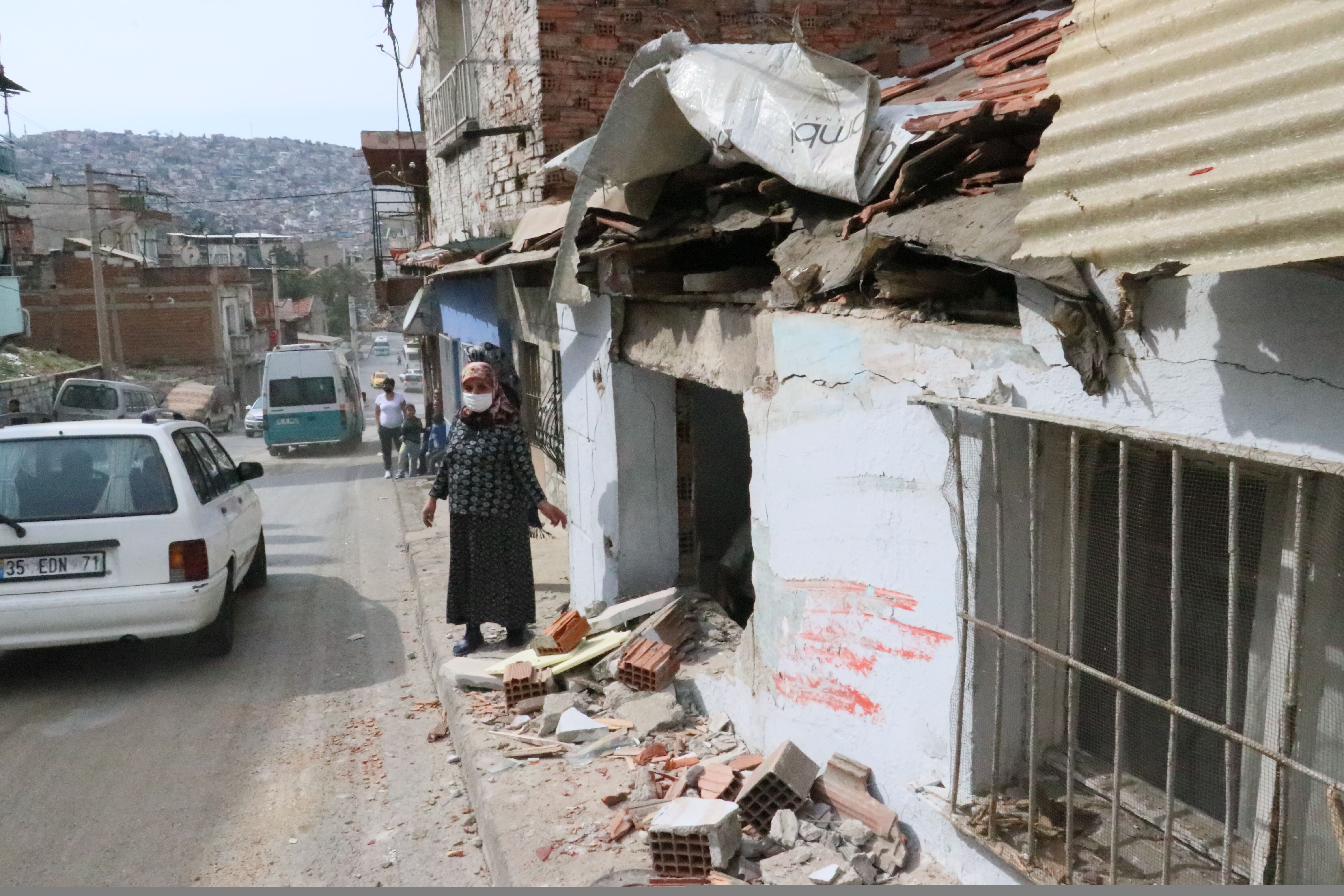 Evi hasar gören mahalle sakinlerinden 51 yaşındaki Emine Kızılçınar, kaza sırasında evinde uyuduğunu belirterek, "Sanki bomba patladı. Kalkıp kendimi hemen dışarı attım. Sonra baktığımda evin bir kısmı yıkılmıştı." dedi. (AA)