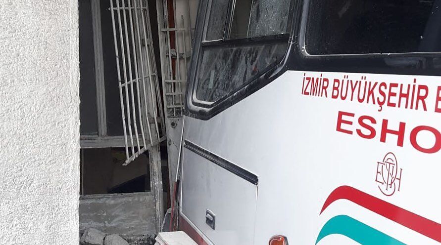 İzmir'in Konak ilçesinde kontrolden çıkarak iki eve çarpan belediye otobüsündeki yolculardan 6'sı hafif yaralandı.
