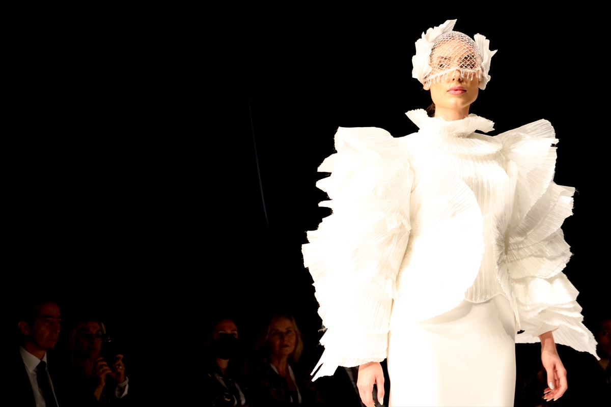Son 15'e kalan genç tasarımcıların eserlerinin sergilendiği defilede Sercan İzci birinciliği elde etti.