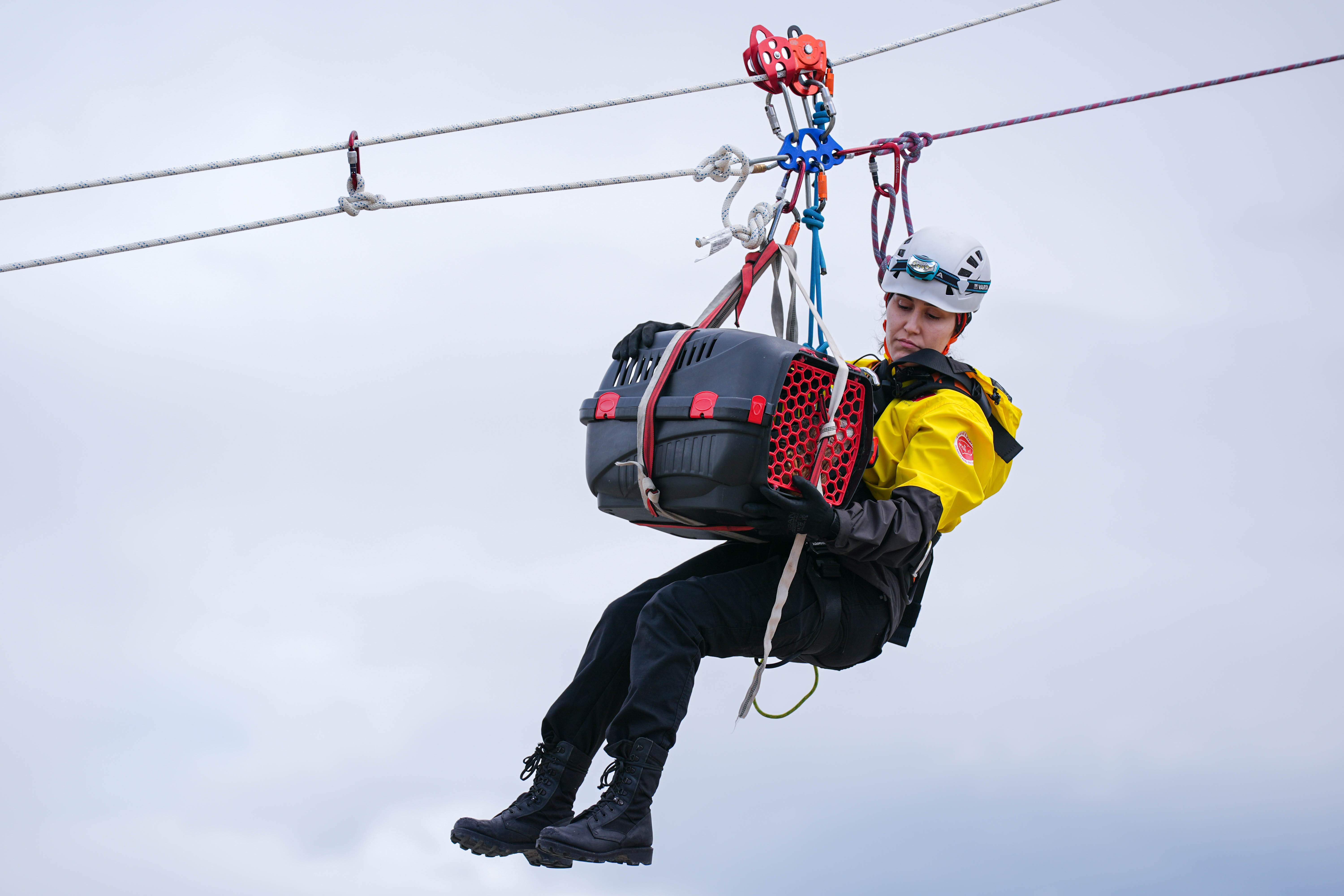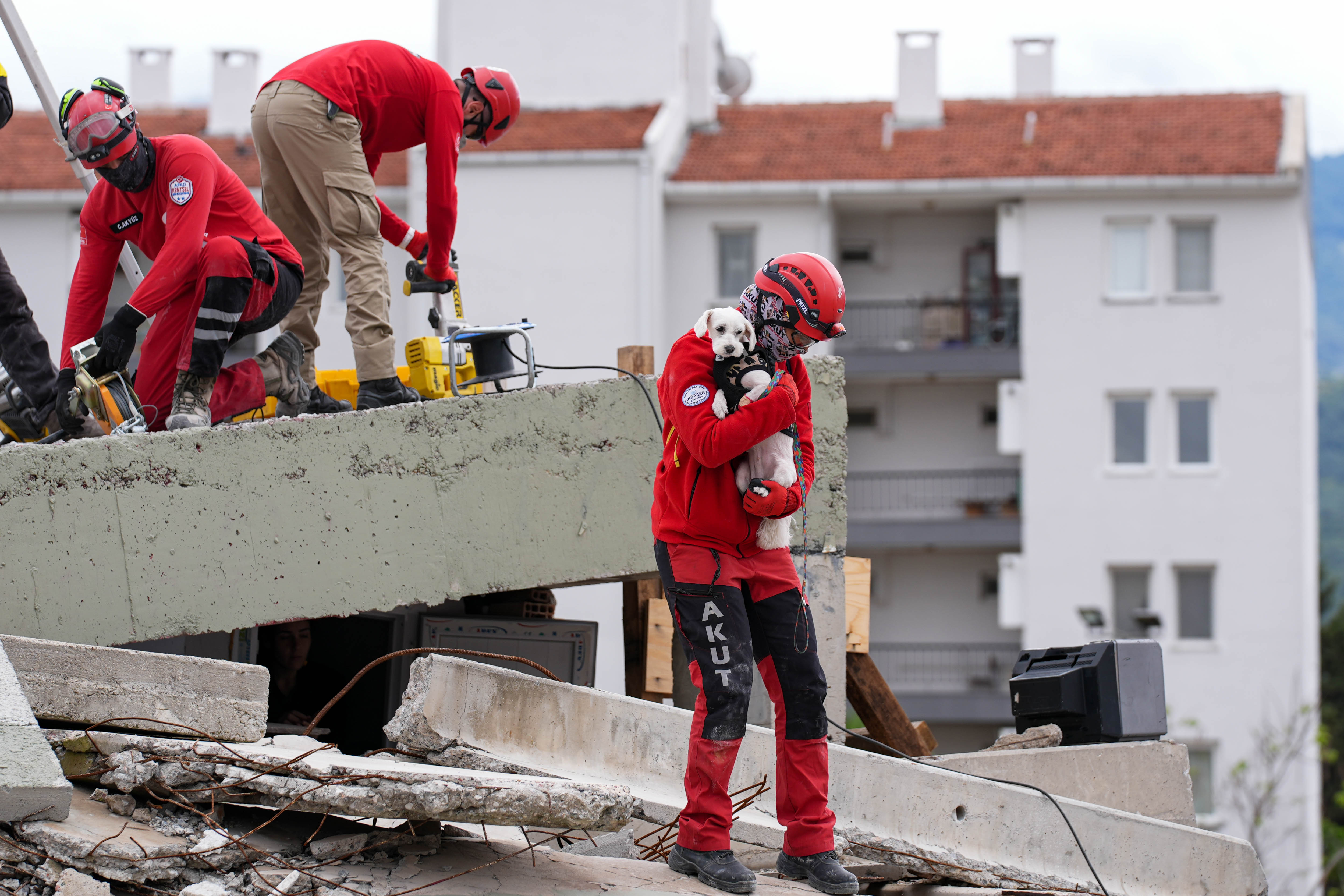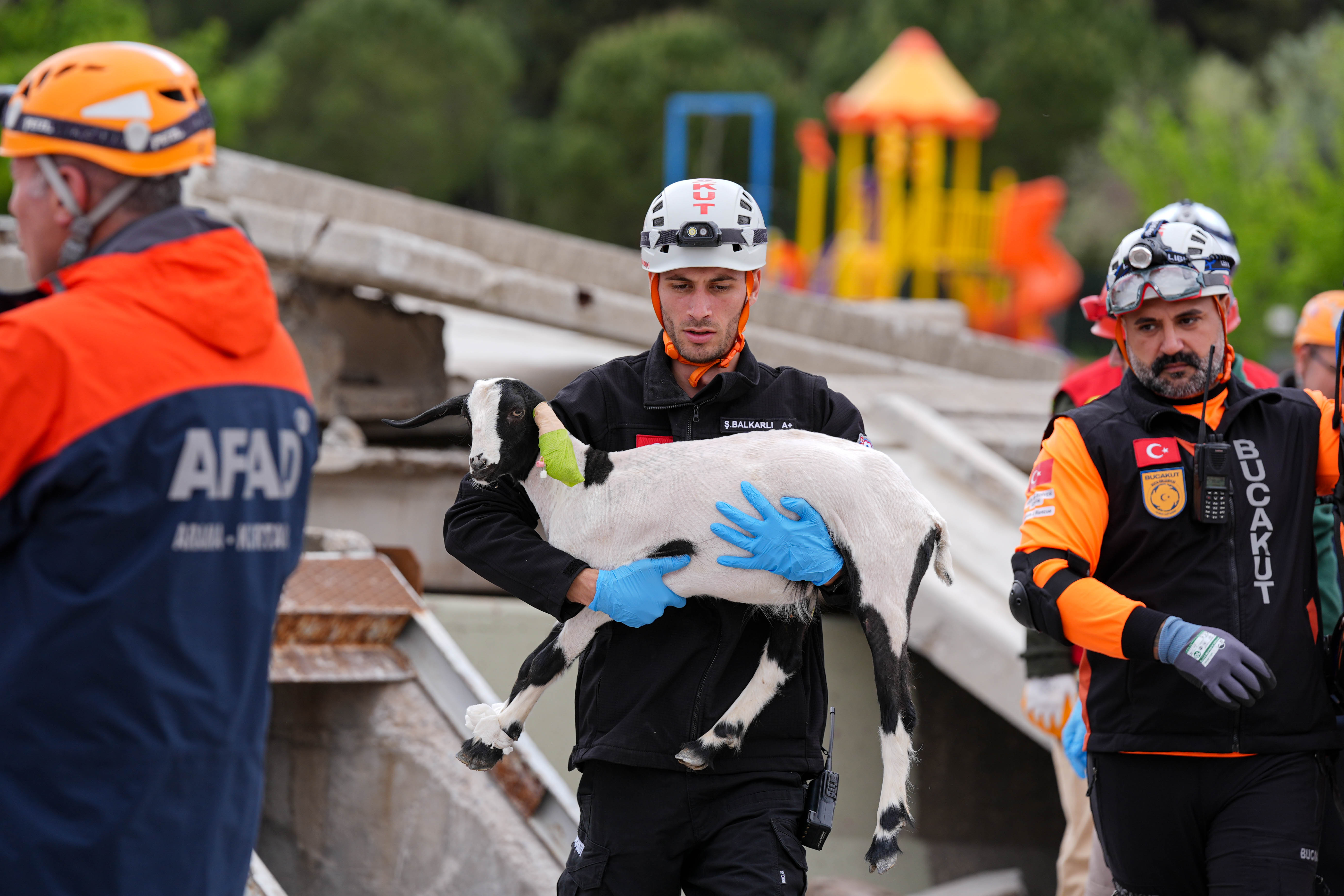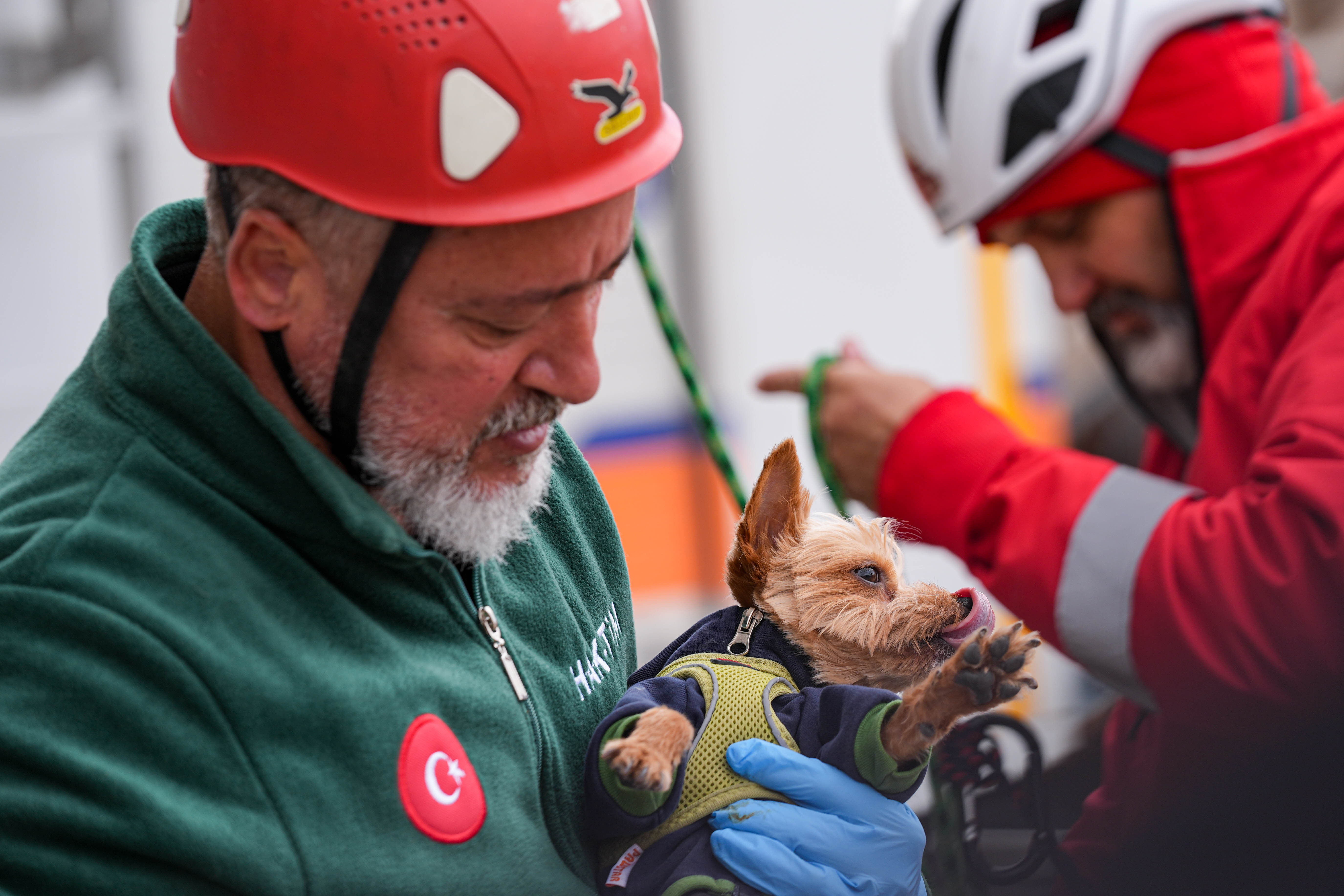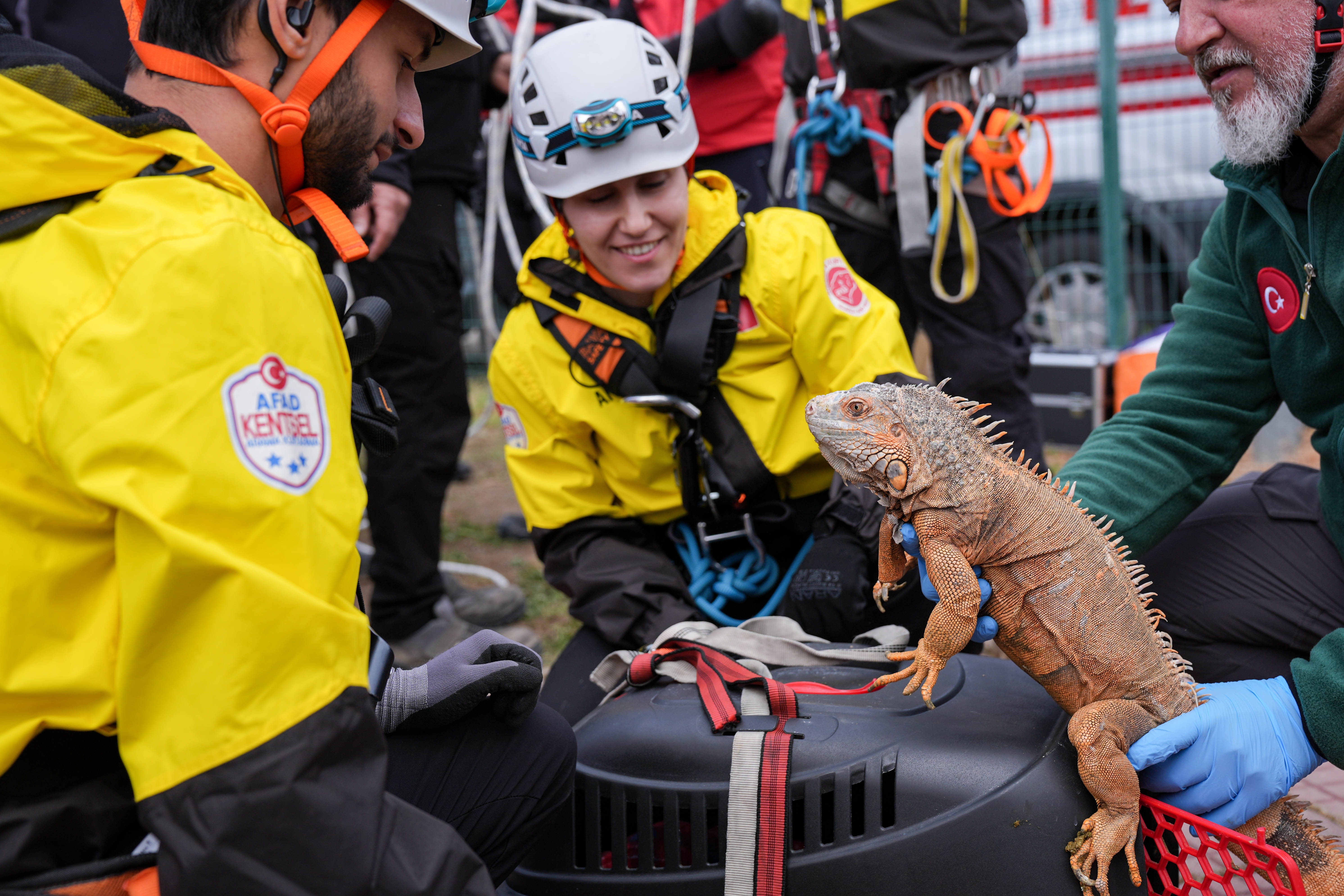 Ses dinleme ve arama kurtarma köpeği yardımıyla hayvanların yeri tespit edildi. Beton bloklar altındaki kedi, köpek, iguana, keçi ve koyun, yaşam koridoru açılarak kurtarıldı. Kurtarılan hayvanlar, enkazın üzerinden halatlarla aşağı indirildi.