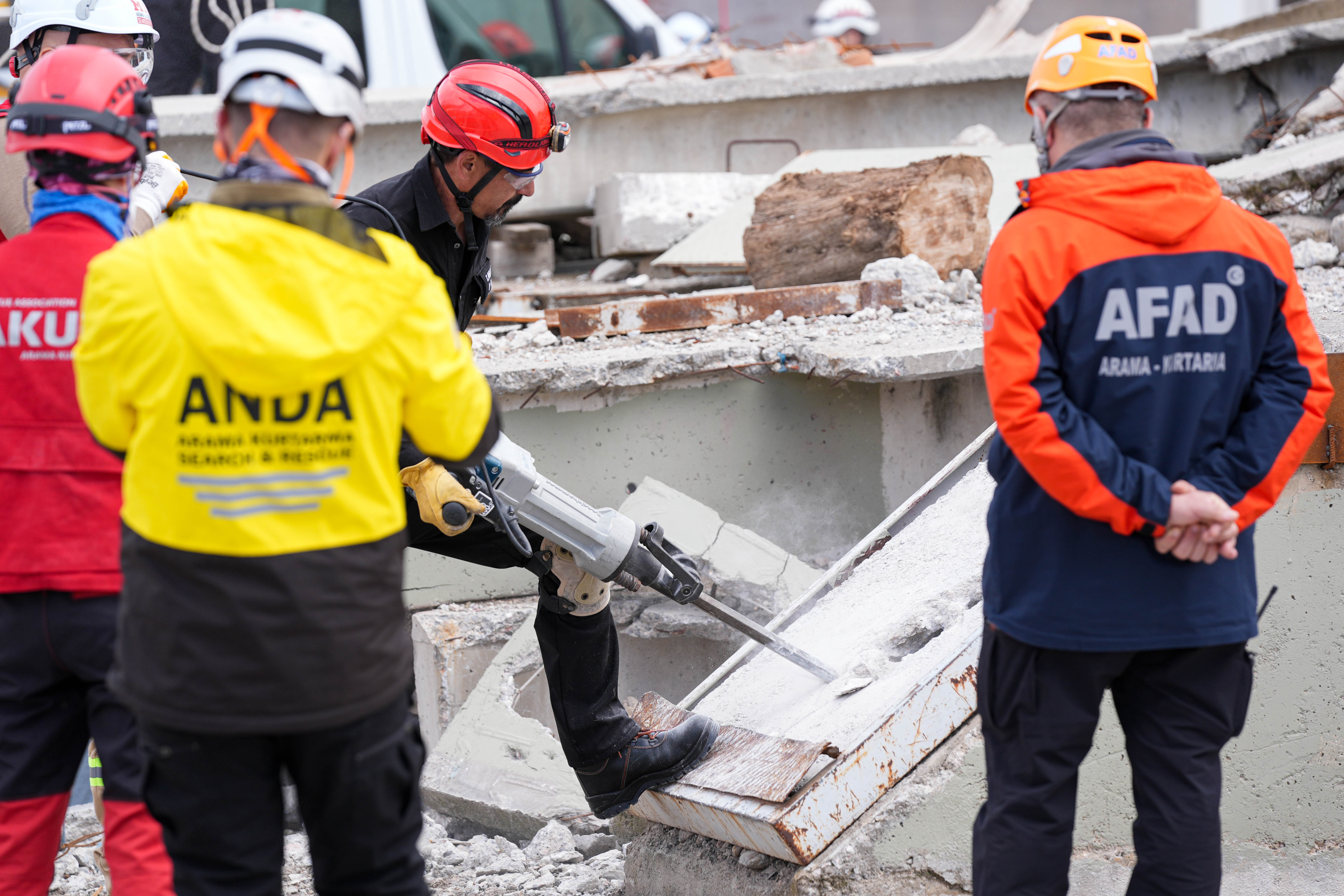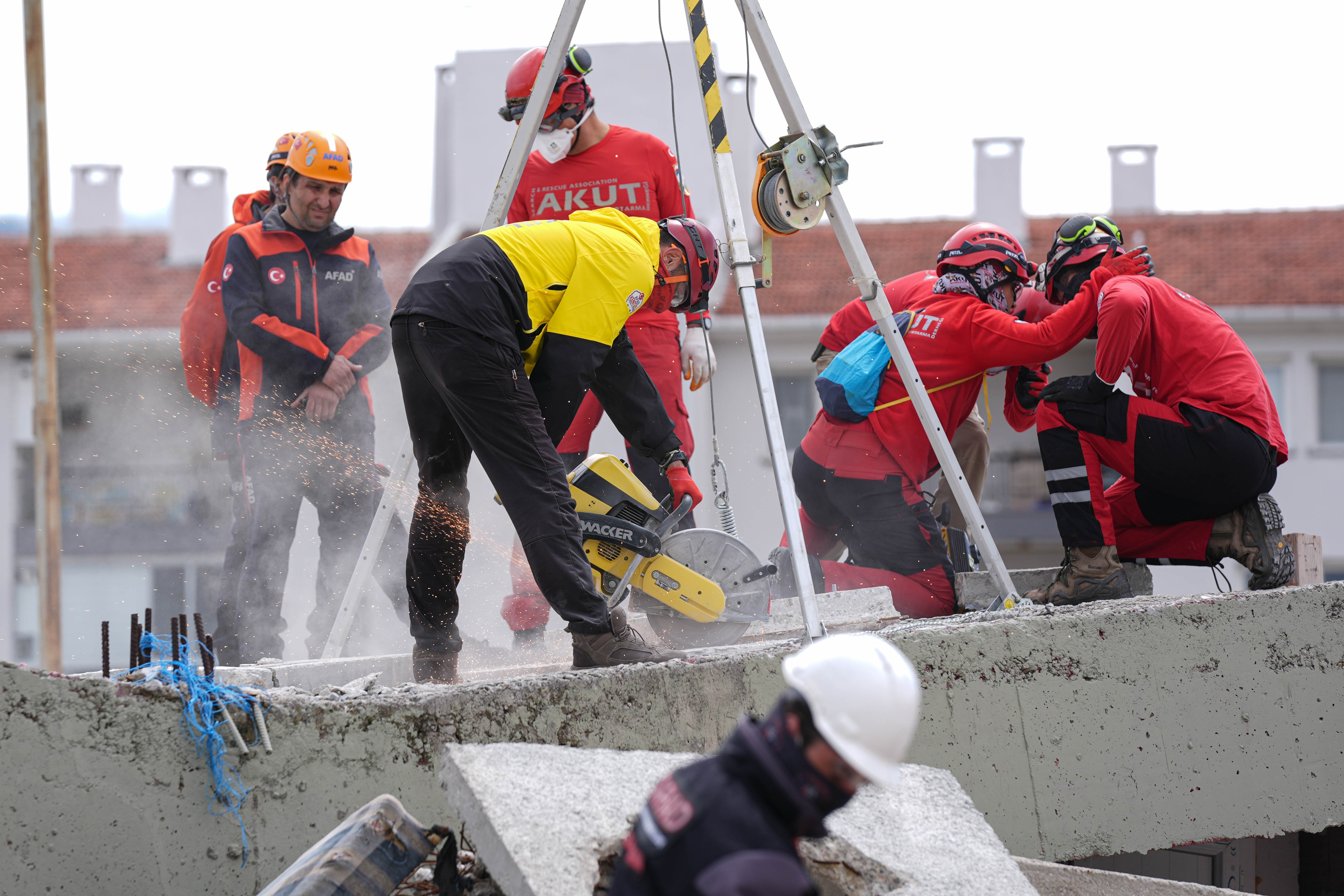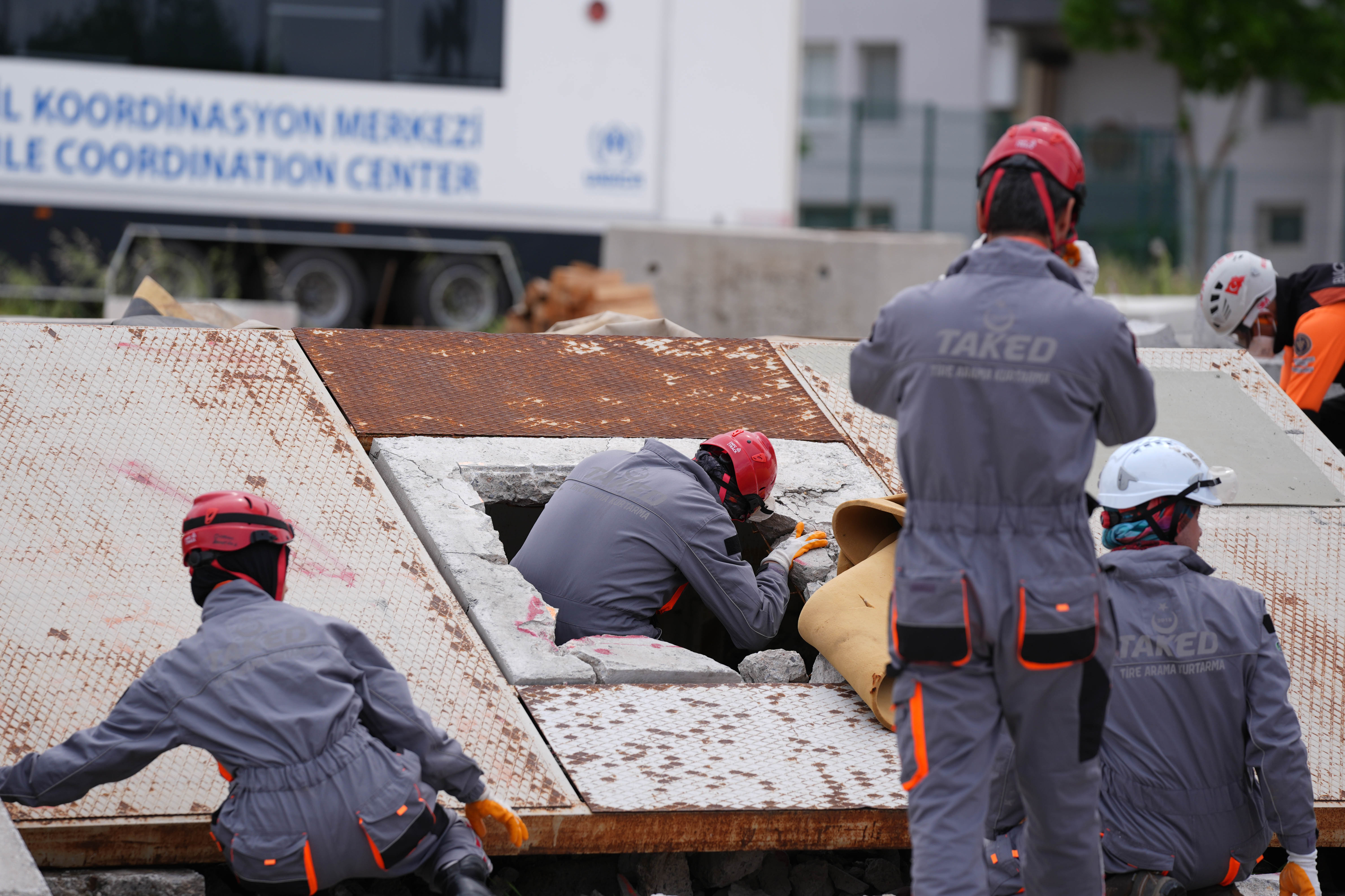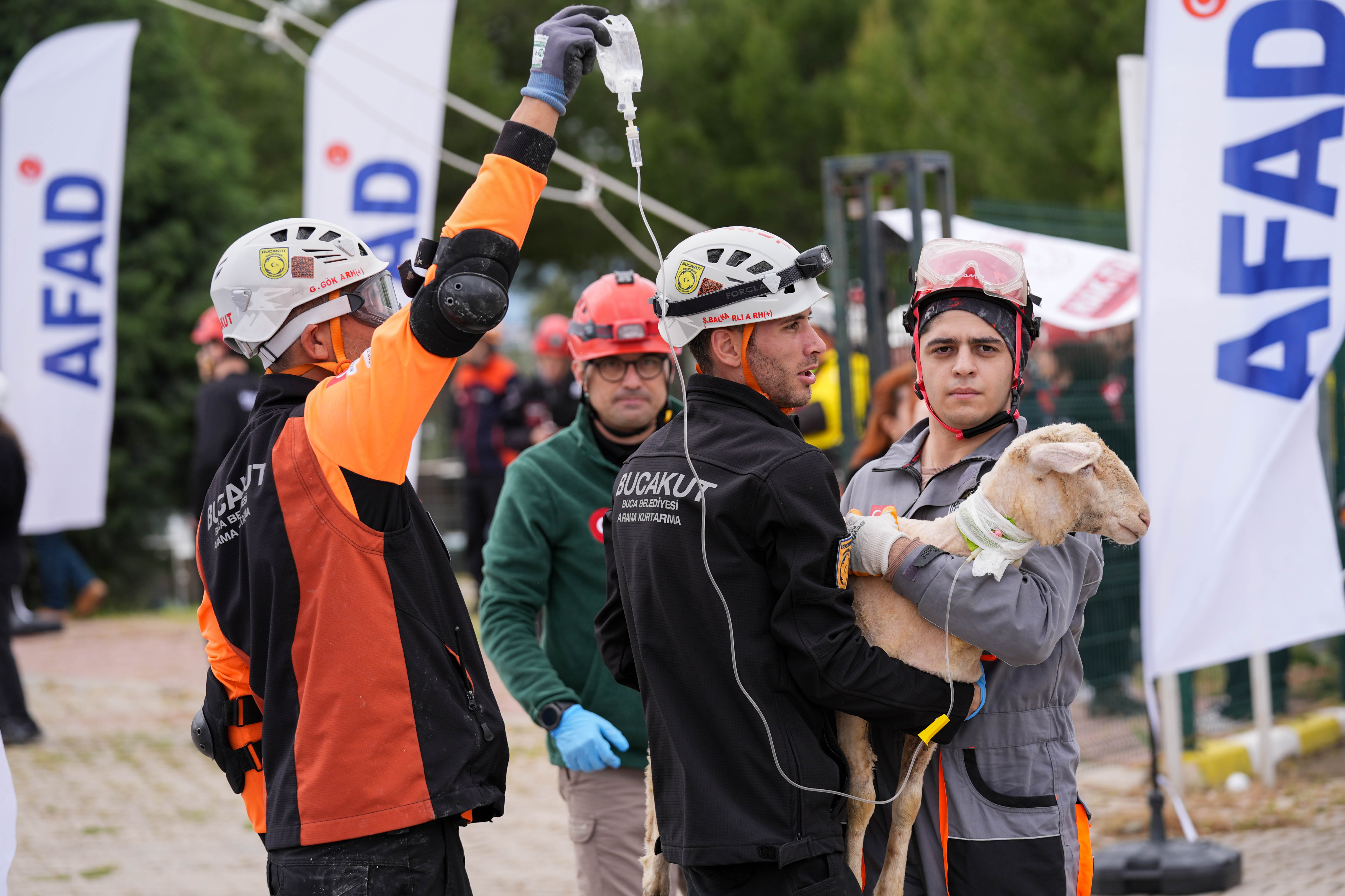 Arama kurtarma timlerindeki yaklaşık 90 kişi, senaryo gereği, Tire ilçesindeki depremde bazı hayvanların enkazda kaldığı ihbarı üzerine hızla bölgeye hareket etti.