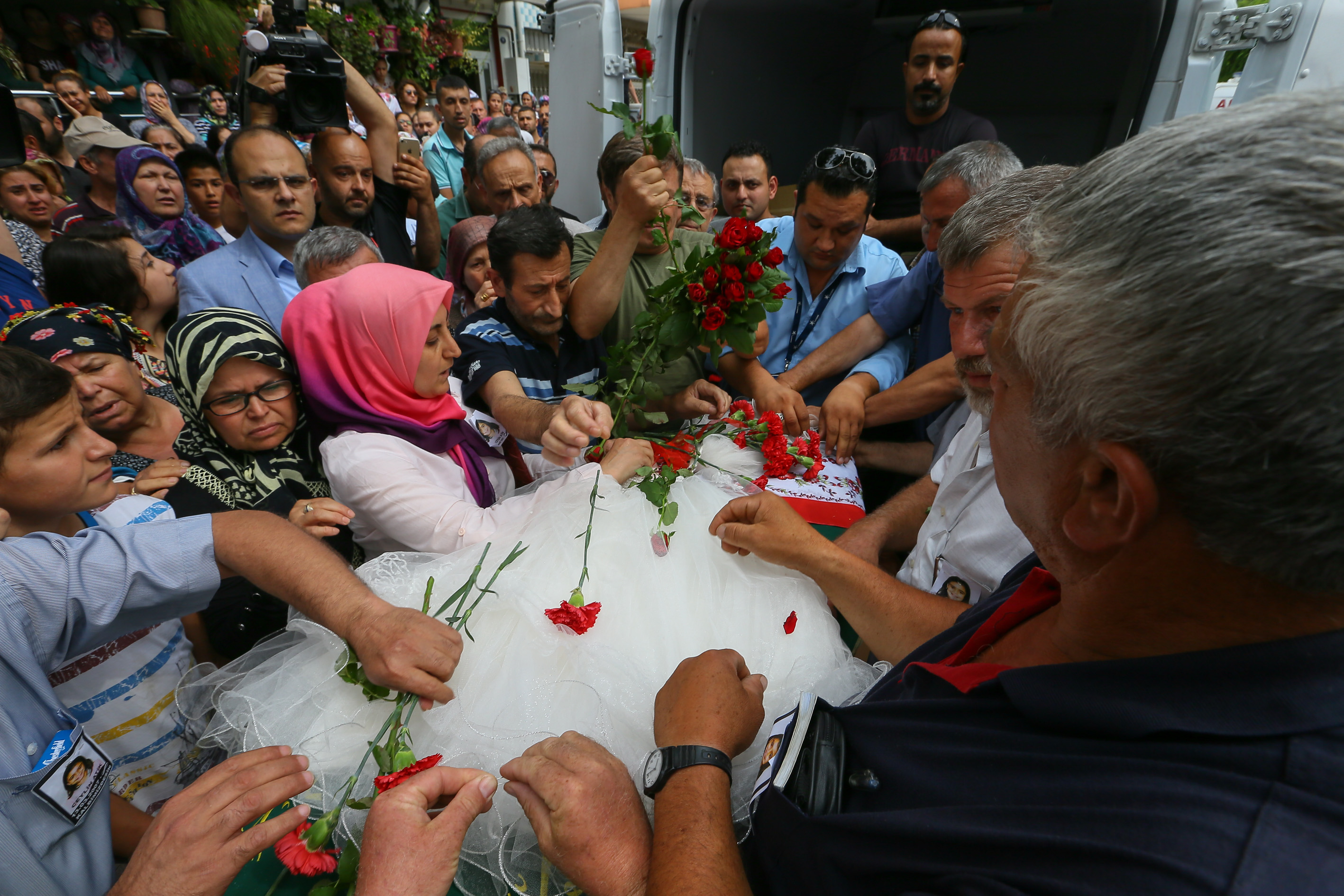 İzmir’in Ödemiş ilçesinde parkta oynamaya giden ve önceki gün cesedi bulunan 10 yaşındaki Ceylin Atik için Sanayi Cami’nde cenaze töreni düzenlendi. Yakınları cenaze töreninde üzerini gelinlik örterek kırmızı gülle süsledikleri genç kızın tabutunu taşıdı.