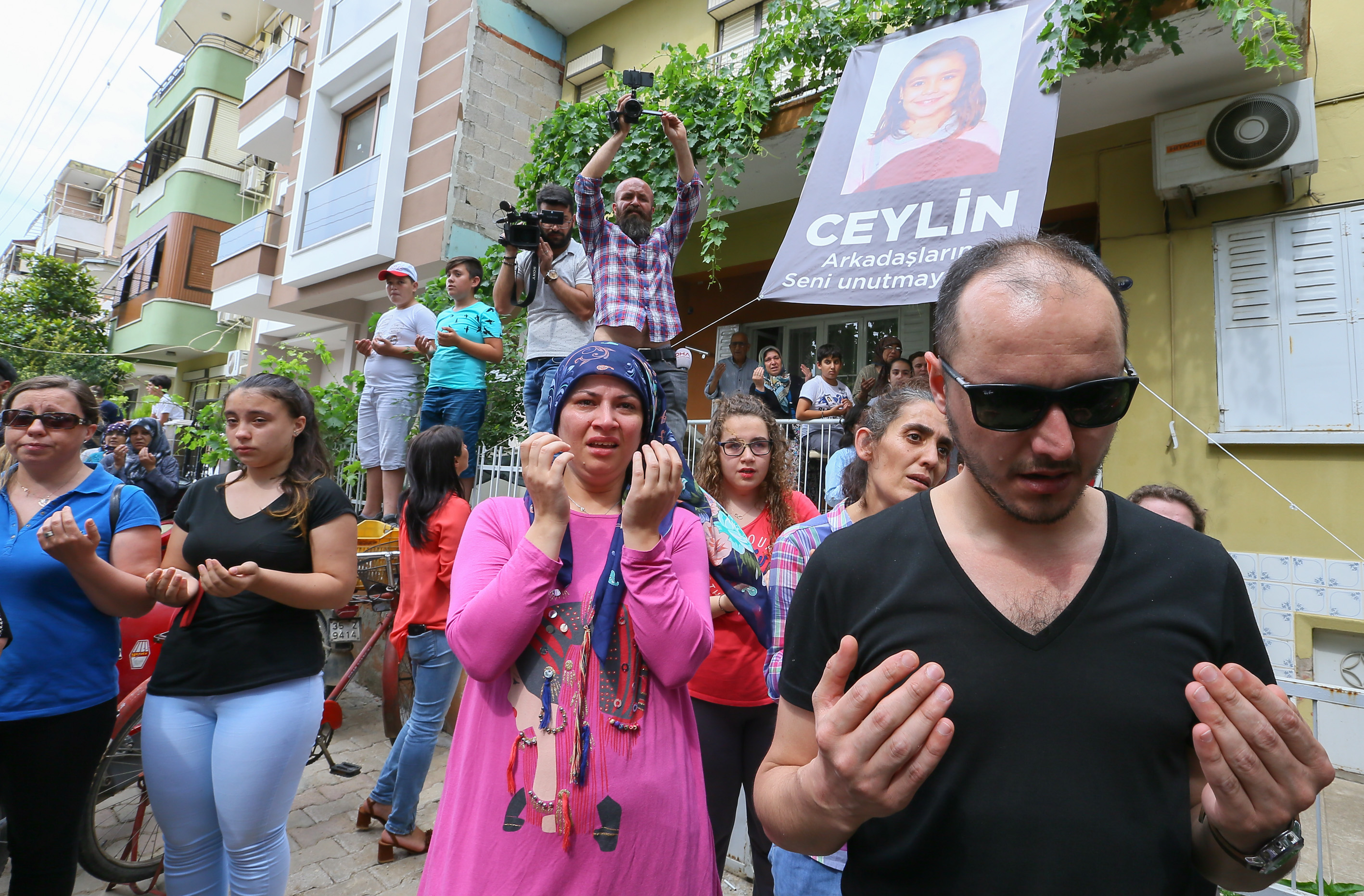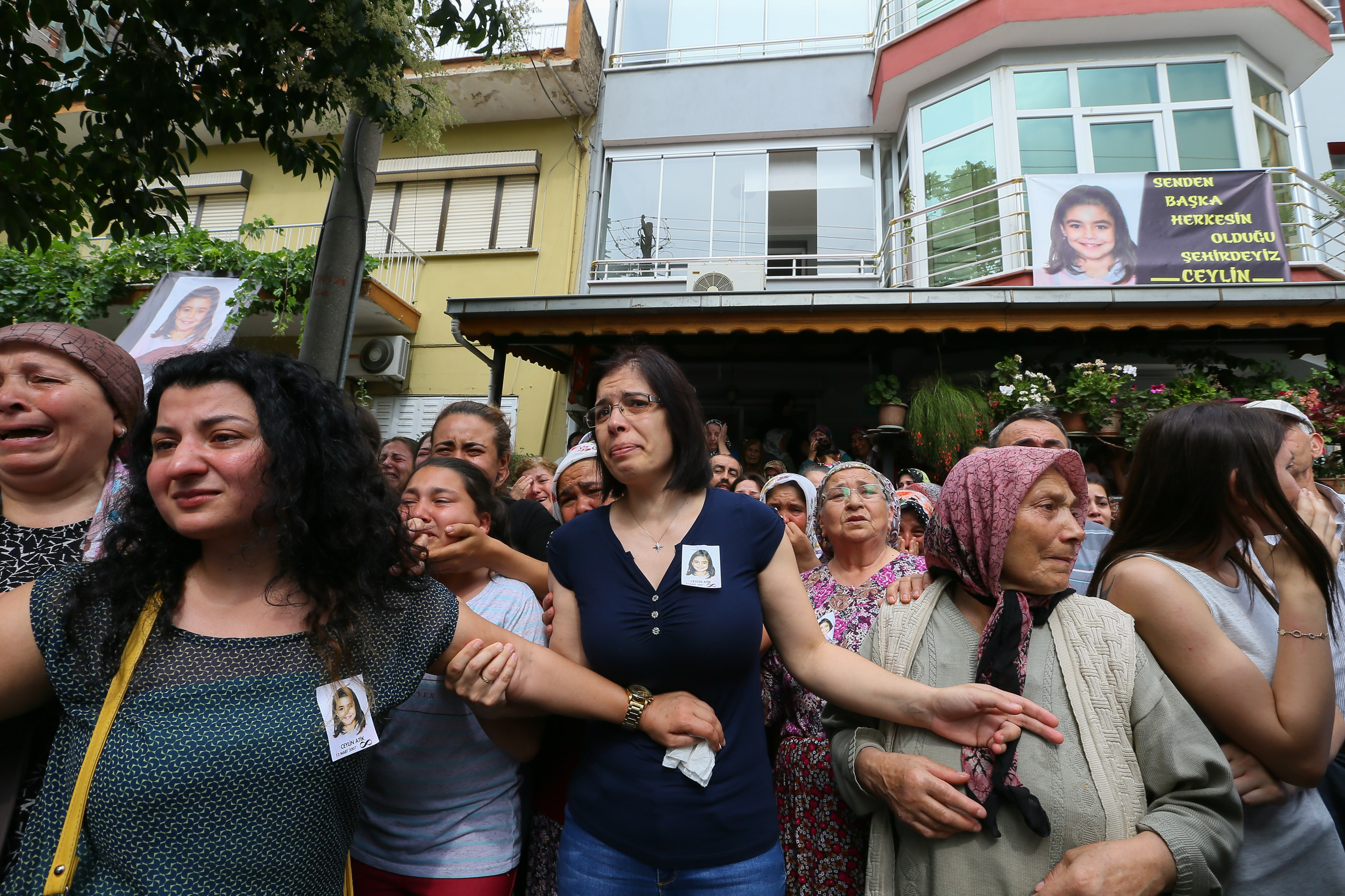 İzmir'in Ödemiş ilçesinde evinin karşısındaki bir apartmanda cesedi bulunan 10 yaşındaki Ceylin Atik'in cenazesi evine getirilerek helallik alındı. Ceylin'in komşuları evlerinin balkonuna genç kızın fotoğrafını ve "Ceylin arkadaşların seni unutmayacak" yazılı pankart astı.