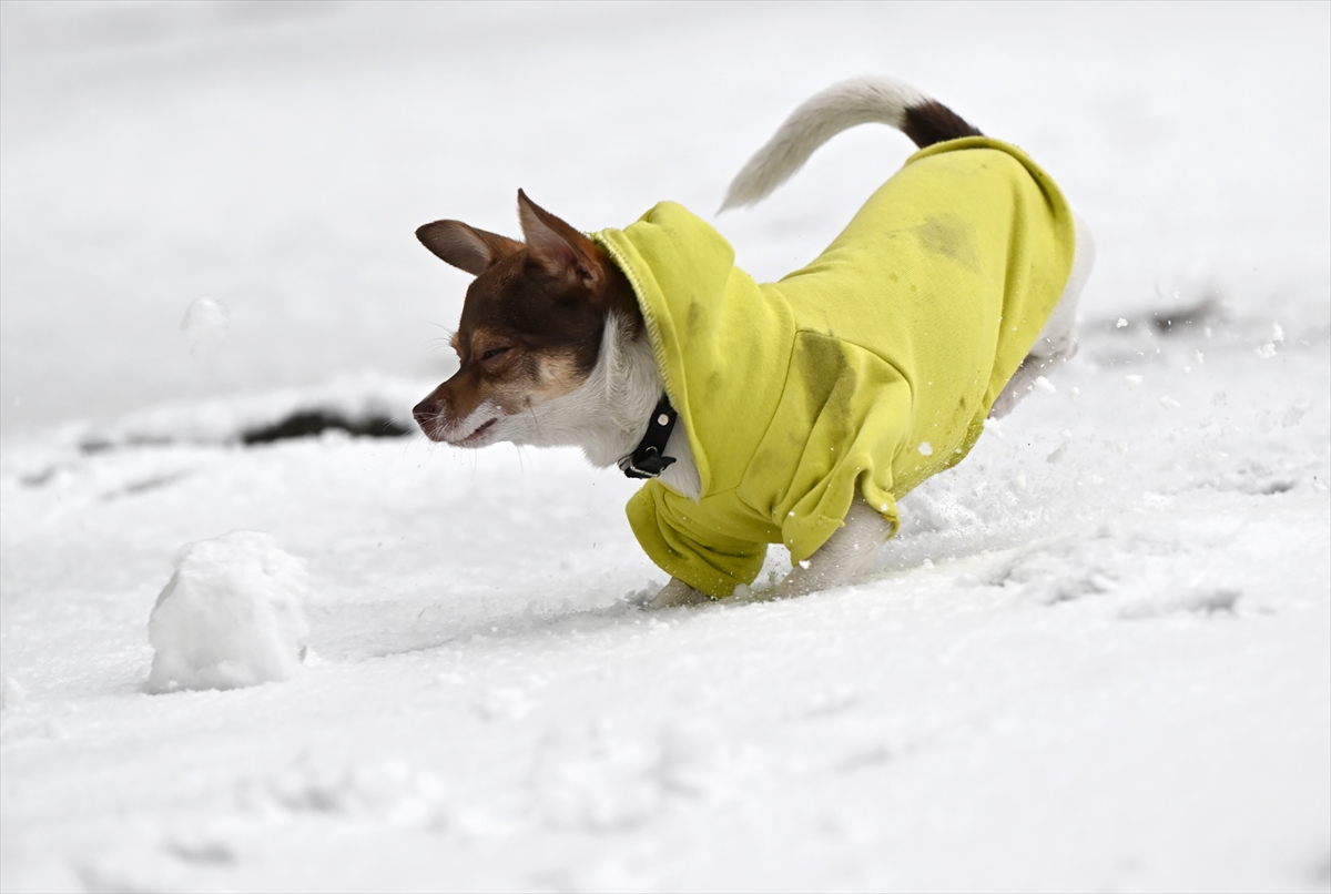 Kar yağışını fırsat bilen aileler çocukları ile birlikte tabiat parkına gelerek eğlendi.
