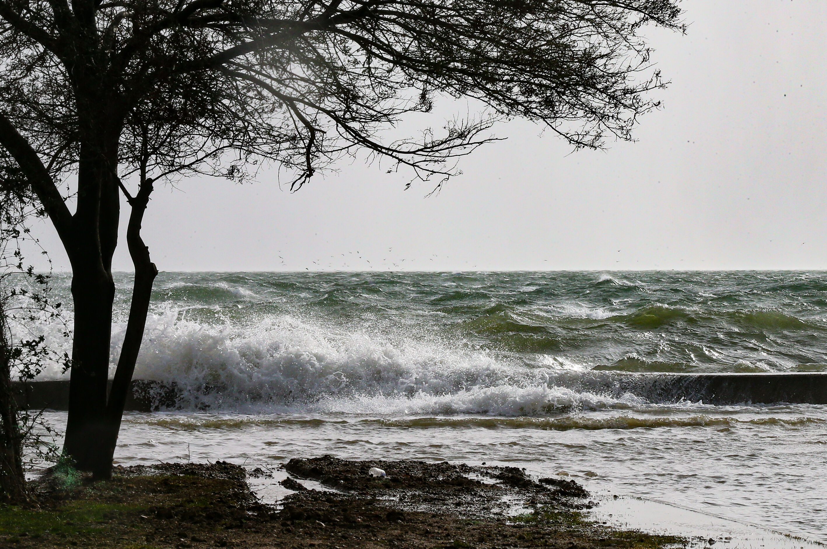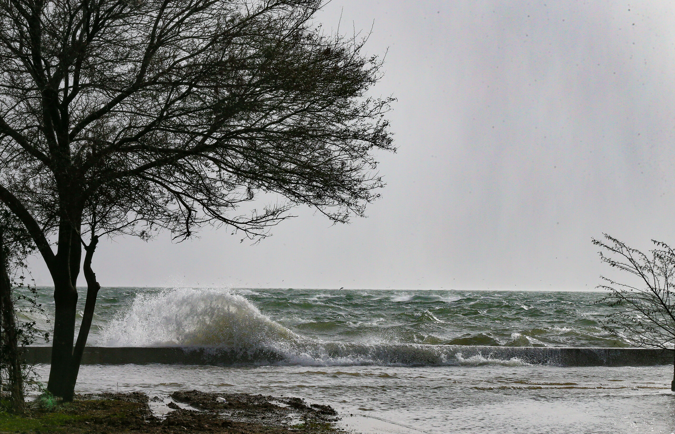Kentte yağmur öğleden sonra etkisini artırırken, şiddetli lodos nedeniyle Körfez'de büyük dalgalar oluştu.