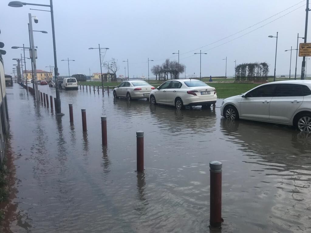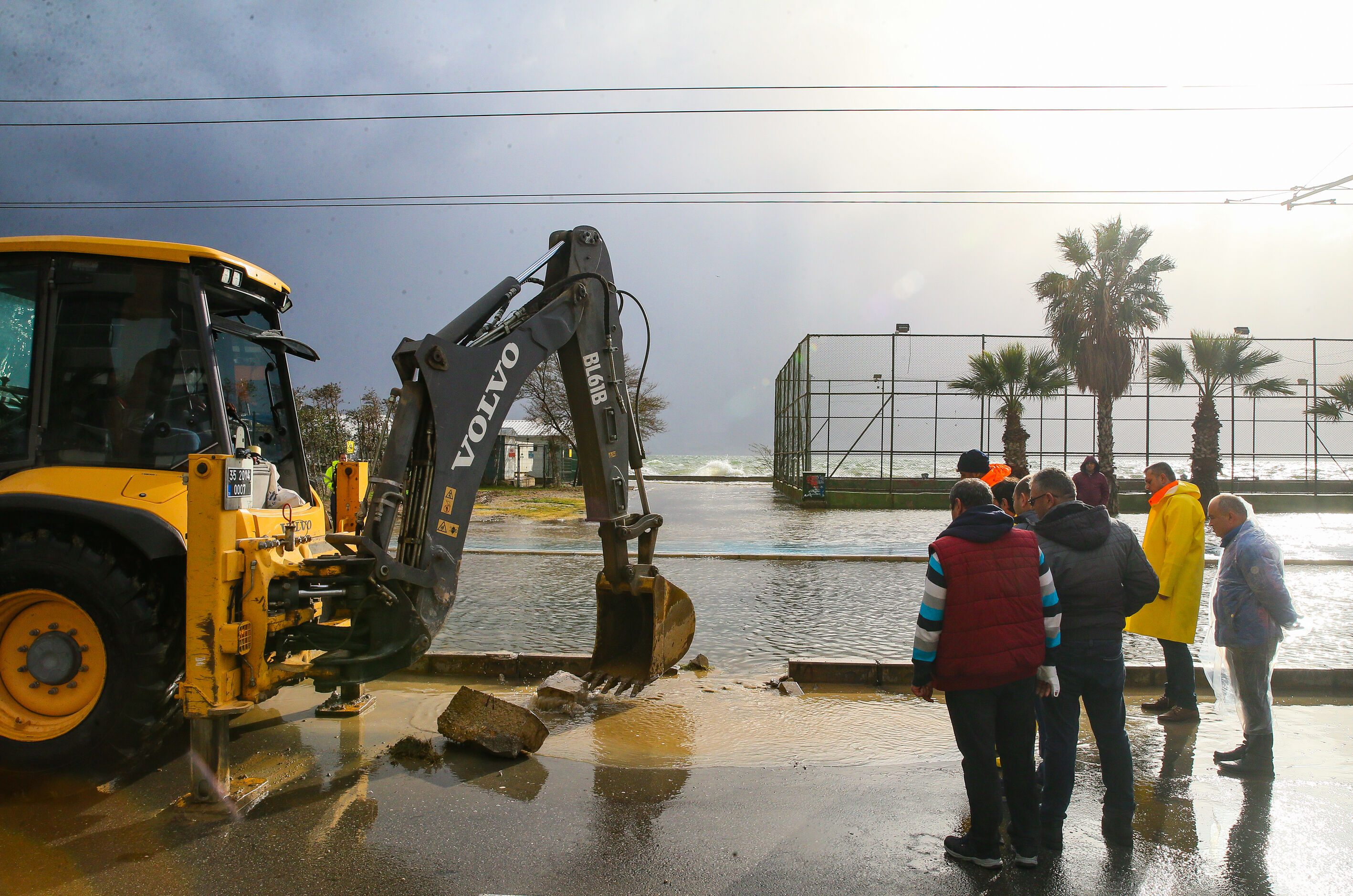 Karşıyaka'da adeta karayla deniz birleşti. Yaya, bisiklet ve tramvay yolu su altında kaldı.