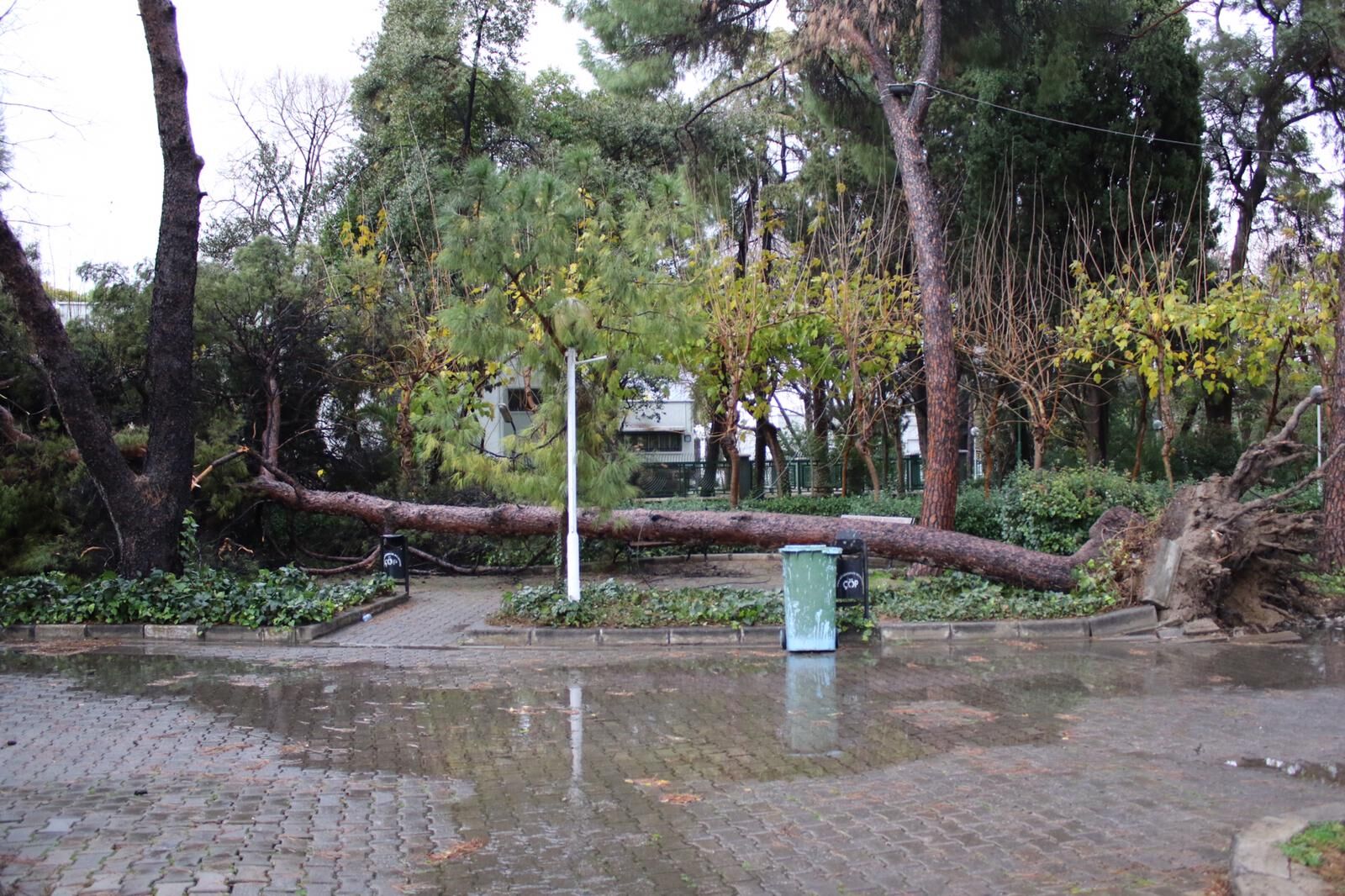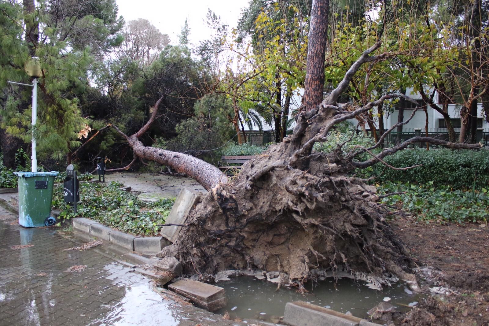 Kentin bazı noktalarında rüzgarın etkisiyle ağaçlar devrildi.