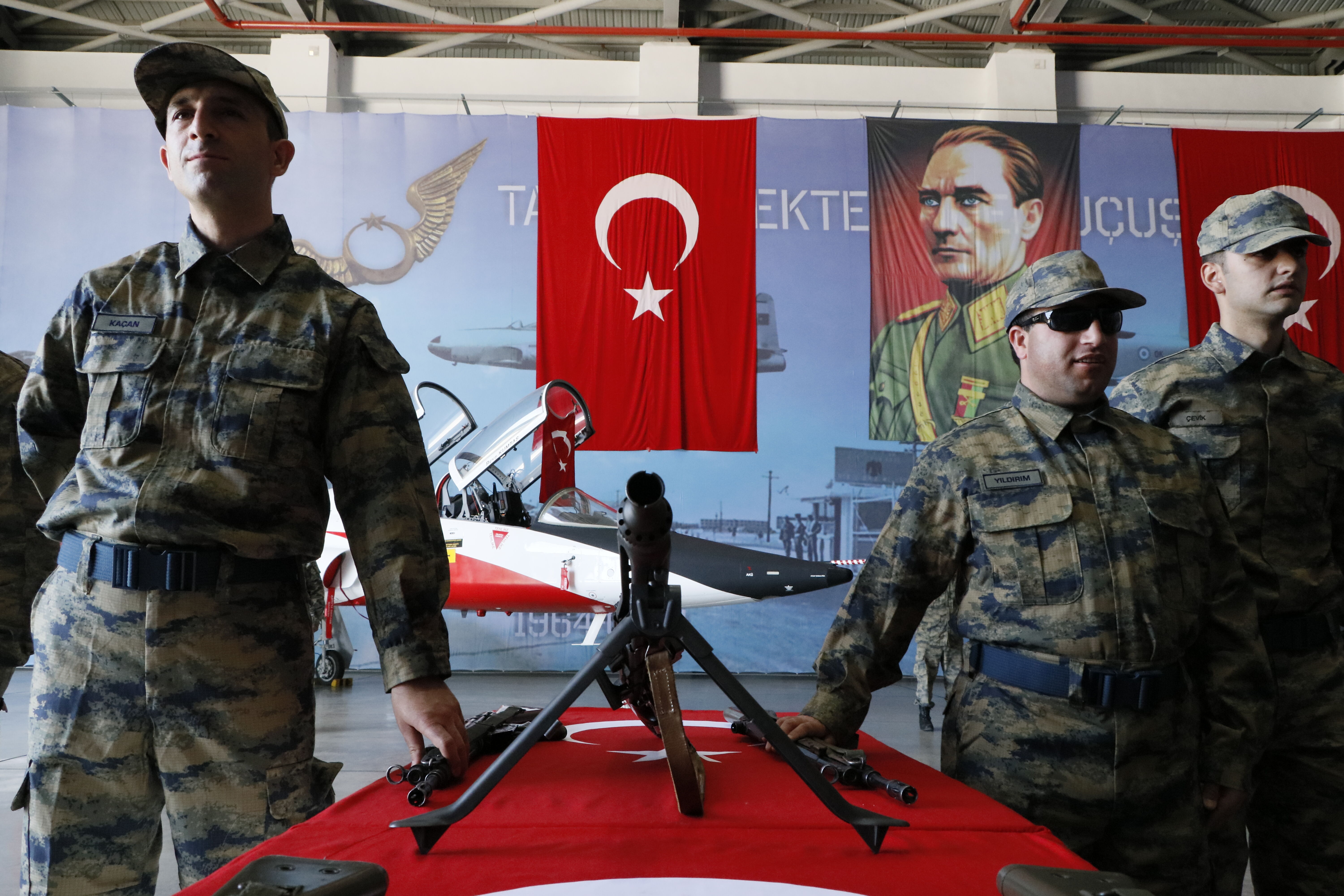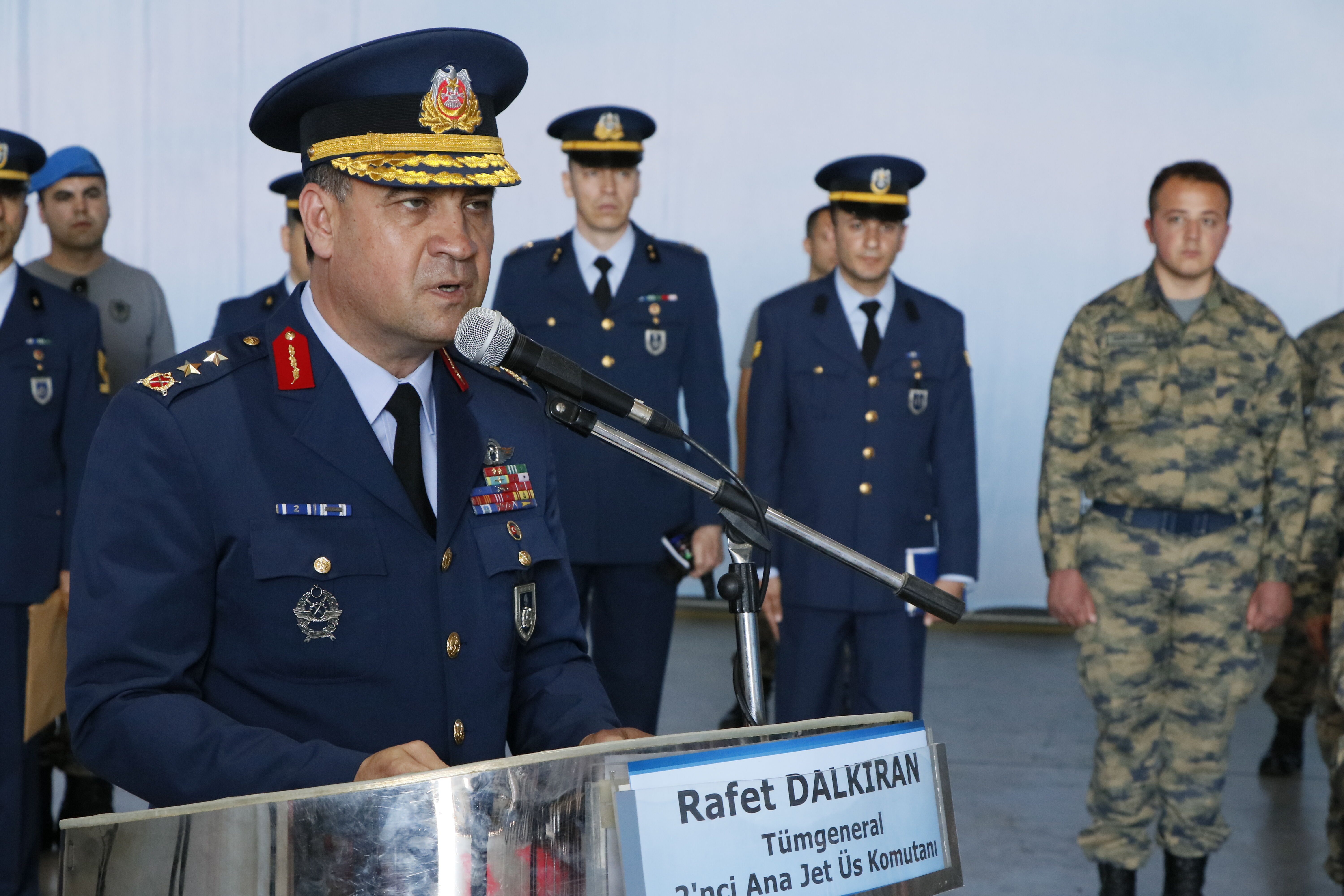 Buradaki törende konuşan 2. Ana Jet Üs Komutanı Hava Pilot Tümgeneral Rafet Dalkıran, "Mehmetçik bütün Türk ordusunun sembolüdür. Mehmetçik bir isim değil bir fikirdir, bir idealdir. Şu an huzurlarınızda bu kahraman Mehmetçiklerden 33'ünü görmektesiniz." diye konuştu.