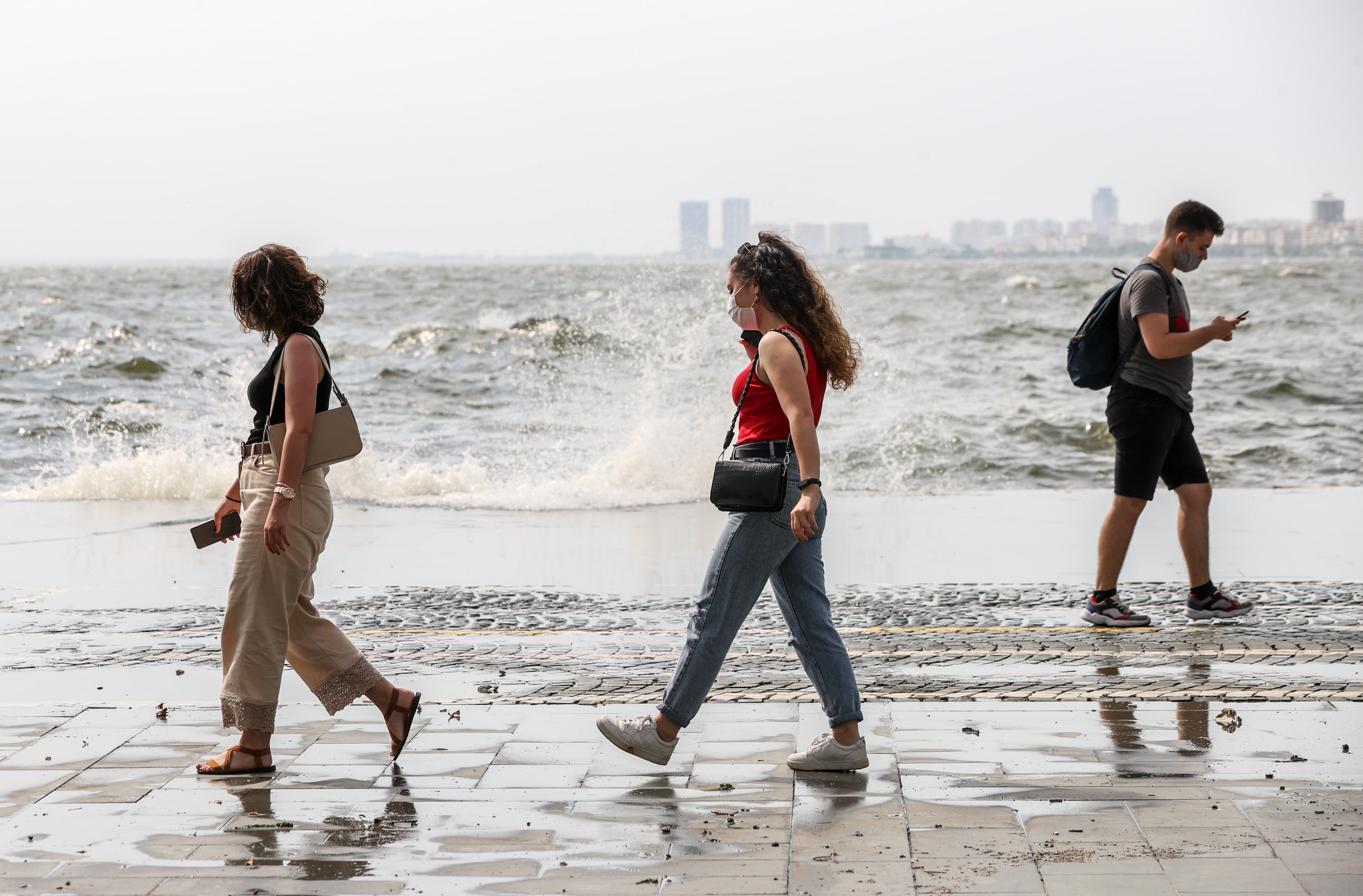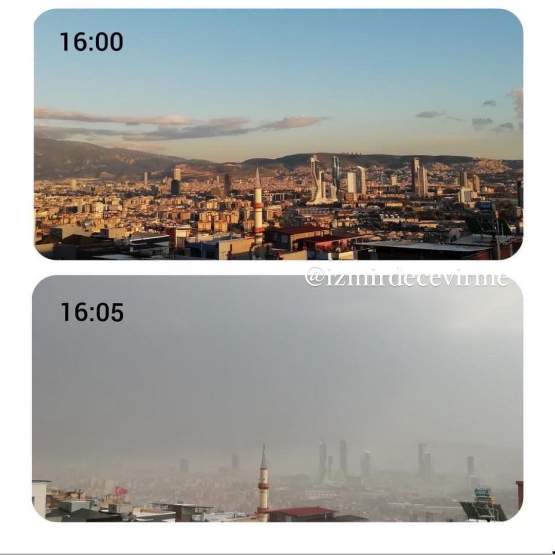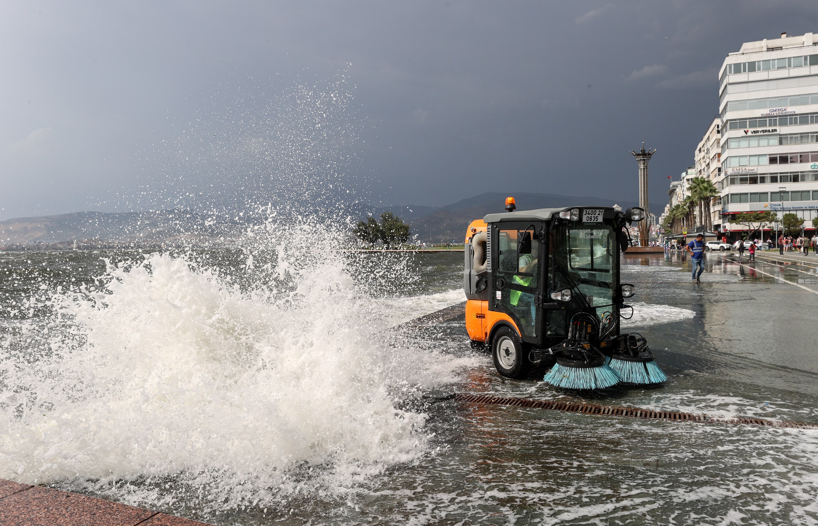 Sıcak havanın etkili olduğu İzmir'de saat 15.00 civarında kuzey ilçelerinde denizde başlayan fırtına, Karaburun, Urla ve Foça ilçelerinde hayatı olumsuz etkiledi. Aniden çıkan fırtına nedeniyle vatandaşlar zor anlar yaşadı. Bergama ilçesinde fırtınayla birlikte dolu yağışı da etkili oldu.