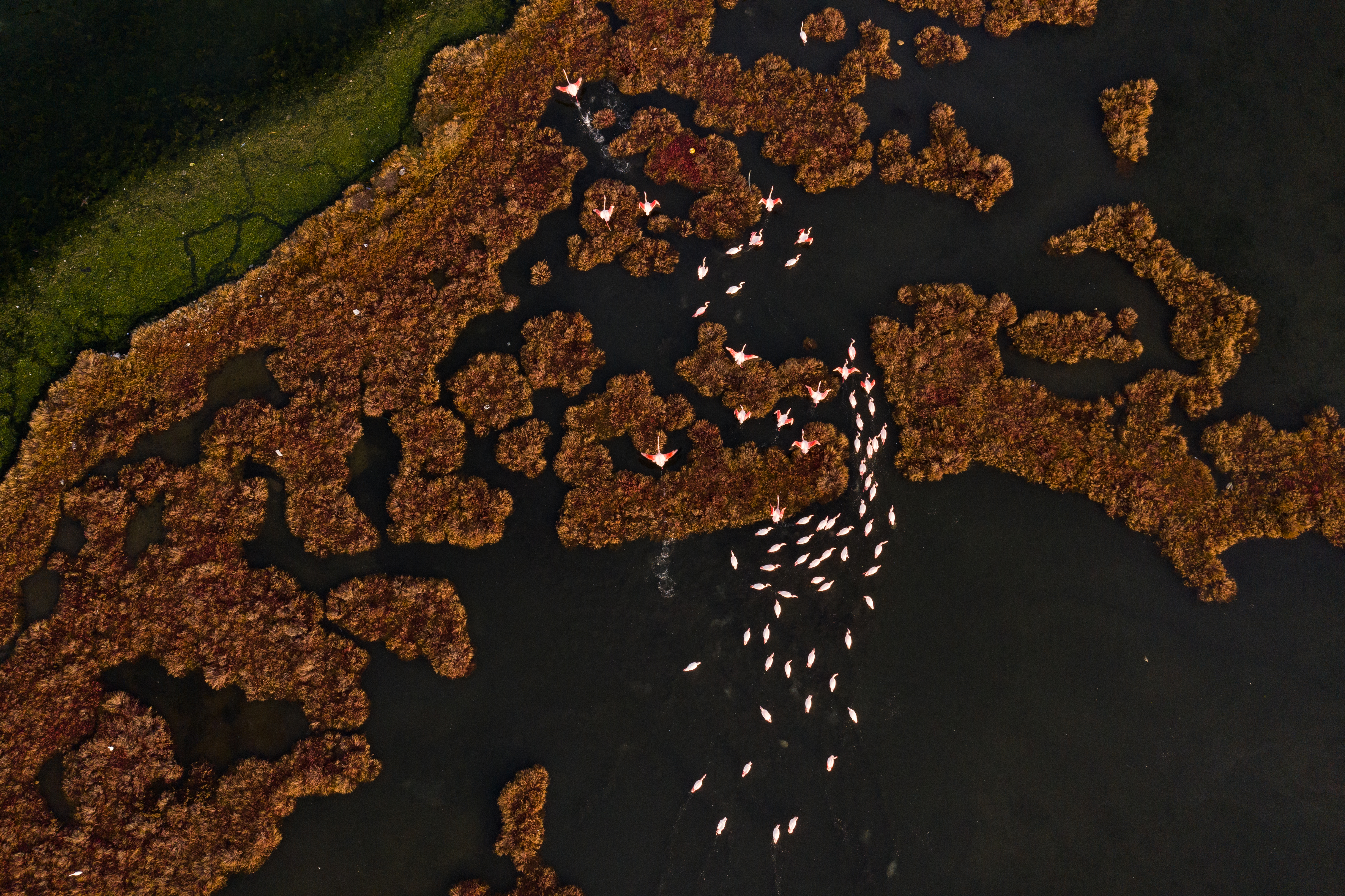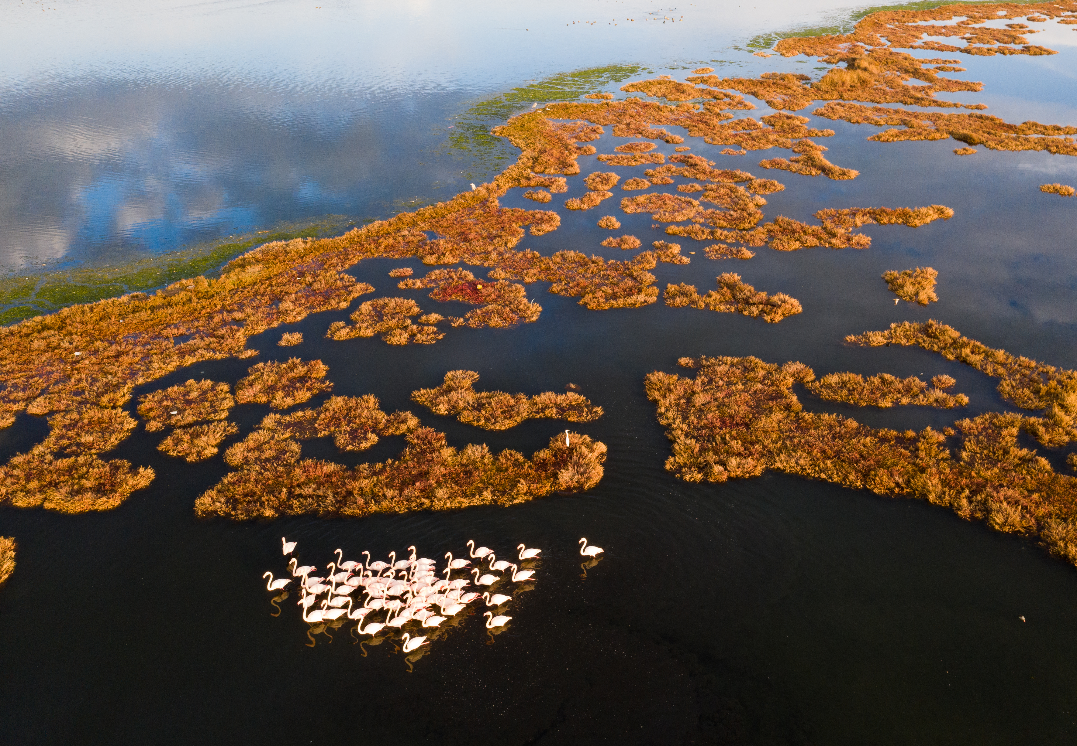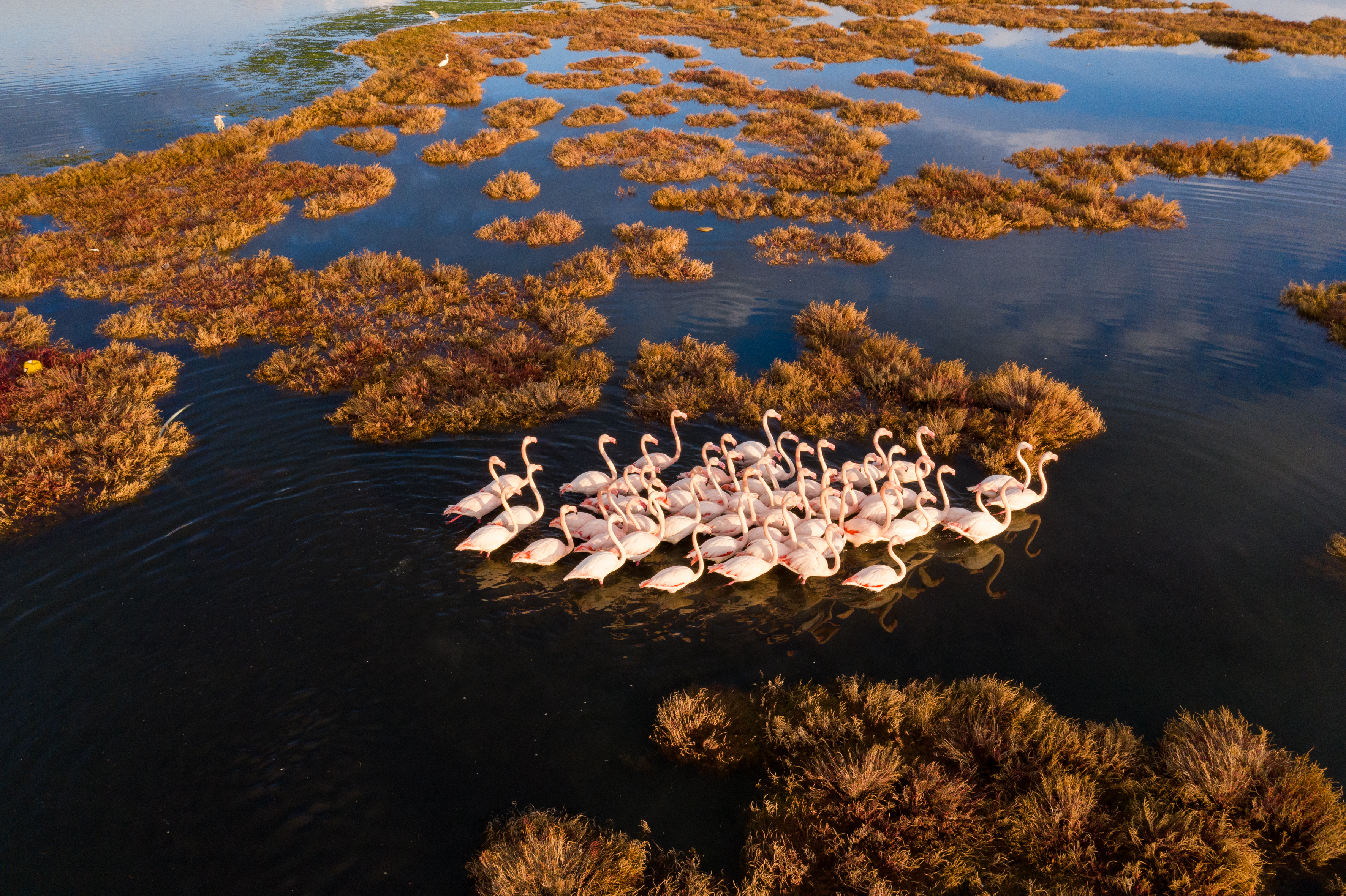 Rüzgarlara karşı korunaklı yapısı nedeniyle özellikle soğuk havalarda birçok kuş türüne ev sahipliği yapan lagünde, kalabalık gruplar halinde yaşayan flamingolar, güzel görüntü oluşturuyor.