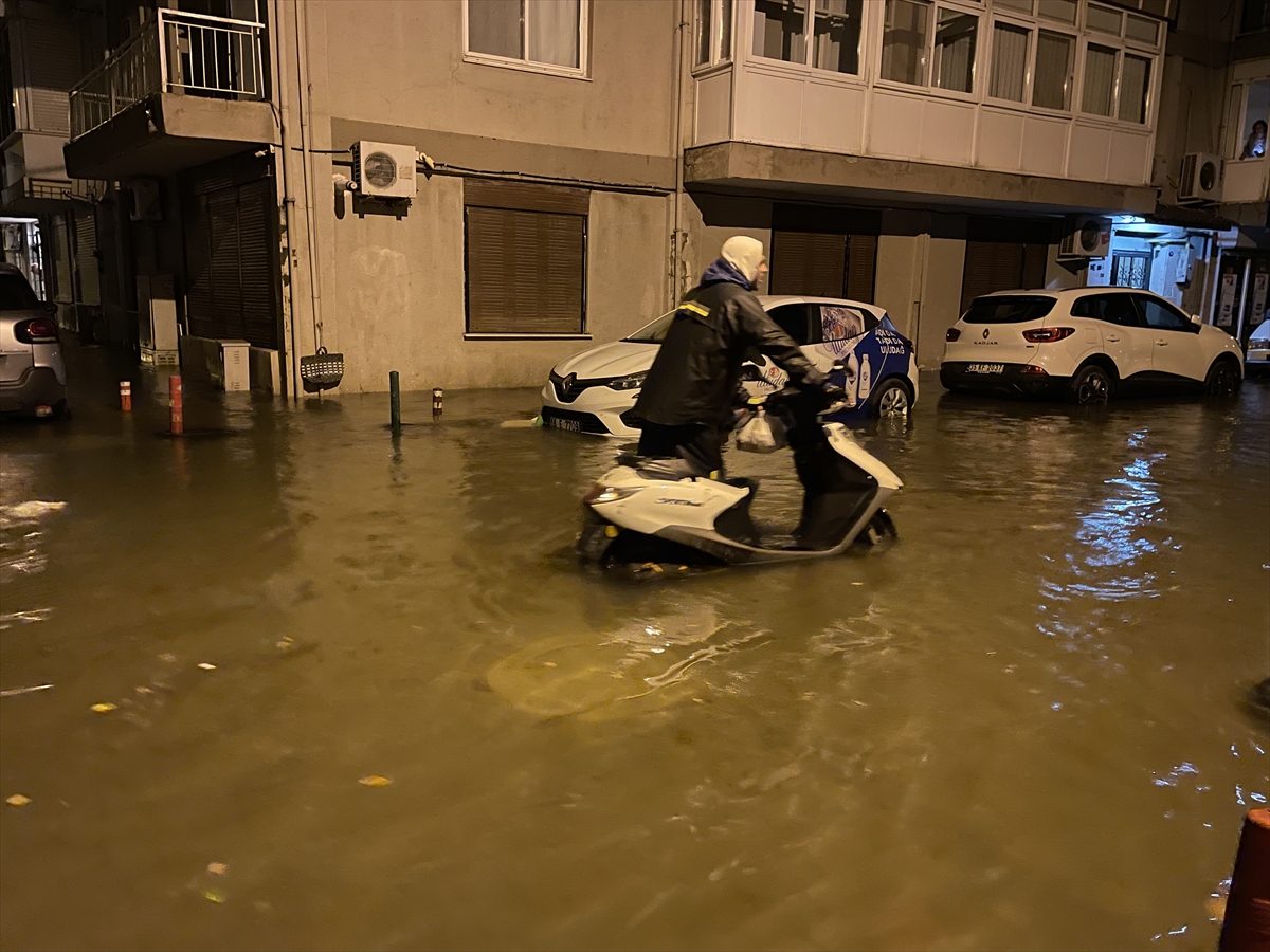 İzmir'in Karşıyaka ve Konak ilçelerinde yoğun yağışın ardından denizin taşması sonucu yollar su altında kaldı, çok sayıda iş yeri, apartman ve dükkanı su bastı.