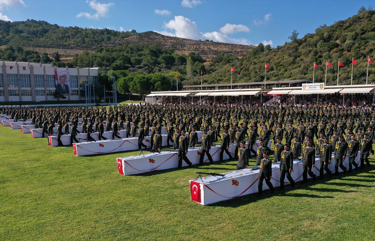 İzmir'deki Milli Savunma Üniversitesi (MSÜ) Kara Harp Okulu (KHO) Maltepe Yerleşkesi Komutanlığında eğitime başlayan 810 harbiyeli için ailelerin katılımıyla ant içme ve meç kuşanma töreni icra edildi.
