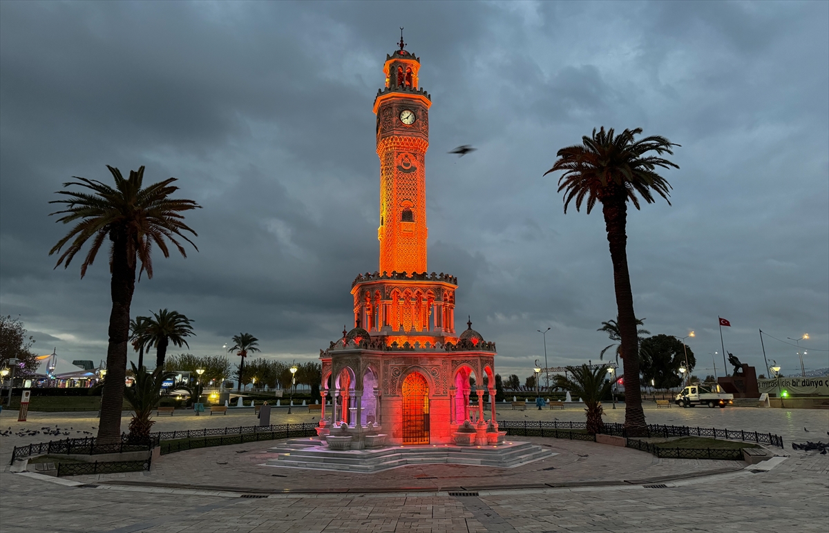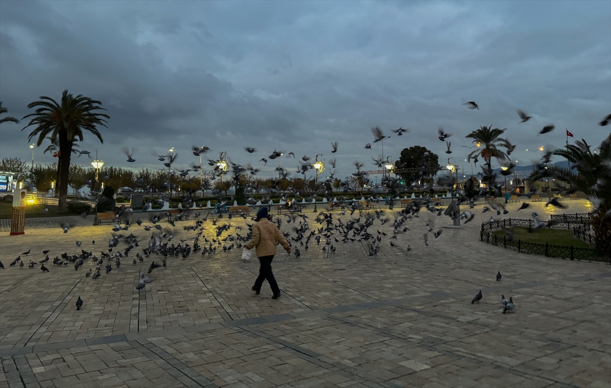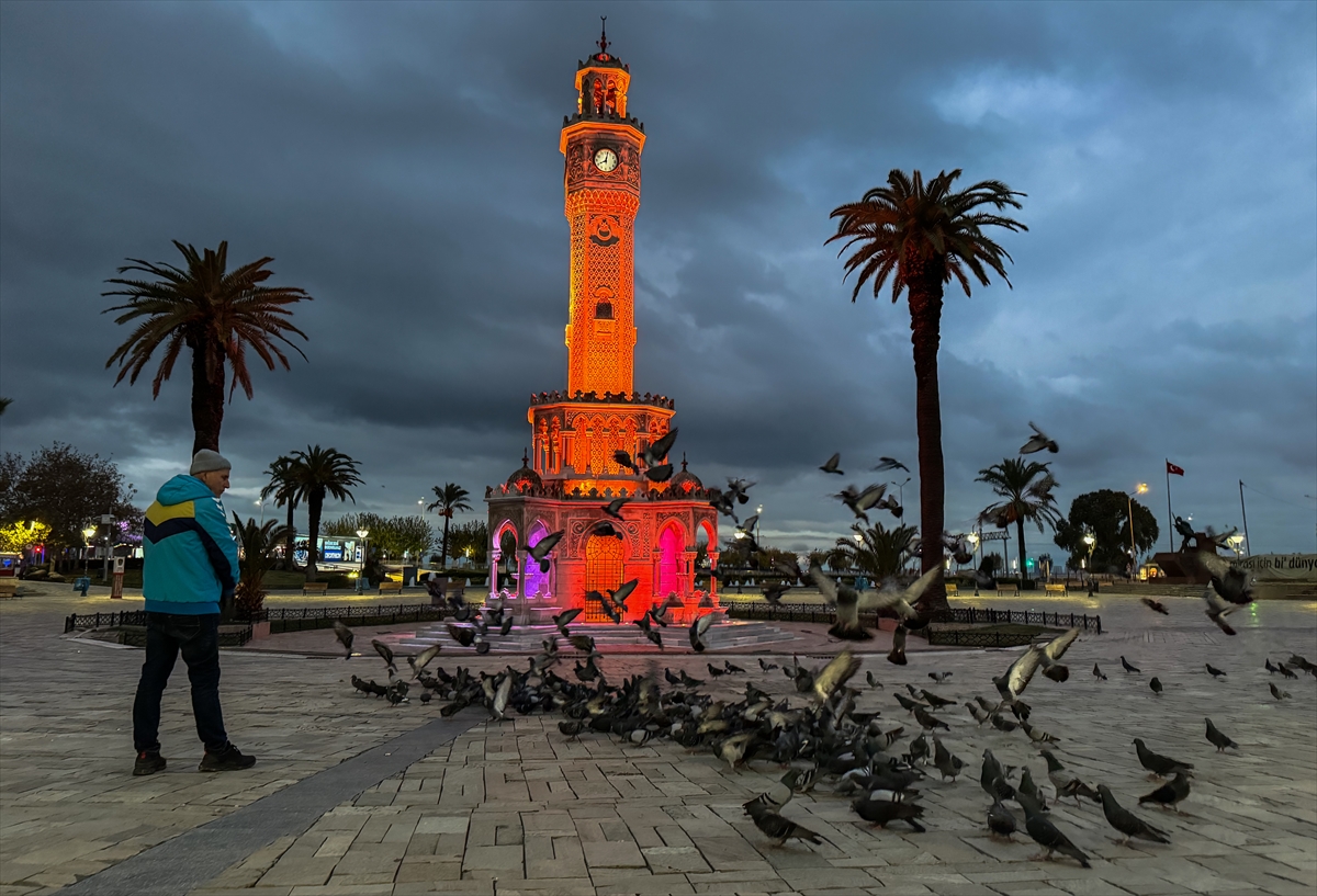 İzmir'in simgeleri arasında yer alan Konak Meydanı'ndaki tarihi Saat Kulesi, sabahın ilk saatlerinde güvercinler ve ışıklandırma ile güzel görüntü oluşturdu.