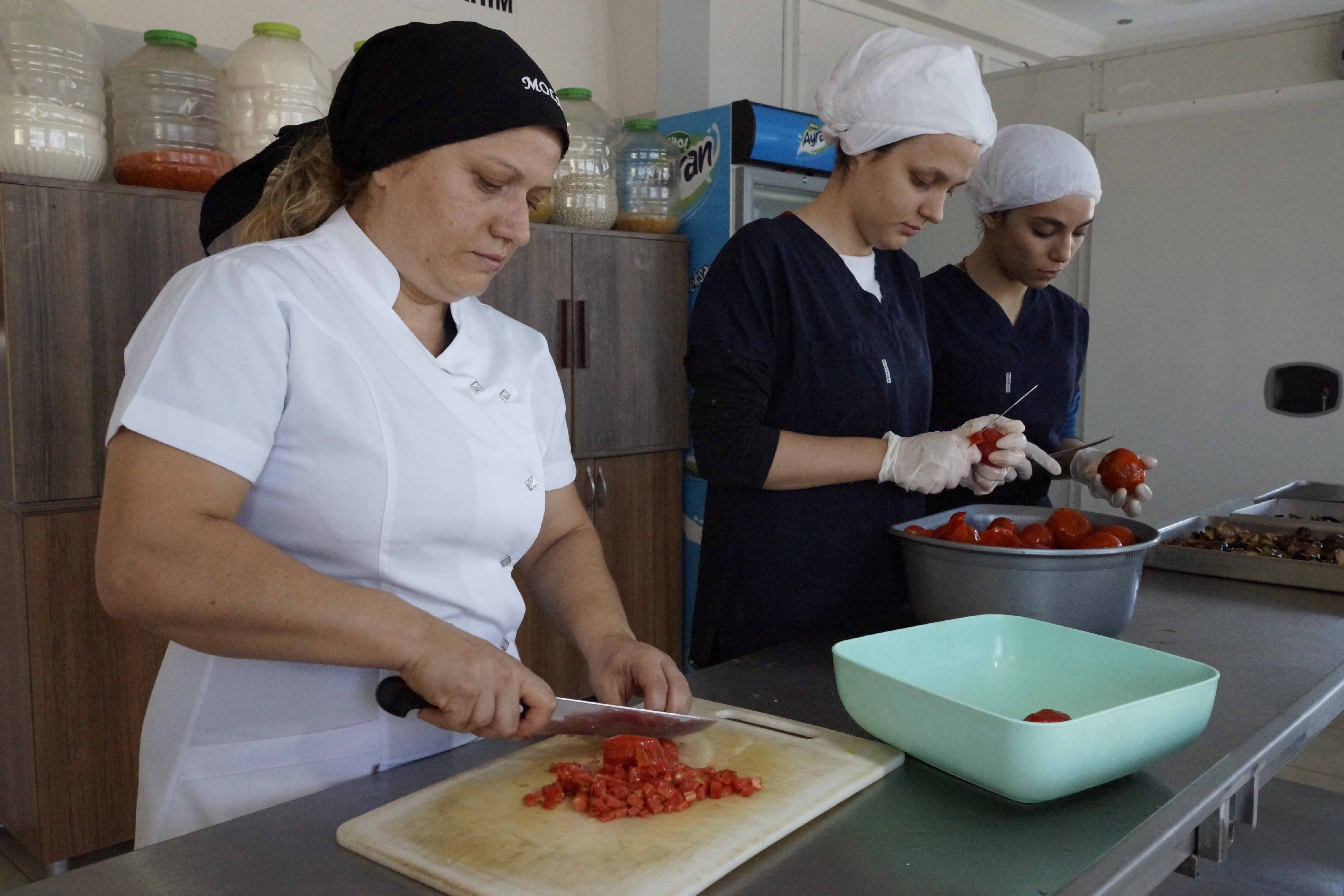 Yemek şirketi çalışanlarından Gaziantep Üniversitesi Gastronomi ve Mutfak Sanatları Bölümü mezunu 23 yaşındaki Emine Soylu, mesleği öğrenmek için Yurtkulu'nun yemek fabrikasının çok iyi bir ortam olduğunu söyledi.