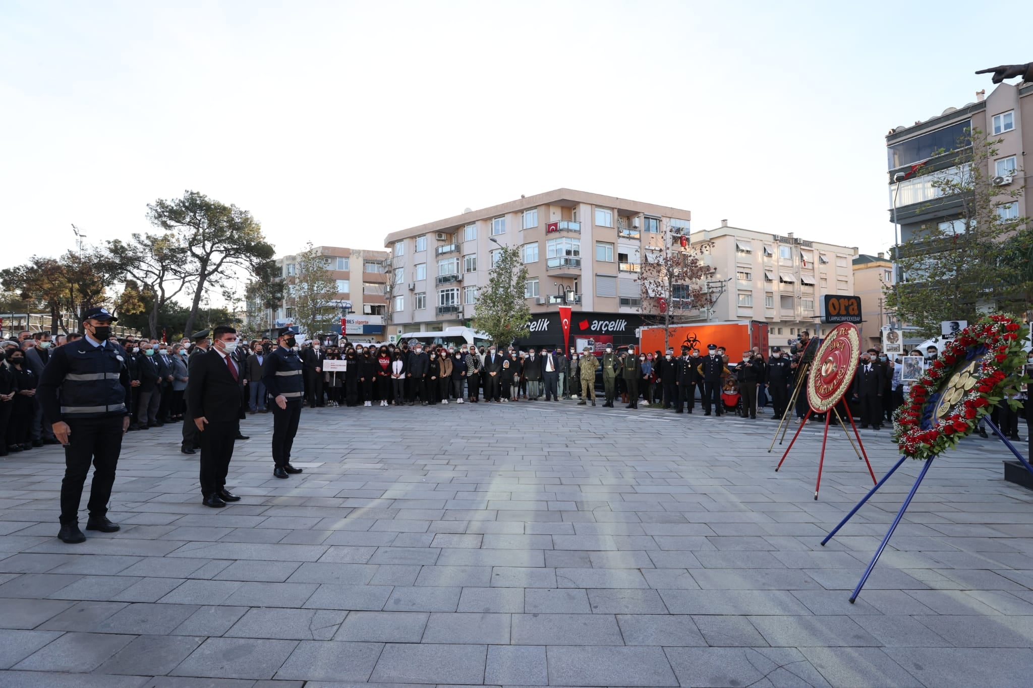 10 Kasım’da gün boyu devam edecek anma programlarının ilki, Cumhuriyet Meydanı’ndaki resmi törenle başladı. İzmir Valisi Yavuz Selim Köşger, Ege Ordusu Komutanı Orgeneral Ali Sivri ve İzmir Büyükşehir Belediye Başkanı Tunç Soyer'in yanı sıra, siyasi partilerin temsilcileri, iş dünyası, resmi kurum ve sivil toplum kuruluş temsilcilerinin katıldığı törende Atatürk Anıtı’na çelenk bırakıldı.