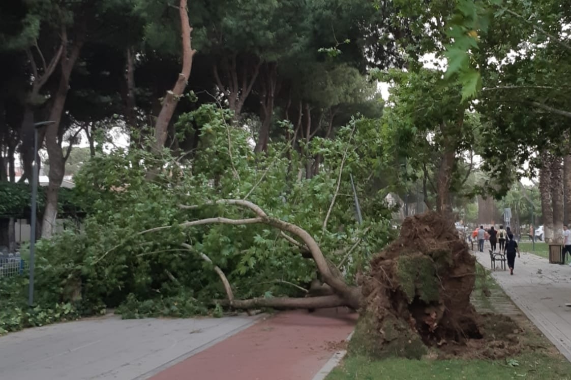 İki ilçede de şiddetli rüzgar nedeniyle çok sayıda ağaç zarar gördü.