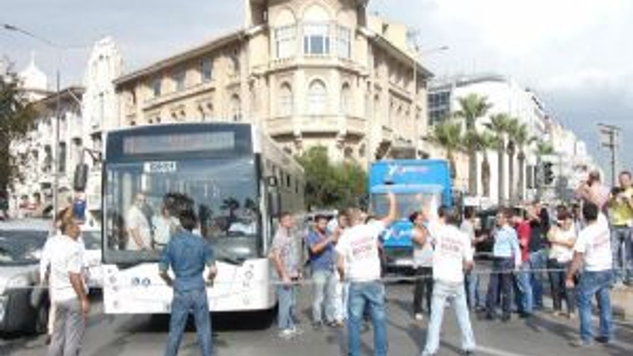 İzmir'de işçilerden 'zincirli' eylem